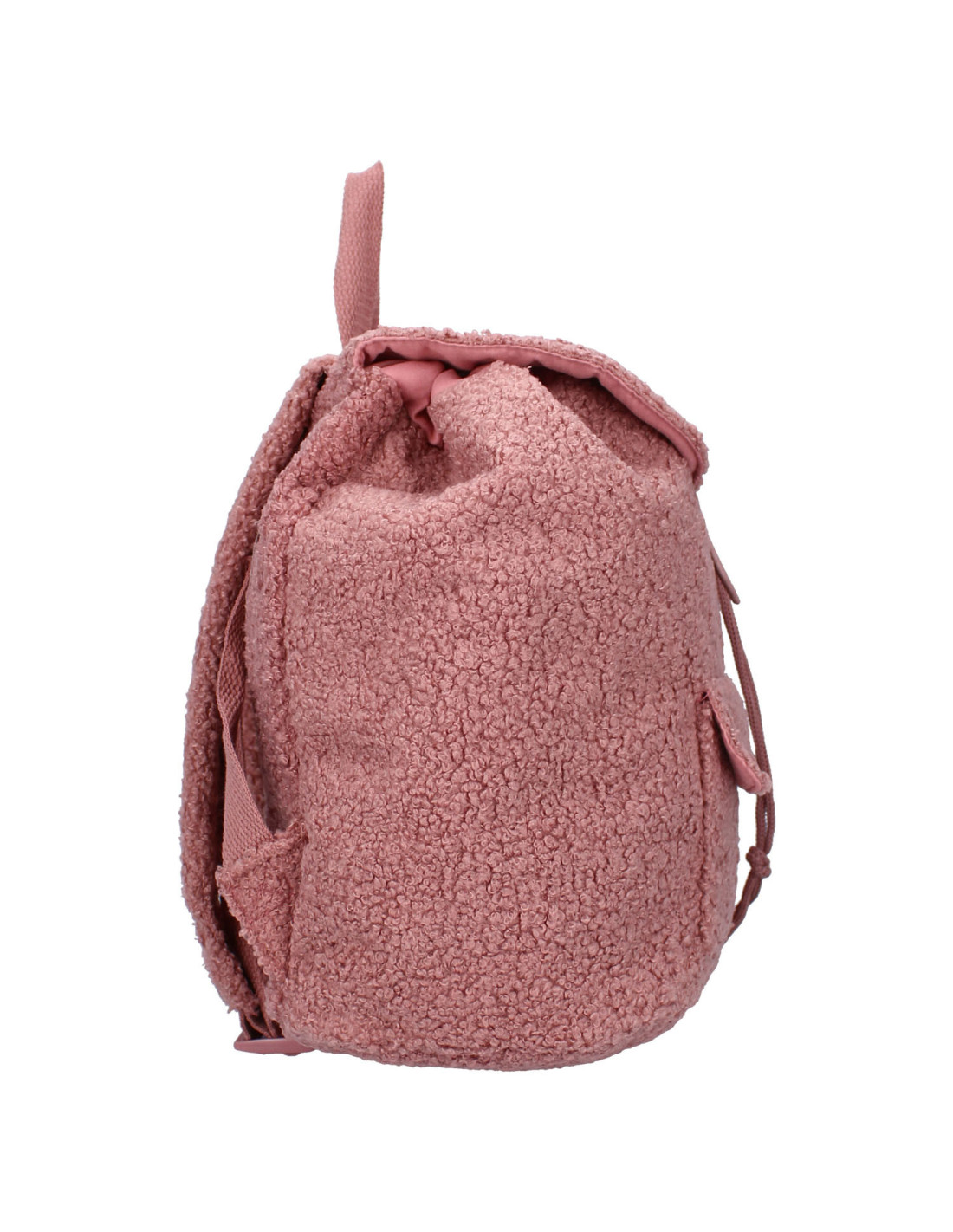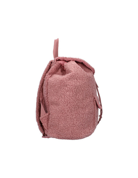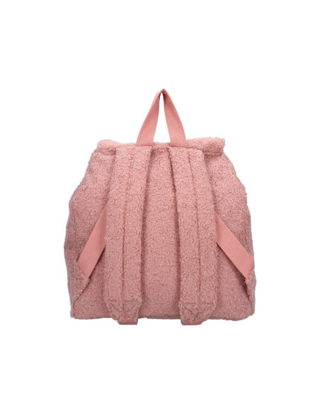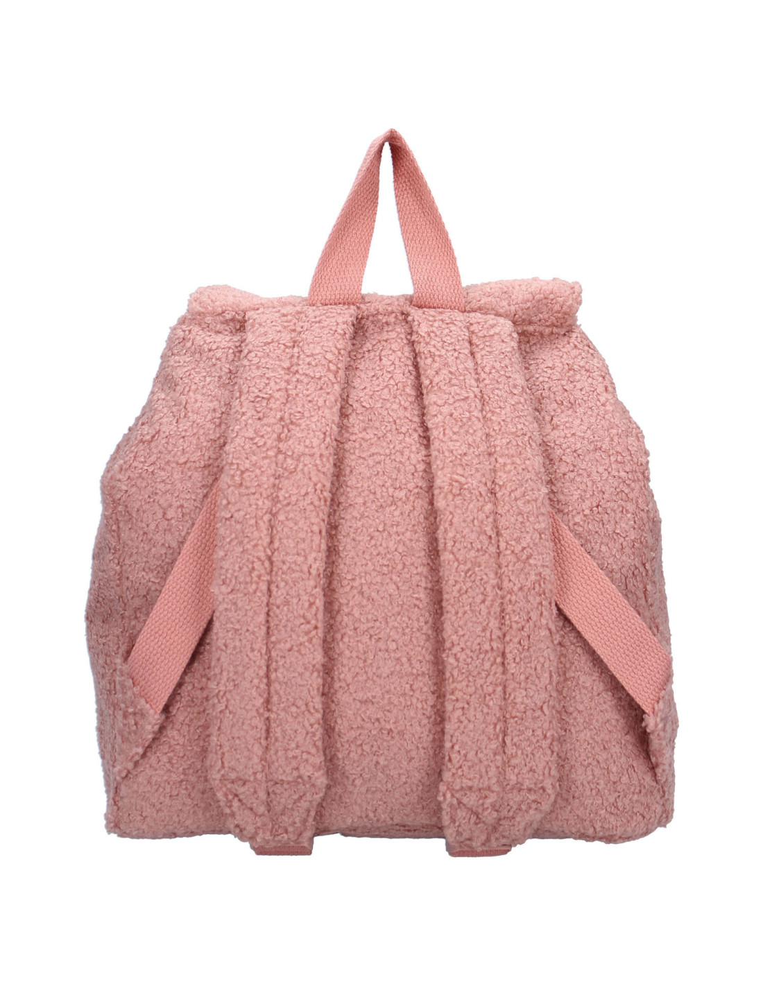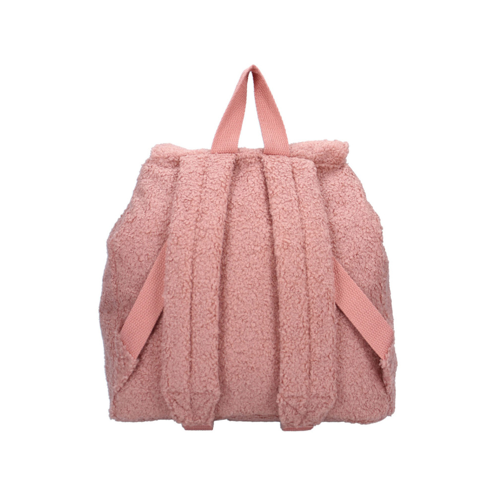 Roze rugzak van teddystof, met binnenin ruimte voor het schrijven van een naam en een bekerhouder. De schouderbanden zijn te verstellen. De tas is 28 x 27 x 2 cm groot en geschikt voor kinderen vanaf 3 jaar.