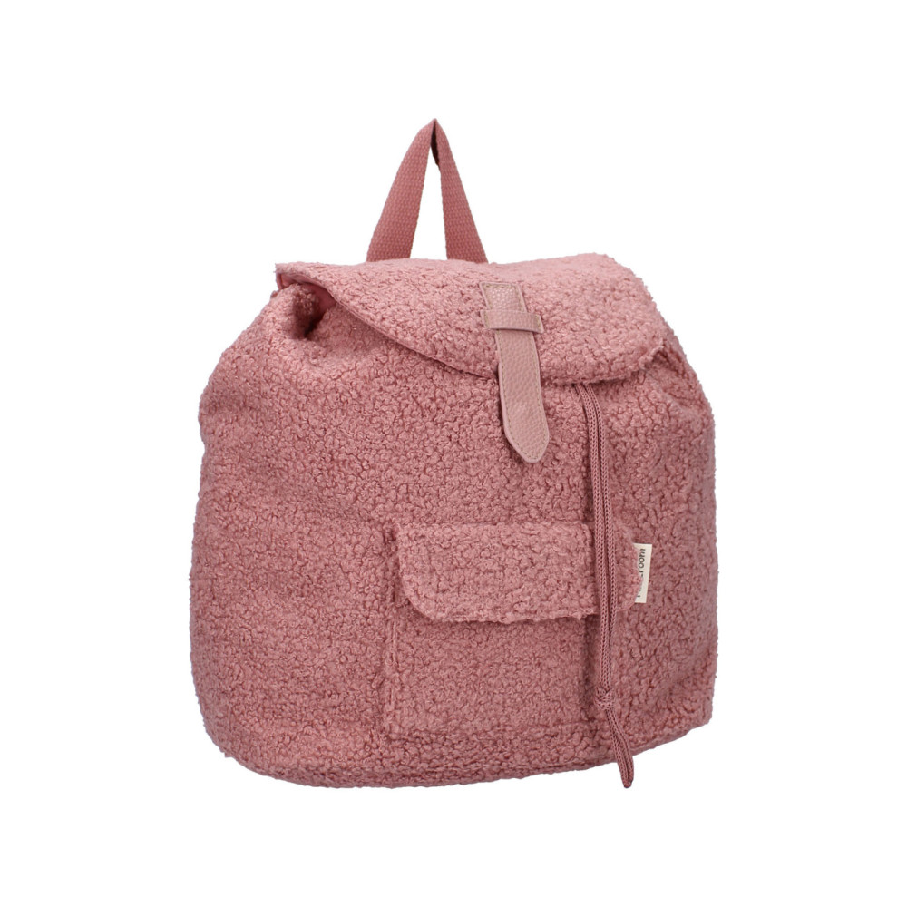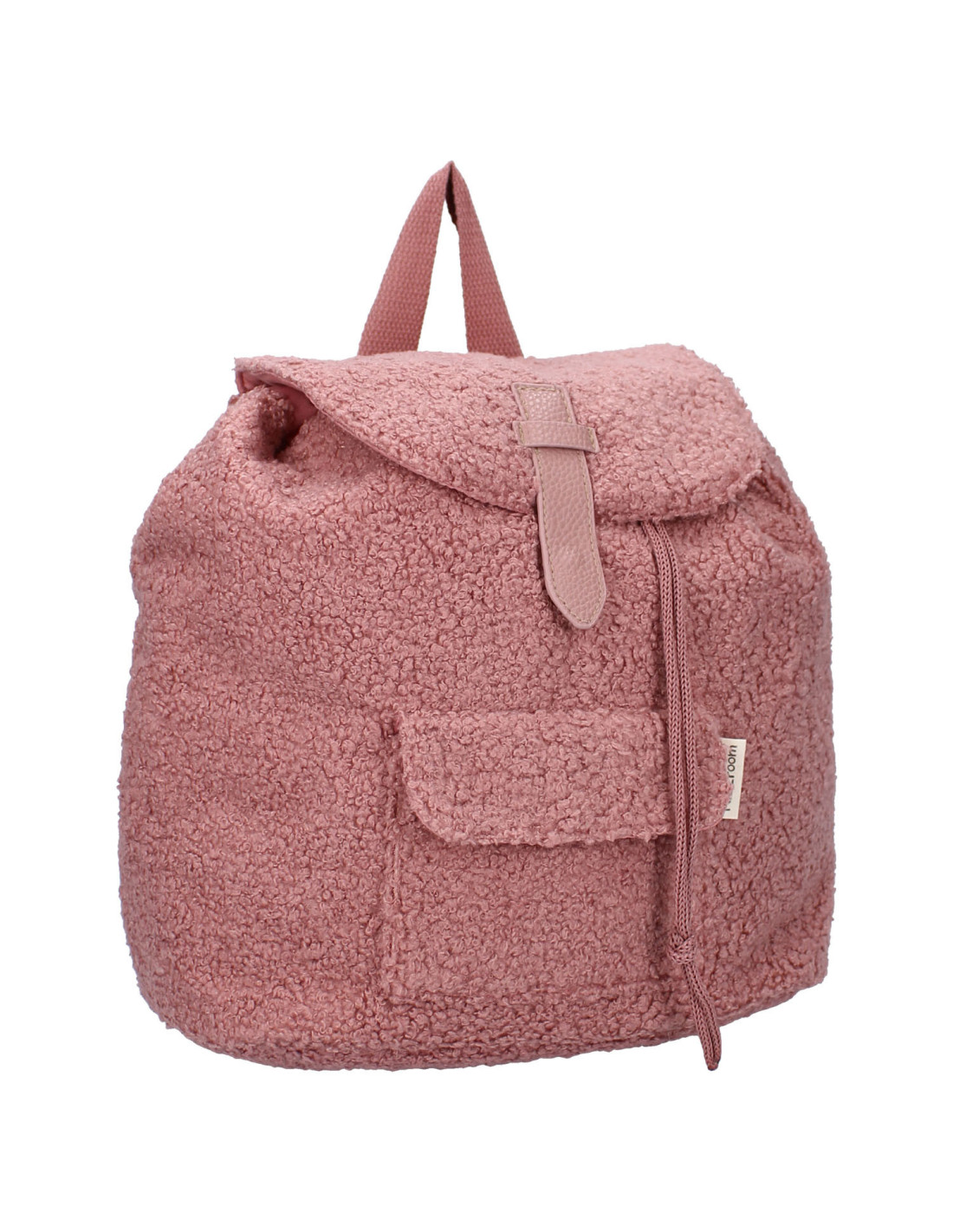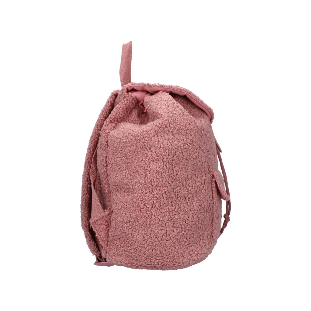 Roze rugzak van teddystof, met binnenin ruimte voor het schrijven van een naam en een bekerhouder. De schouderbanden zijn te verstellen. De tas is 28 x 27 x 2 cm groot en geschikt voor kinderen vanaf 3 jaar.
