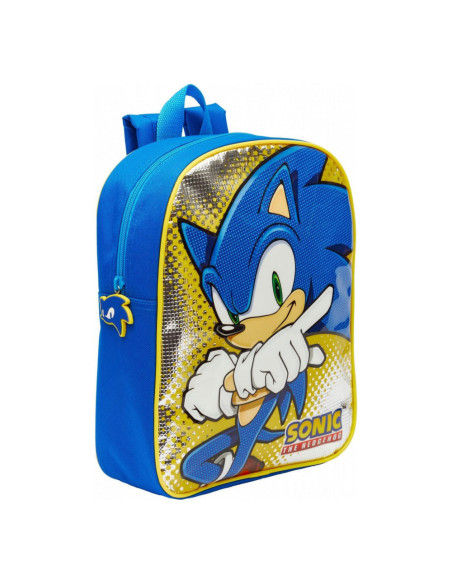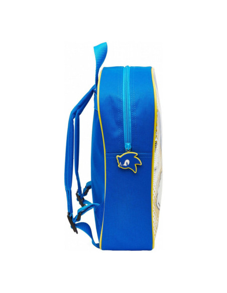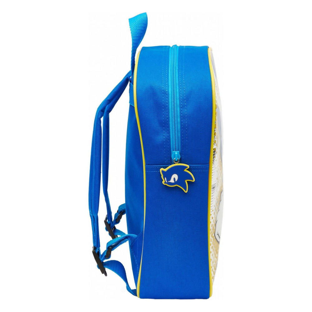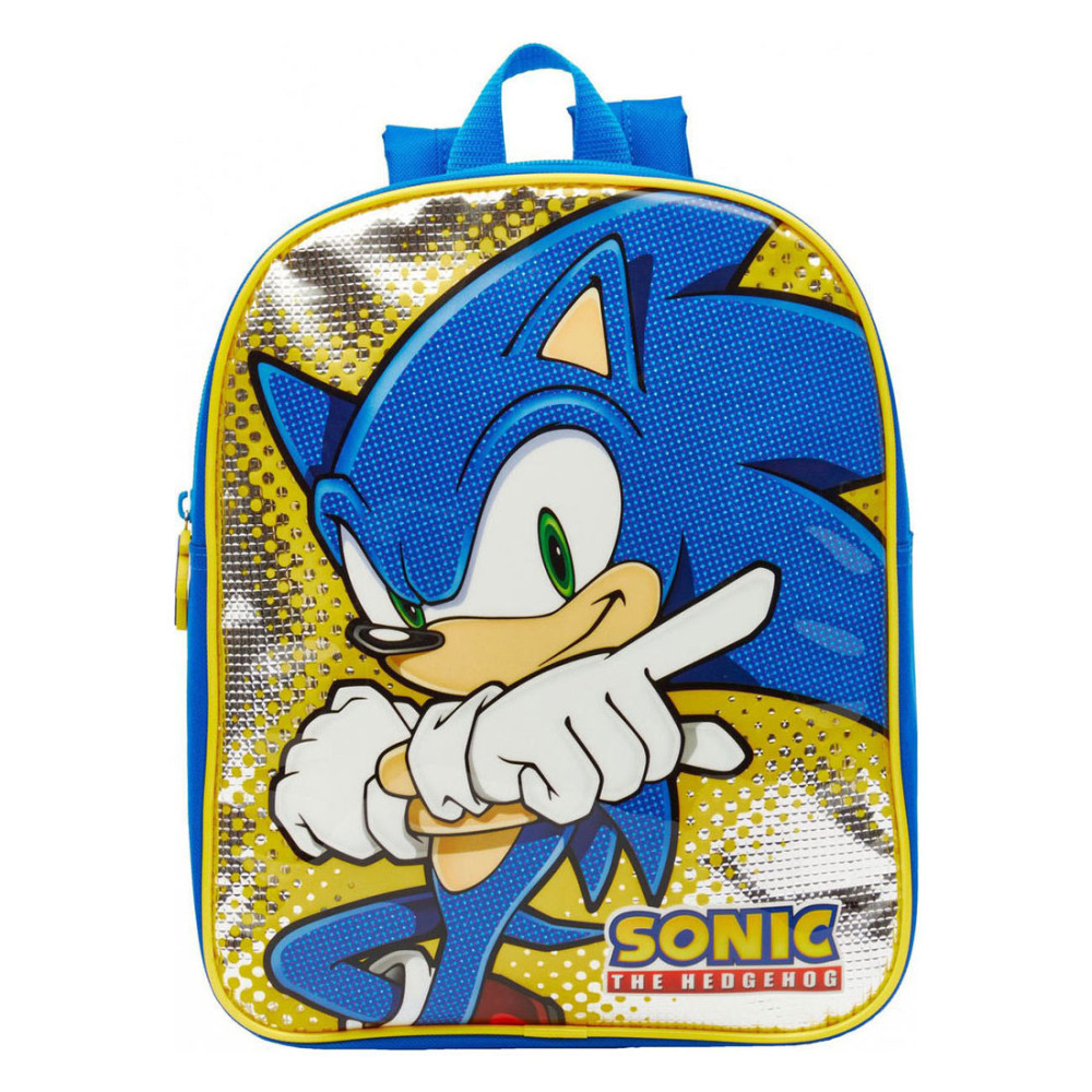 Stevige rugzak van Sonic the Hedgehog. De blauw/gele tas heeft een groot hoofdcompartiment, verstelbare schouderbanden en een ritssluiting. Aan de rits hangt een leuke Sonic-hanger.