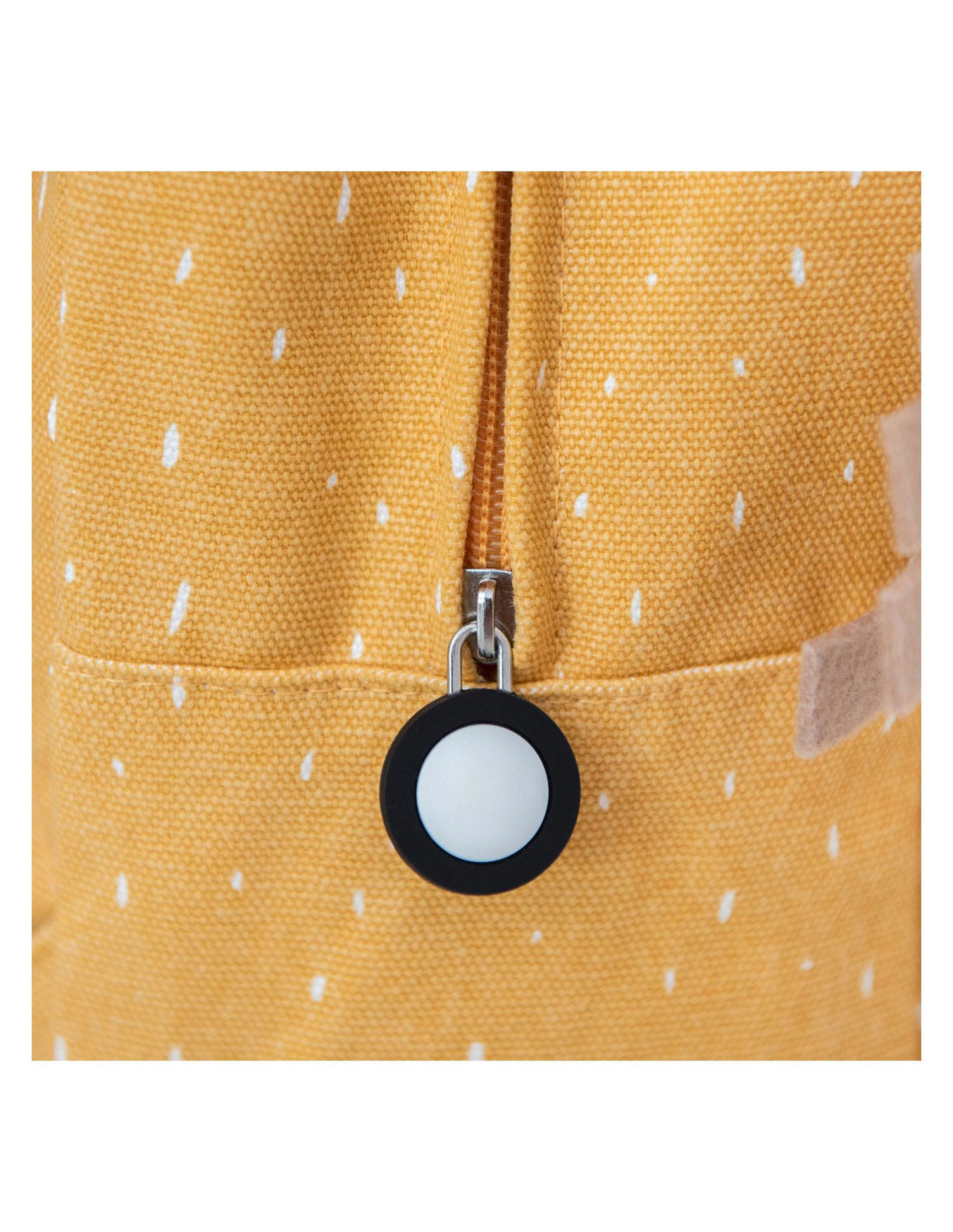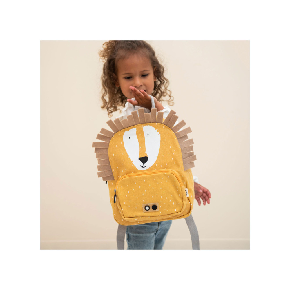 Met dit schattige rugzakje is je kindje helemaal klaar voor elke leuke activiteit of eerste schooldag! De rugzak heeft verstelbare en gewatteerde schouderriemen en aan de bovenkant een handvat om gemakkelijk te kunnen ophangen. De gesp op de borst zorgt ervoor dat de schouderriemen niet van de schouders glijden. Er is ook een klein zakje aan de voorkant voorzien en de ritsen van het grote compartiment en het voorste zakje zijn voorzien van een groter trekkertje zodat de kindjes ze zelf eenvoudig kunnen openen en sluiten. Om te vermijden dat je kindje z'n rugzakje kwijtspeelt, hebben we langs de binnenkant een naam label voorzien.