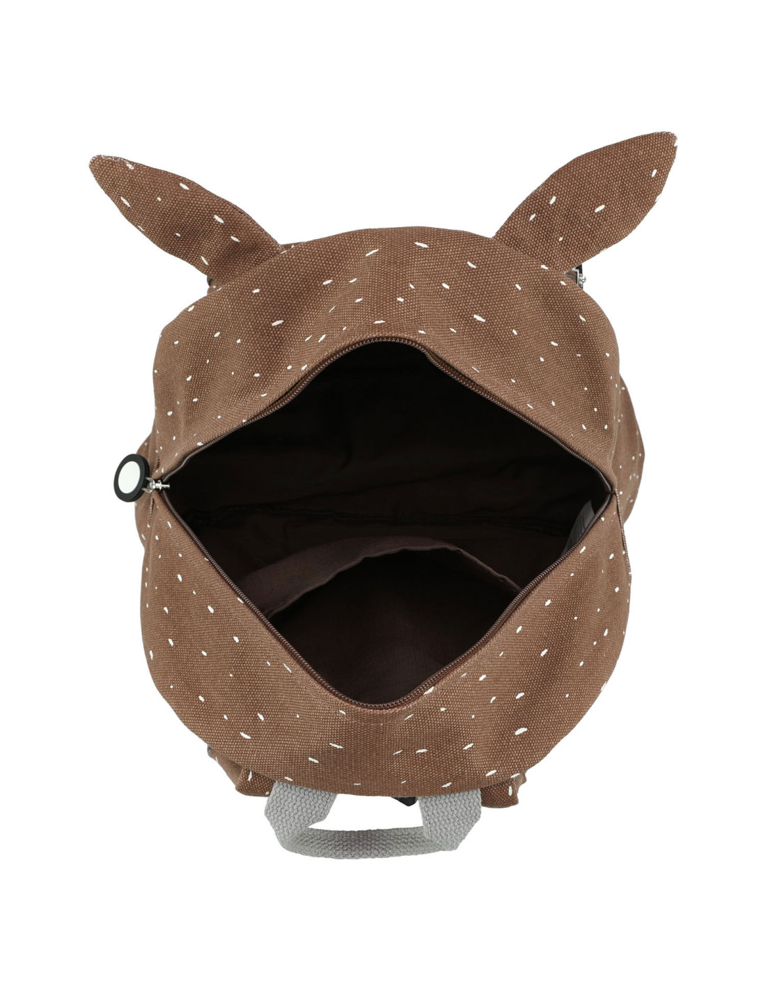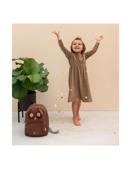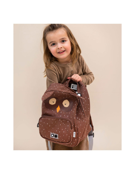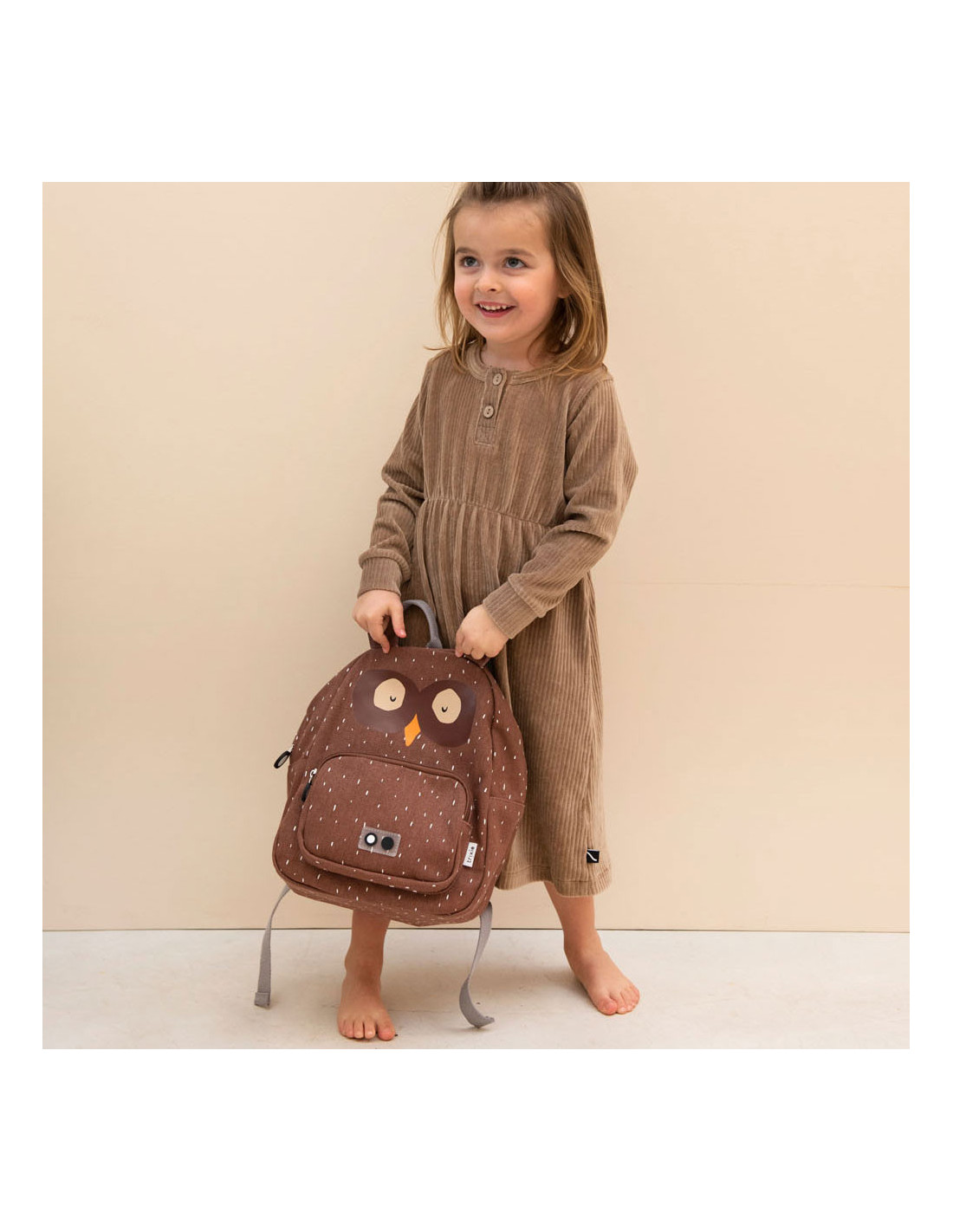 Met dit schattige rugzakje is je kindje helemaal klaar voor elke leuke activiteit of eerste schooldag! De rugzak heeft verstelbare en gewatteerde schouderriemen en aan de bovenkant een handvat om gemakkelijk te kunnen ophangen. De gesp op de borst zorgt ervoor dat de schouderriemen niet van de schouders glijden. Er is ook een klein zakje aan de voorkant voorzien en de ritsen van het grote compartiment en het voorste zakje zijn voorzien van een groter trekkertje zodat de kindjes ze zelf eenvoudig kunnen openen en sluiten. Om te vermijden dat je kindje z'n rugzakje kwijtspeelt, hebben we langs de binnenkant een naam label voorzien.