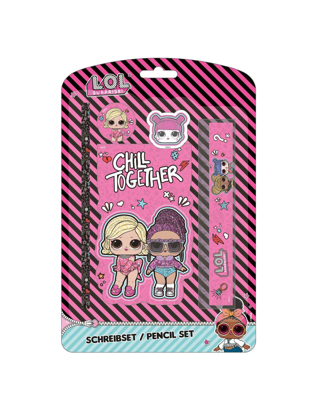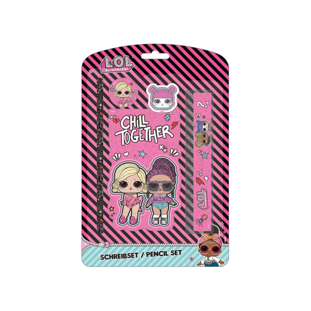 L.O.L Surprise Schrijfset. Inhoud: potlood, gum, puntenslijper, liniaal en notitieblok.
