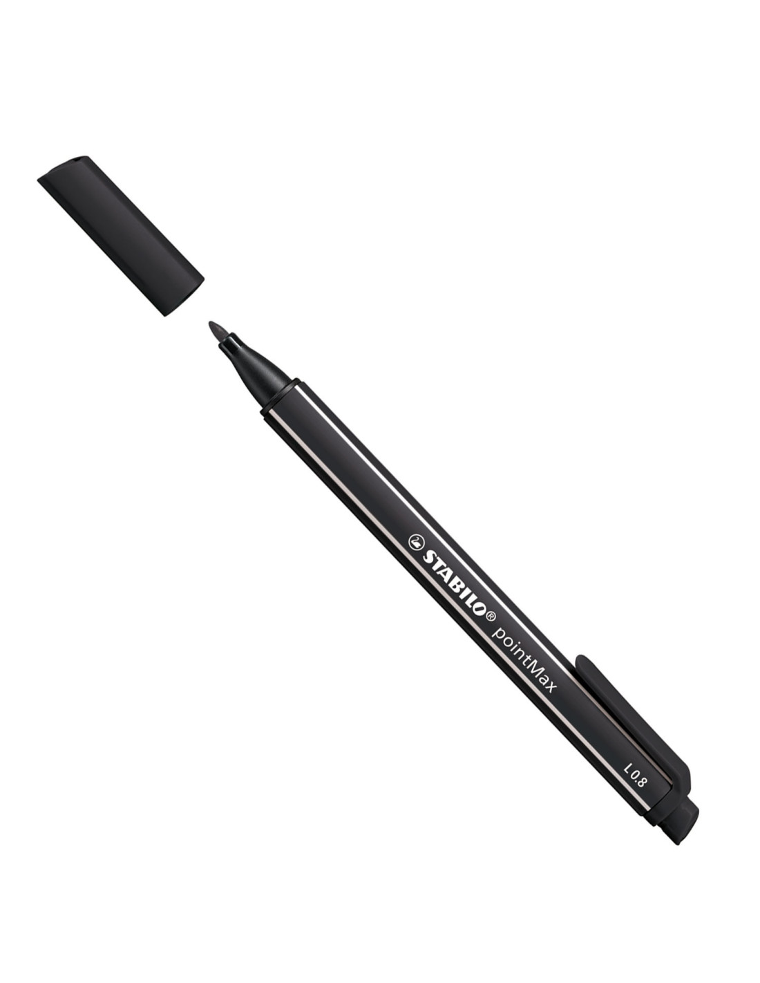 De Stabilo pointMax is een innovatieve fineliner met een zeer intense kleur en geurloze ink op waterbasis. Door de unieke robuuste punt is deze pen geschikt om mee te schrijven en fijne lijnen te tekenen. De nylon punt zorgt voor een prettig schrijfgevoel, zelfs bij intensief gebruikt. De pen kan 24 uur zonder dop zonder uit te drogen. Geventileerde dop die op het uit uiteinde van de pen kan worden geplaatst met handige clip. De lijndikte van de fineliner is 0,8 mm.