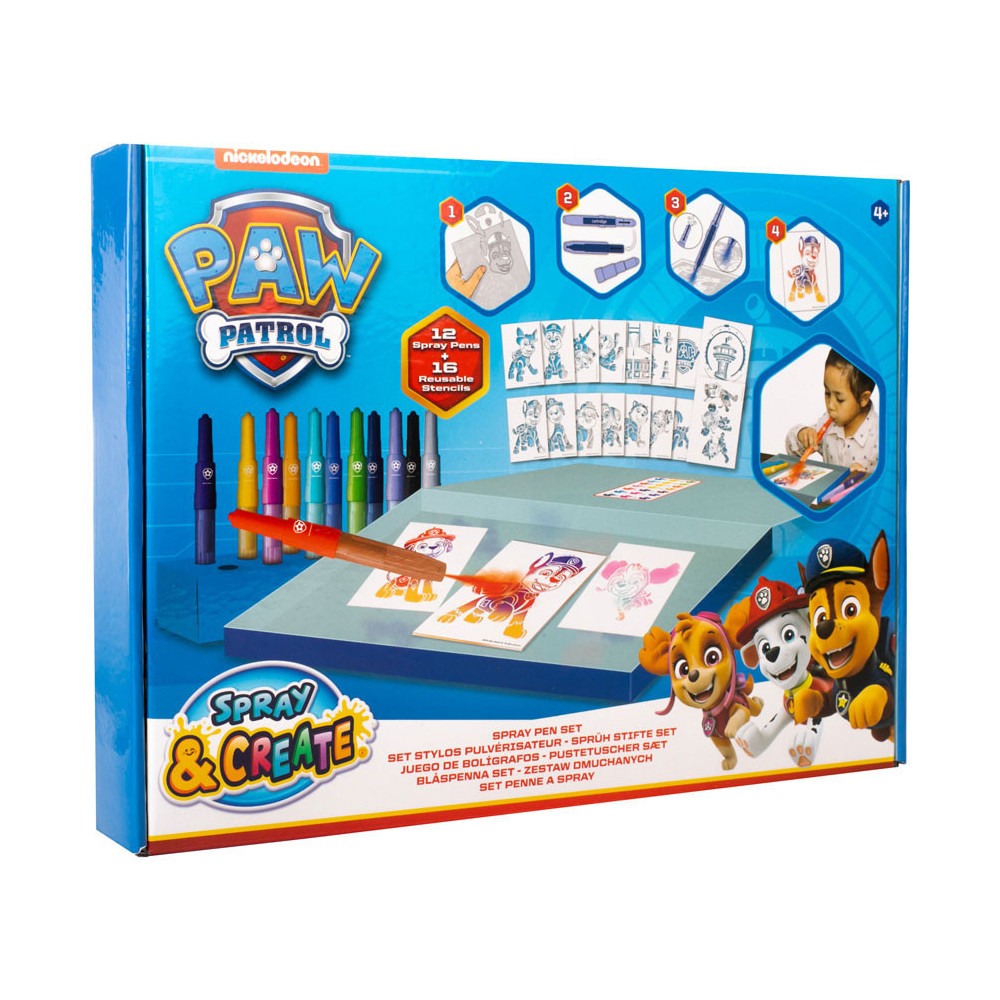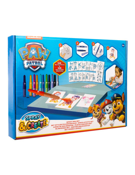 Deluxe set met PAW Patrol spraypennen in 12 kleuren. Met de 16 herbruikbare stencils maak je zelf de mooiste kunstwerken van je favoriete PAW Patrol-helden. Geschikt vanaf 4 jaar.