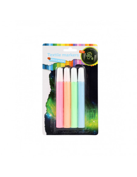 Textielstiften Glow in the Dark, 4st: blauw, groen, oranje en roze.