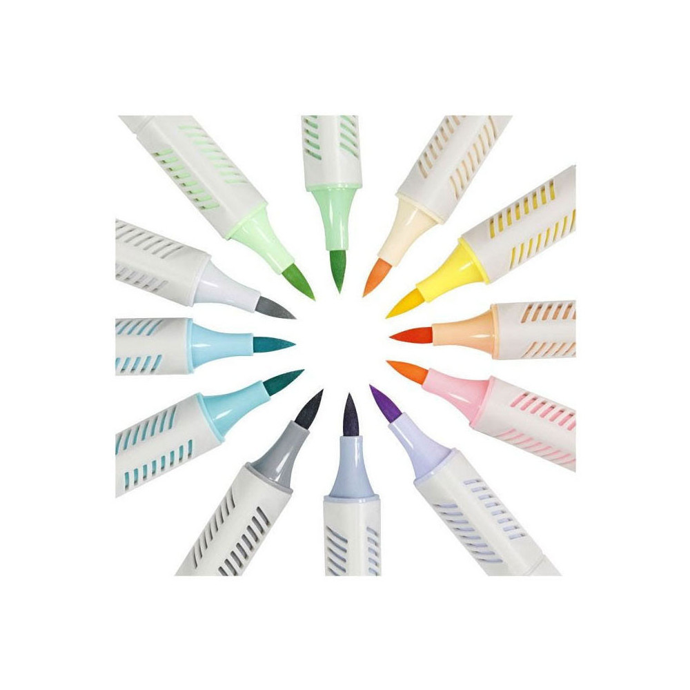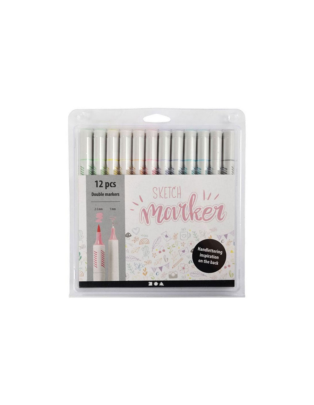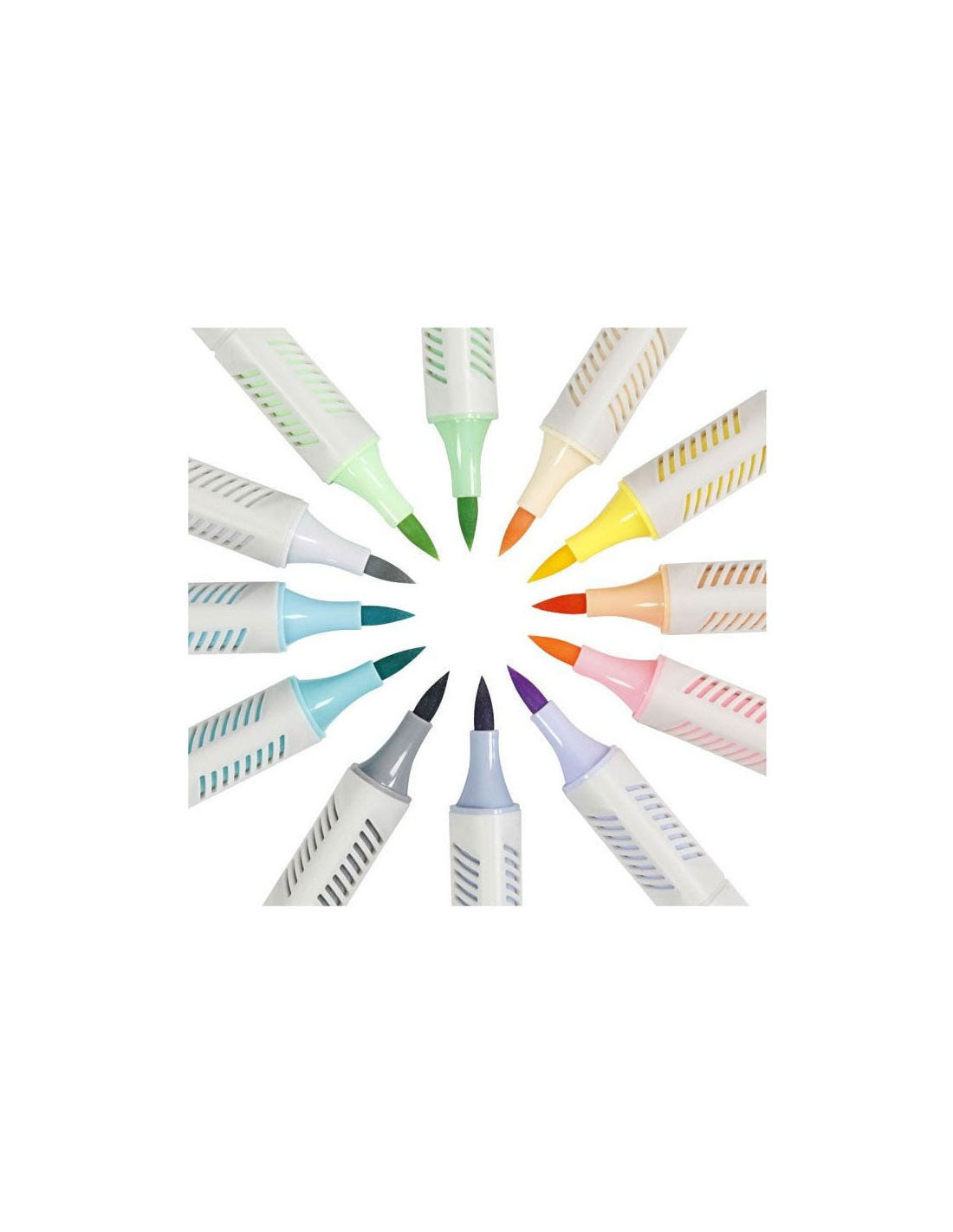 Teken en schrijf mooie illustraties en letters met deze driehoekige dubbelstiften op waterbasis. Ze zijn geschikt om op papier en karton te tekenen en liggen goed in de hand. Elke stift heeft twee punten, een dunne punt voor kleine details en een penseelpunt voor het maken van illustraties. Als je letters wil tekenen, kun je inspiratie en richtlijnen op de achterkant van de verpakking vinden.