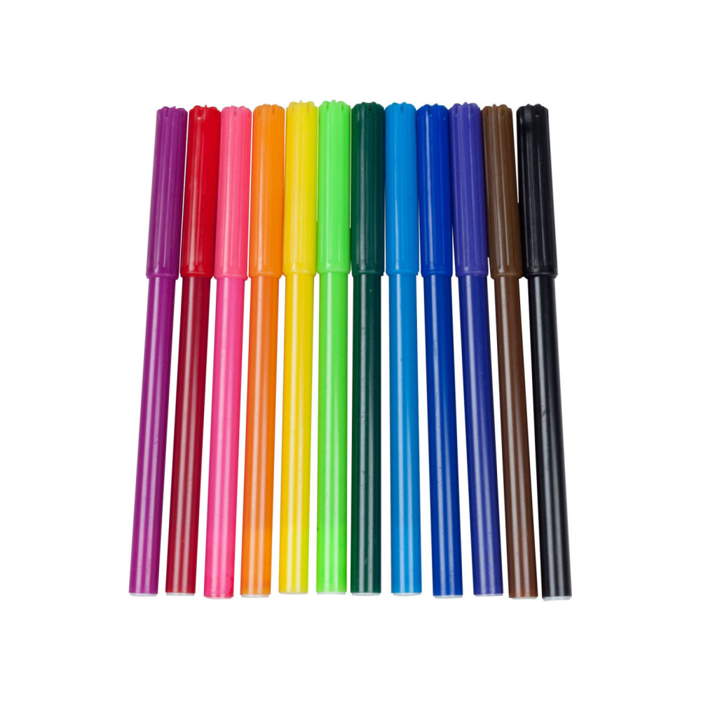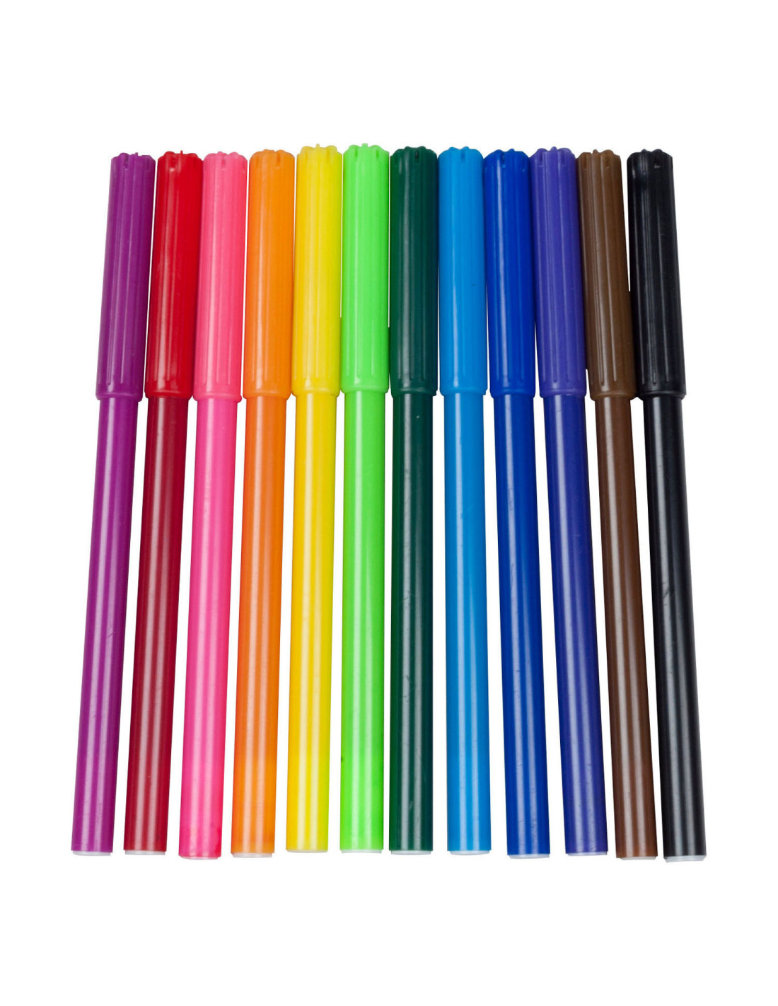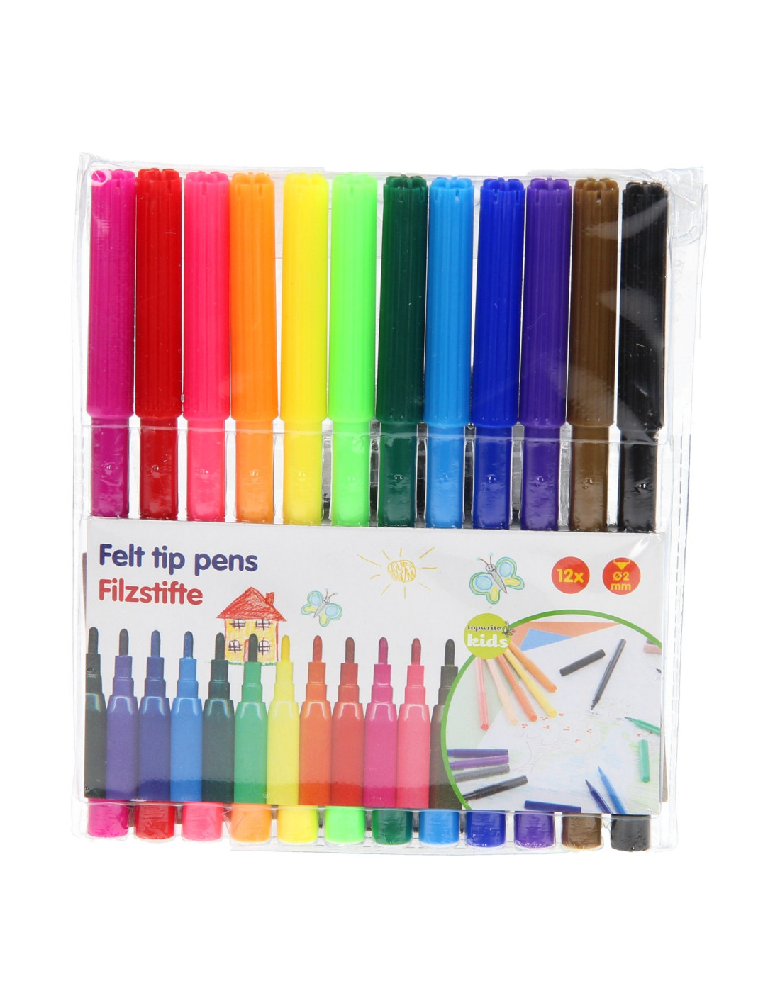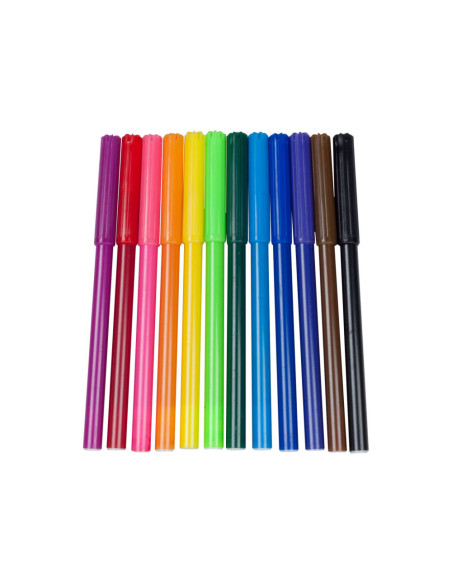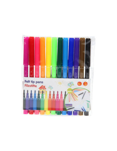 Maak de mooiste tekeningen en kleurplaten met deze gekleurde viltstiften. De set bestaat uit 12 stiften in heldere kleuren met een punt van diameter 2 mm.