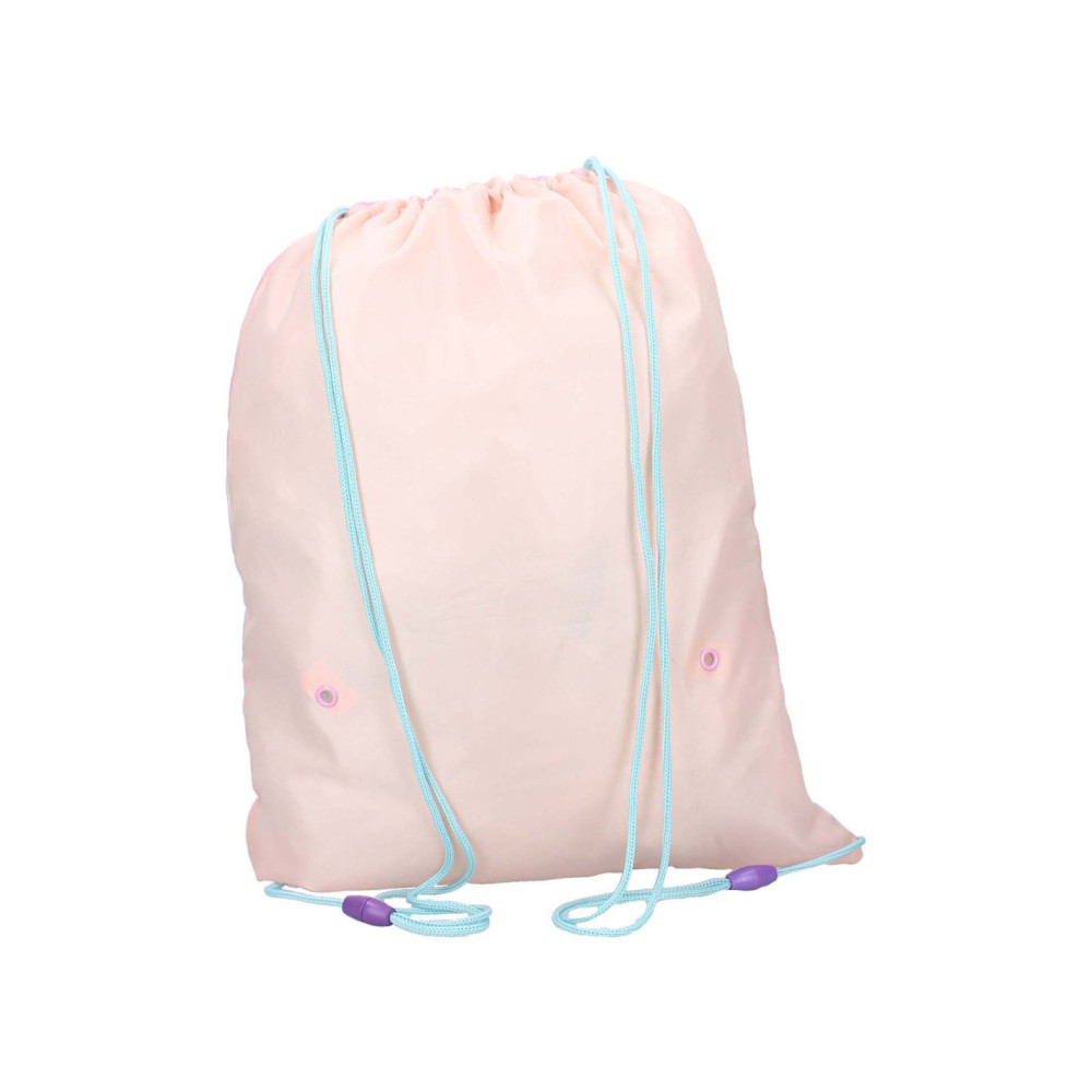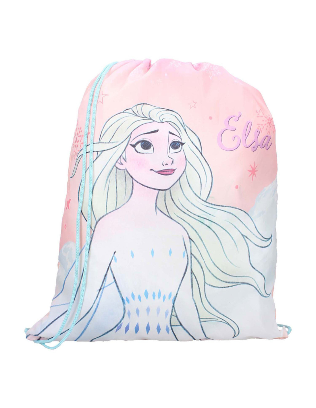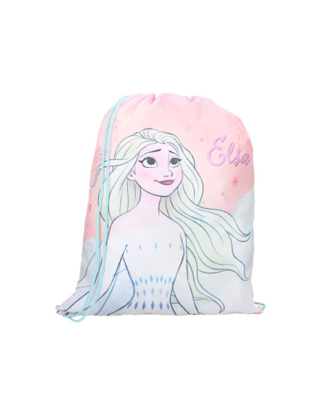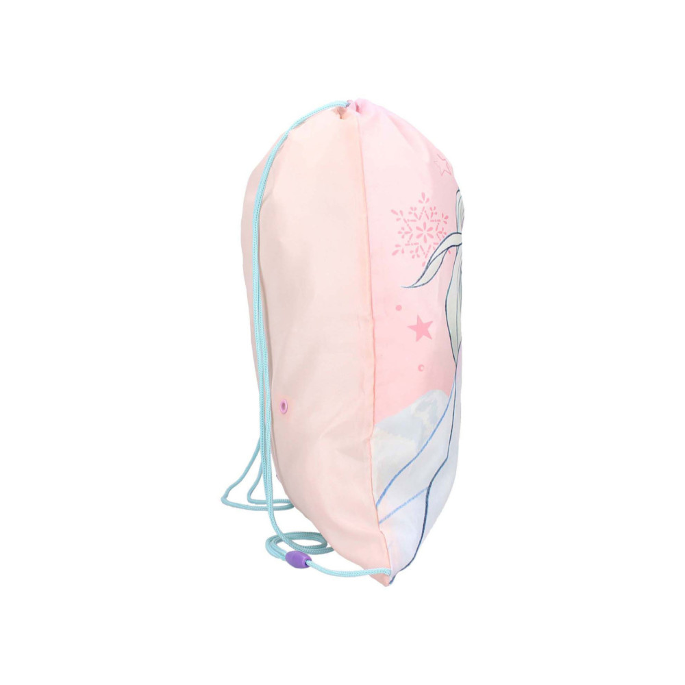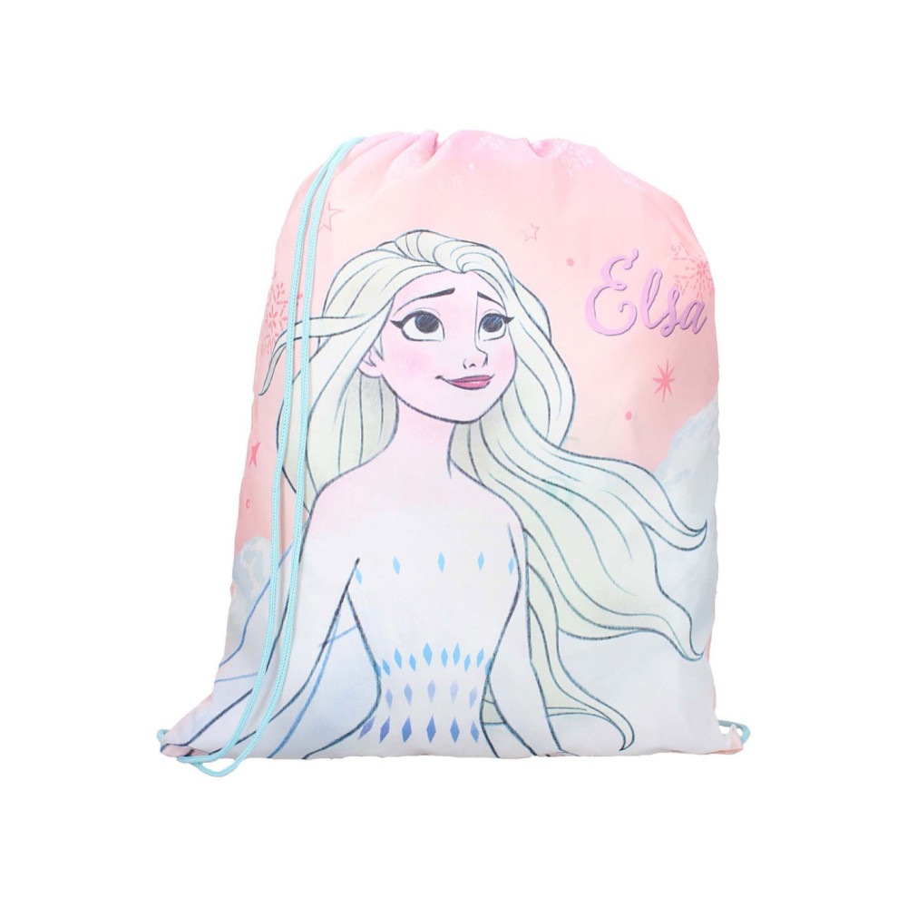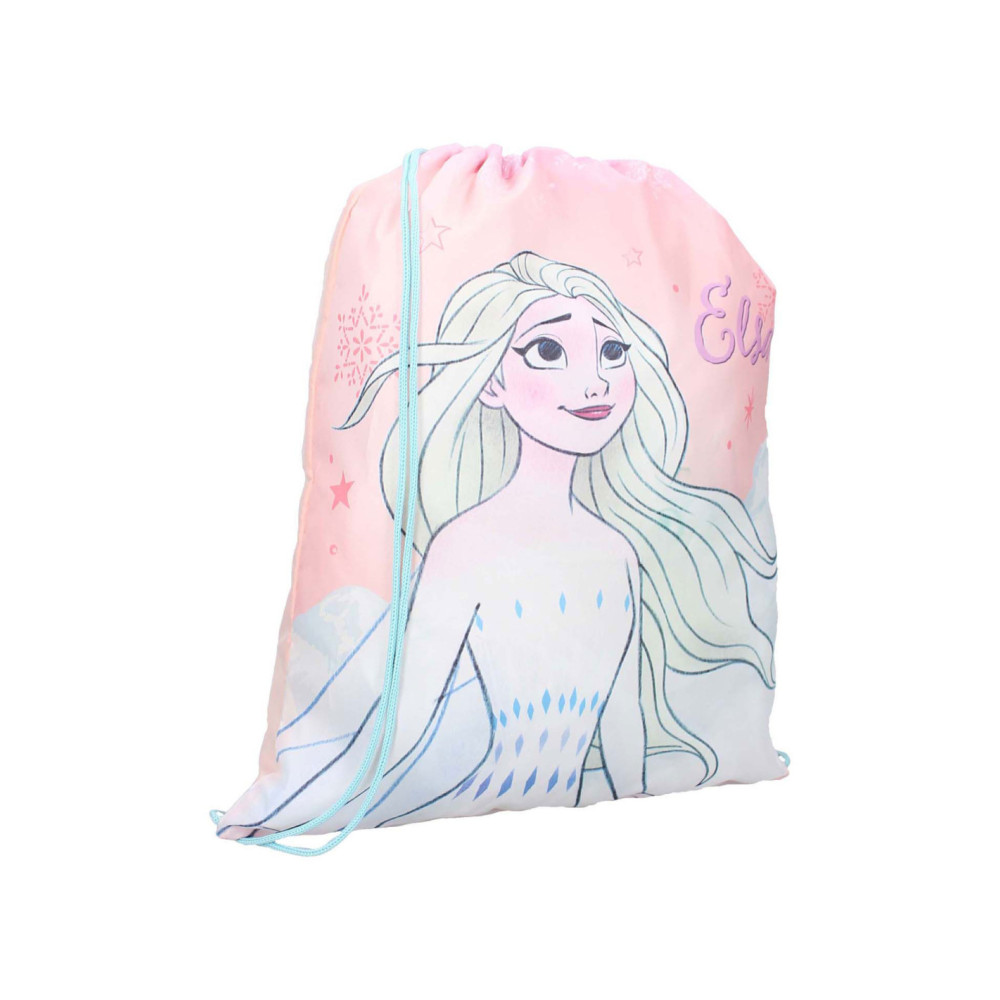 Deze leuke gymtas uit de It's All Magic collectie is ideaal voor alle sportieve Frozen fans! De gymtas is roze van kleur met blauwe en paarse details. Op de voorkant staat een grote print van Elsa. De opening aan de bovenkant van de tas trek je gemakkelijk op en dicht. Verder kun je met de verstelbare blauwe schouderbanden de gymtas op maat maken.