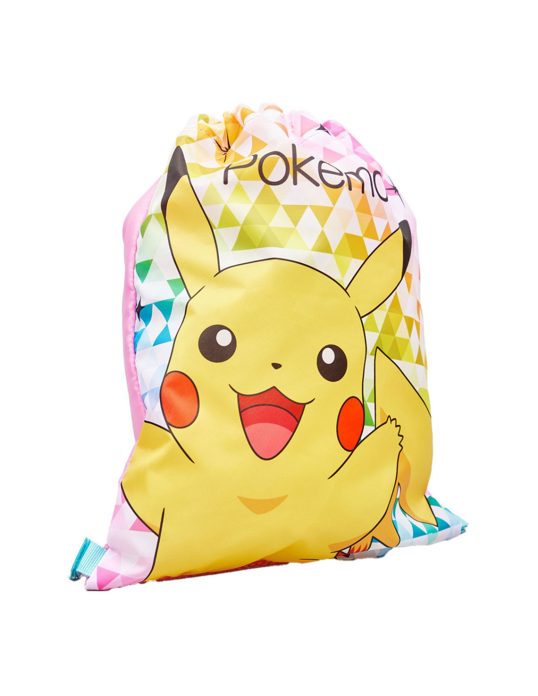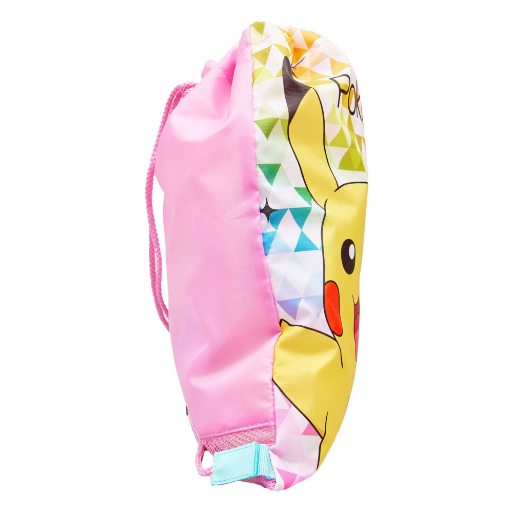 Roze Pokemon gymtas met vrolijke print van Pikachu. De gymtas heeft schouderbanden van touwtjes en is 42 x 30 centimeter groot. Gemaakt van polyester.