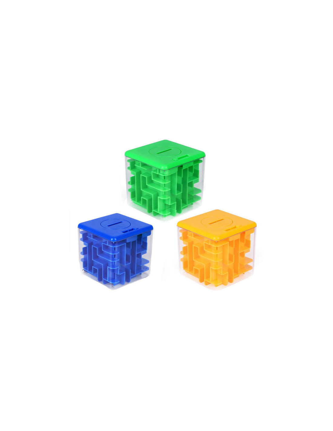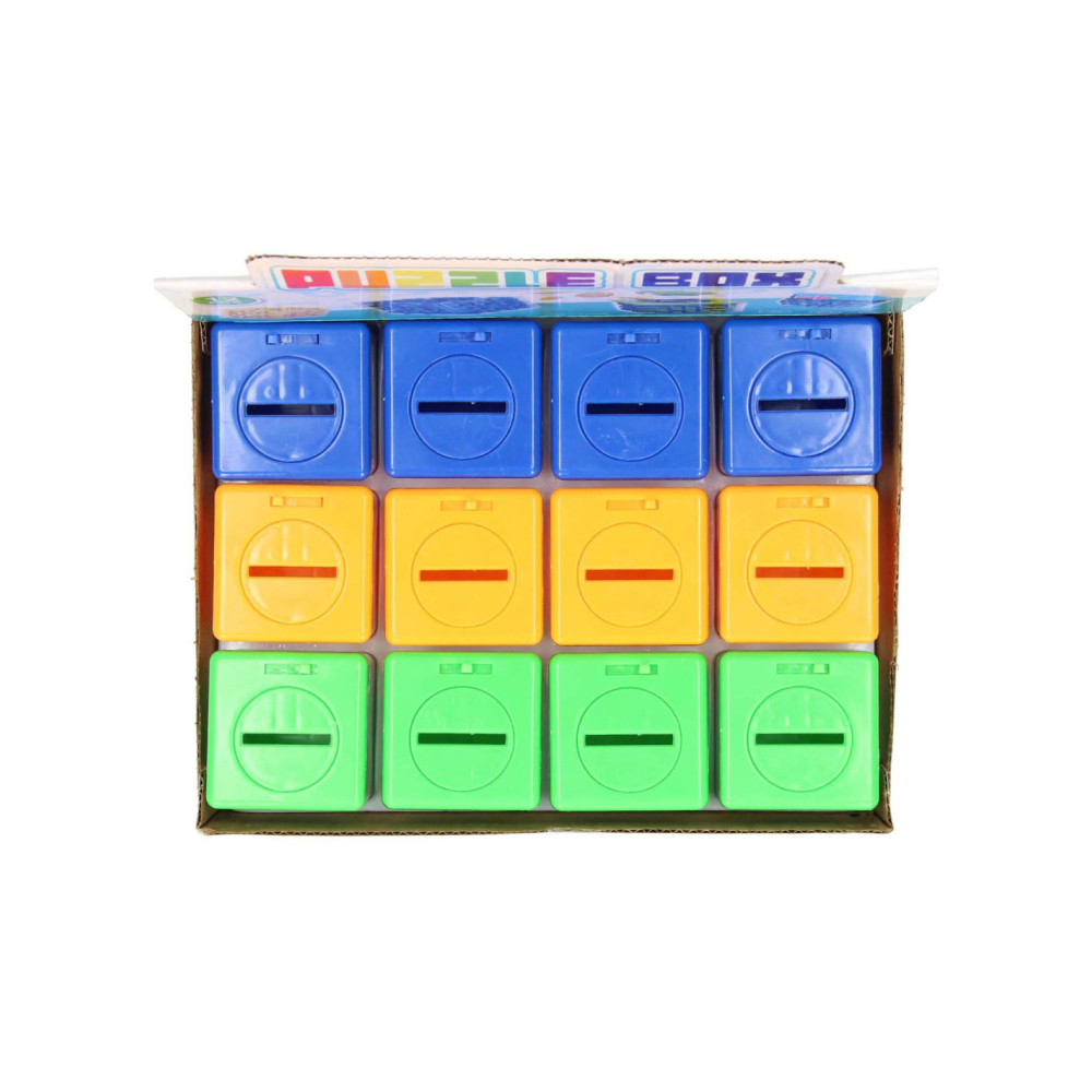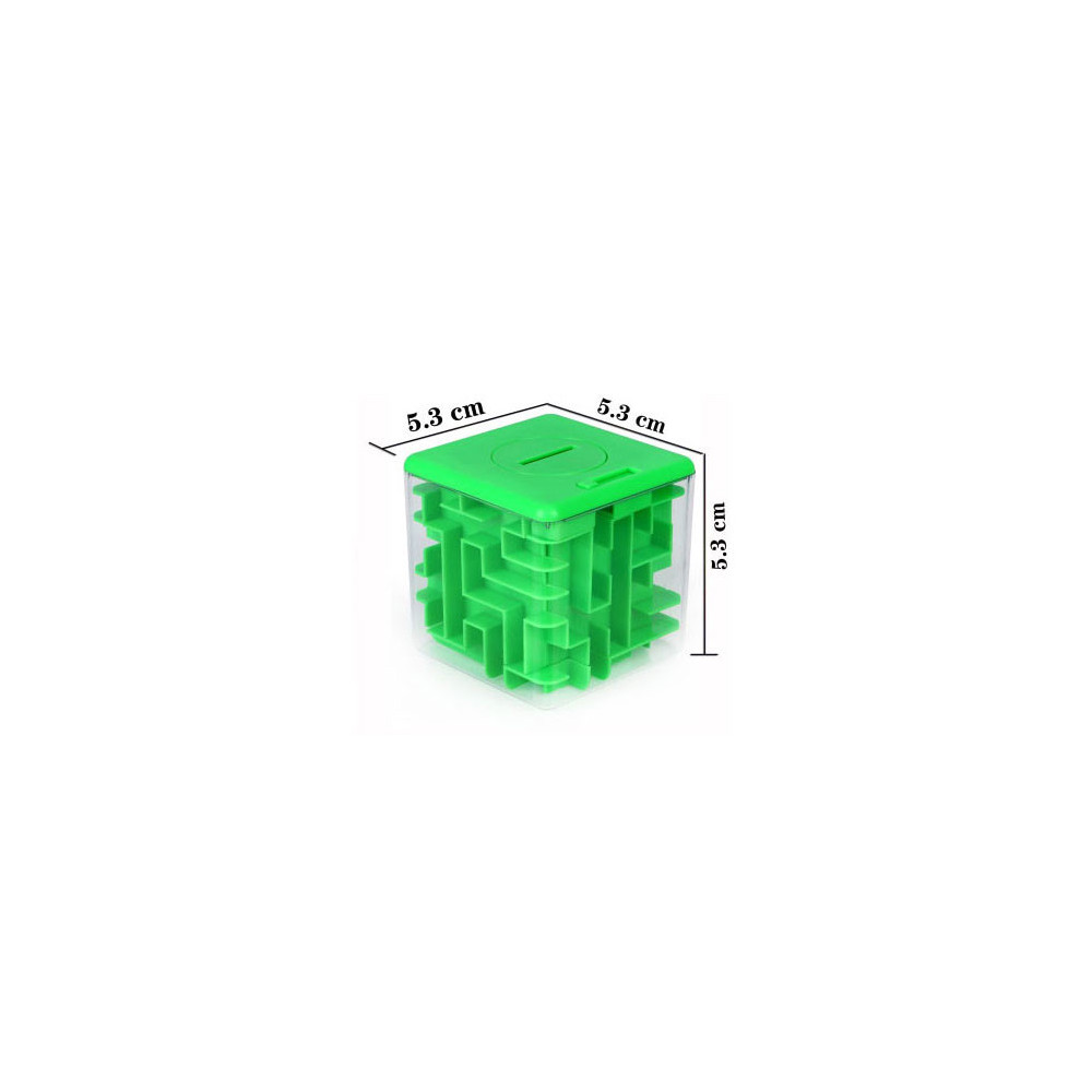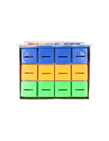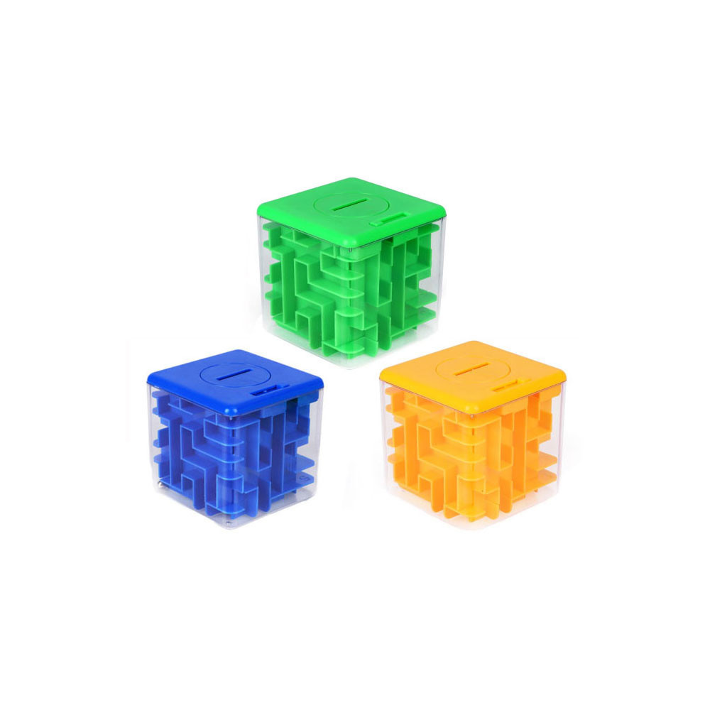 Geduldkubus met geïntegreerde spaarpot. Afmetingen: 5,3 x 5,3 x 5,3 centimeter. Geschikt vanaf 3 jaar.