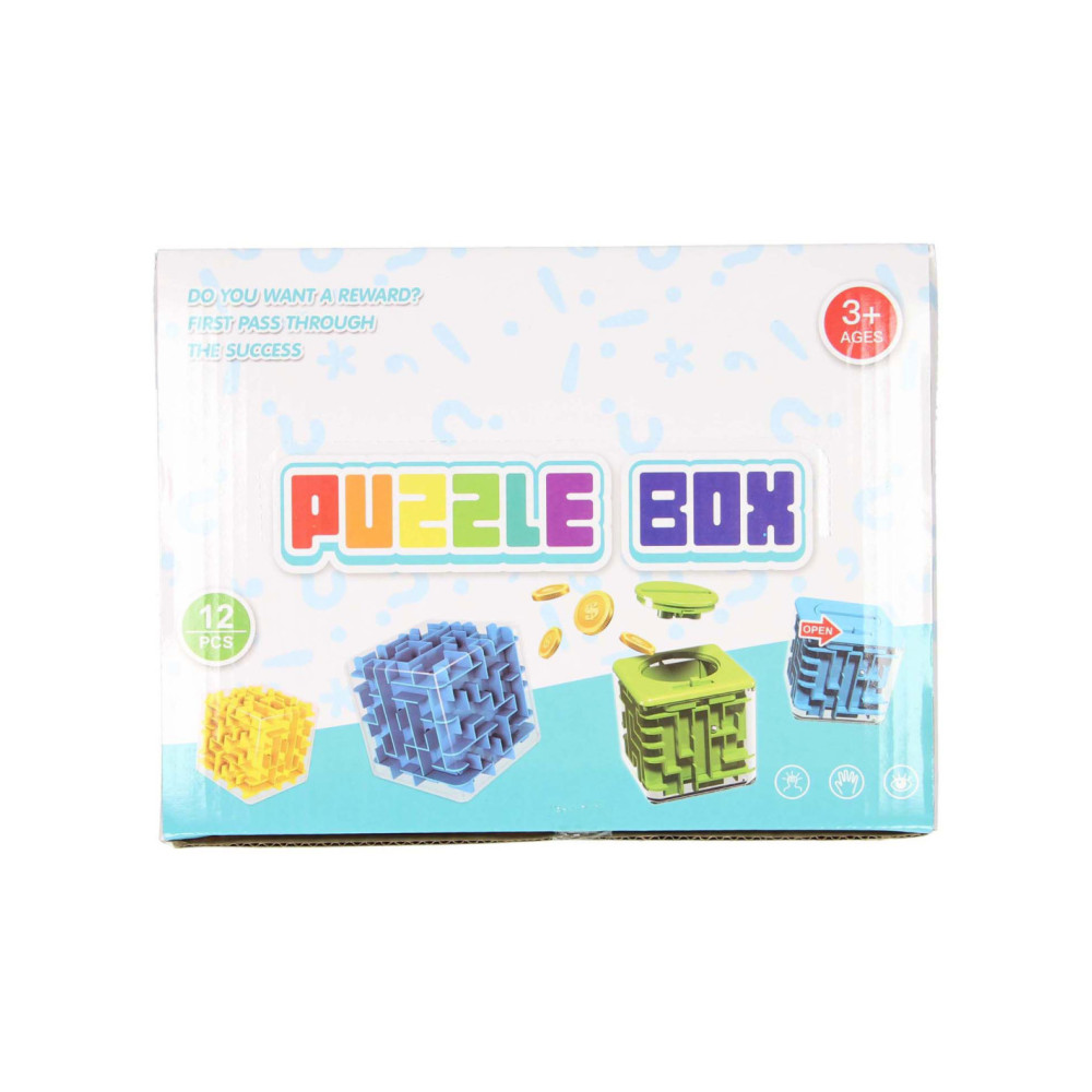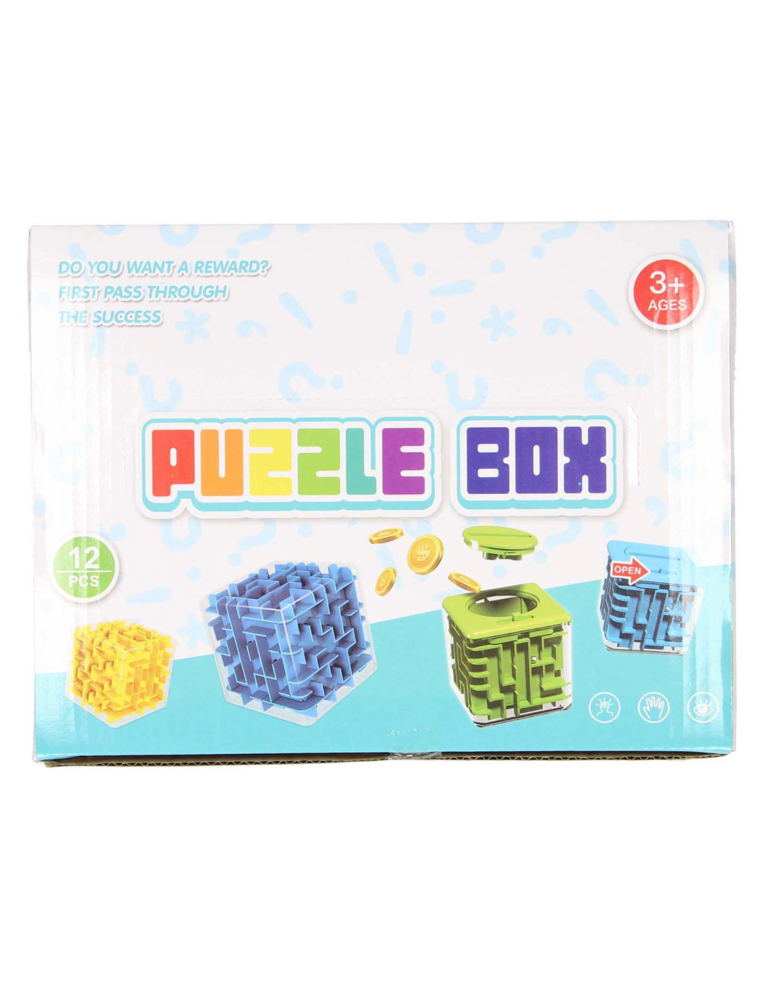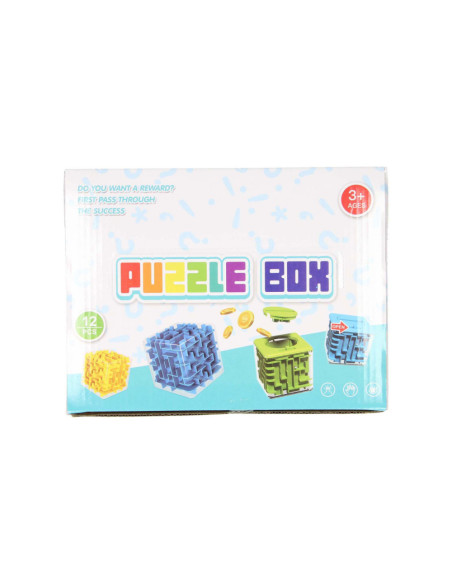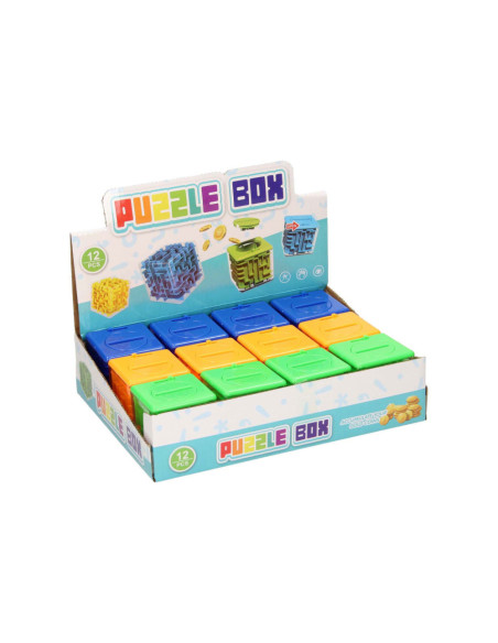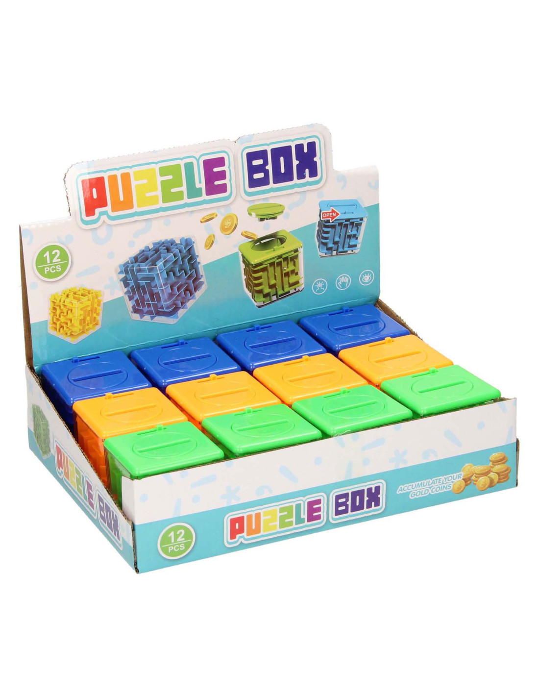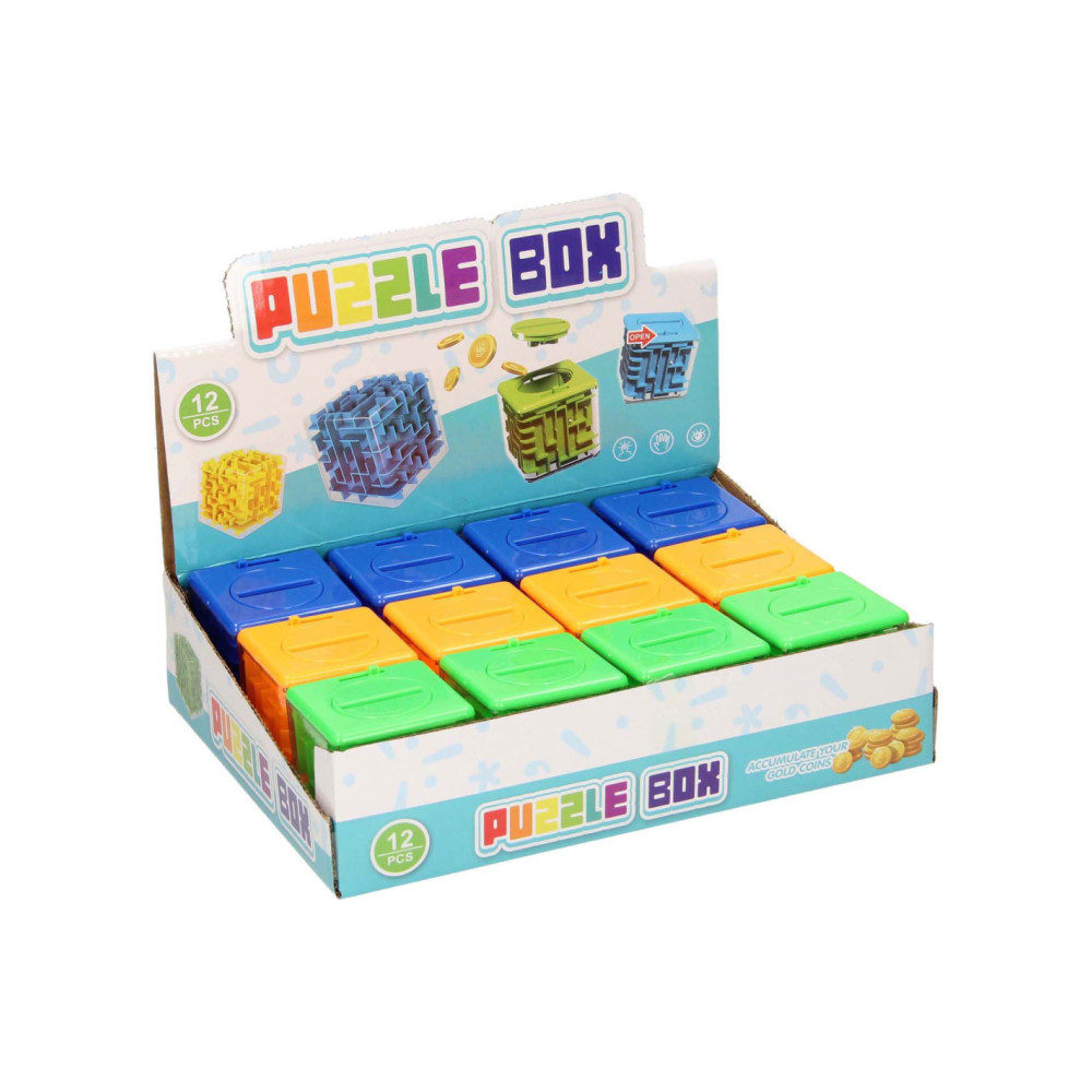 Geduldkubus met geïntegreerde spaarpot. Afmetingen: 5,3 x 5,3 x 5,3 centimeter. Geschikt vanaf 3 jaar.