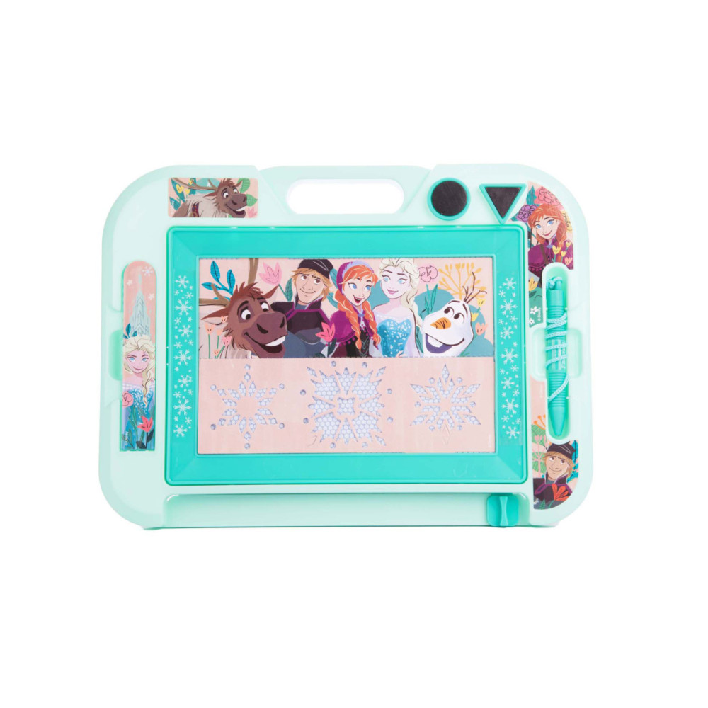 Frozen magnetisch tekenbord. De set komt met een pen, twee magnetische stempels en één stencil. Geschikt voor kinderen vanaf 3 jaar.