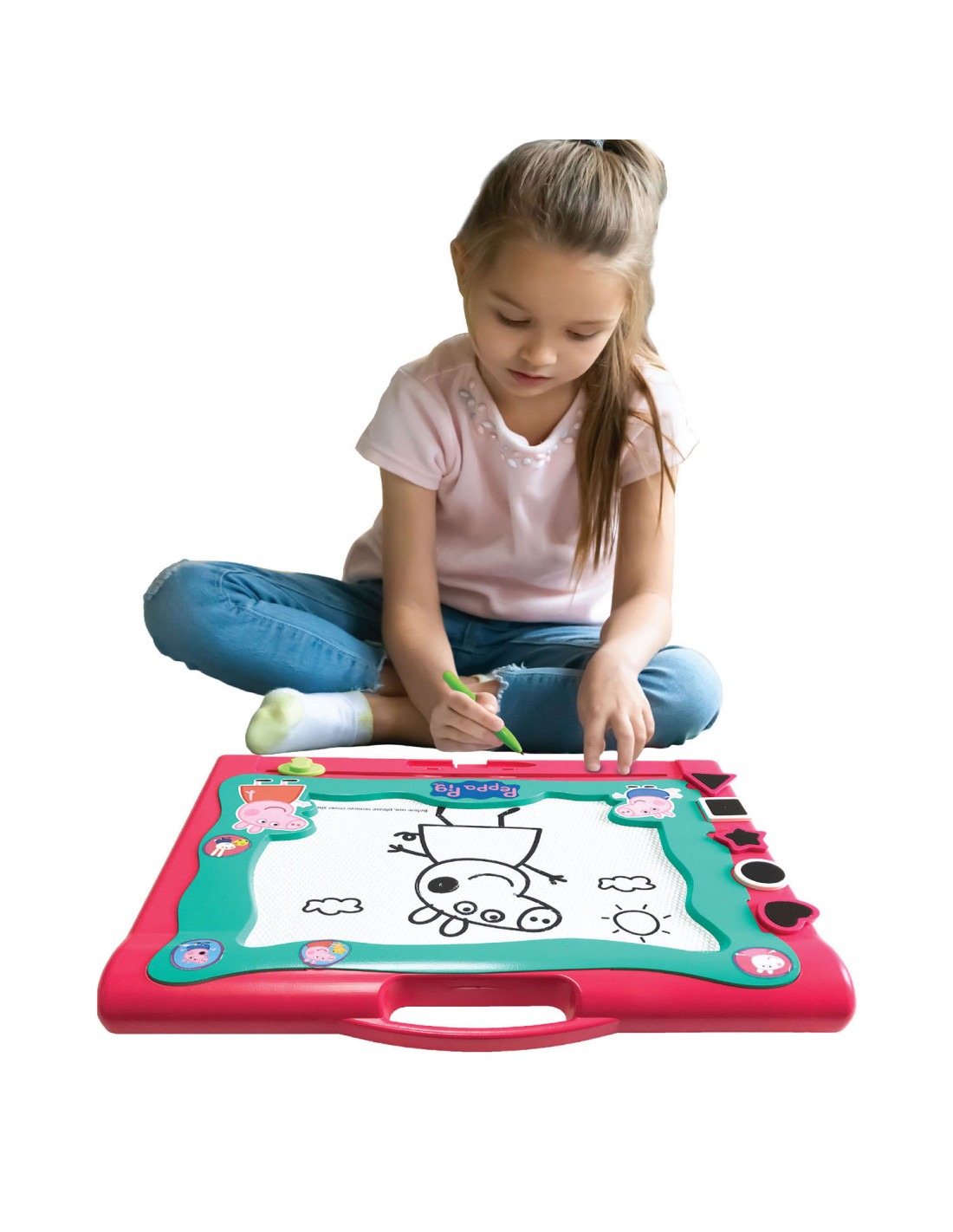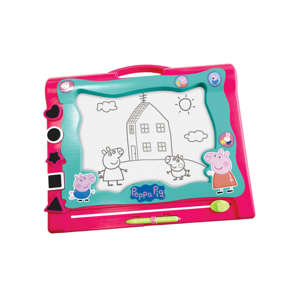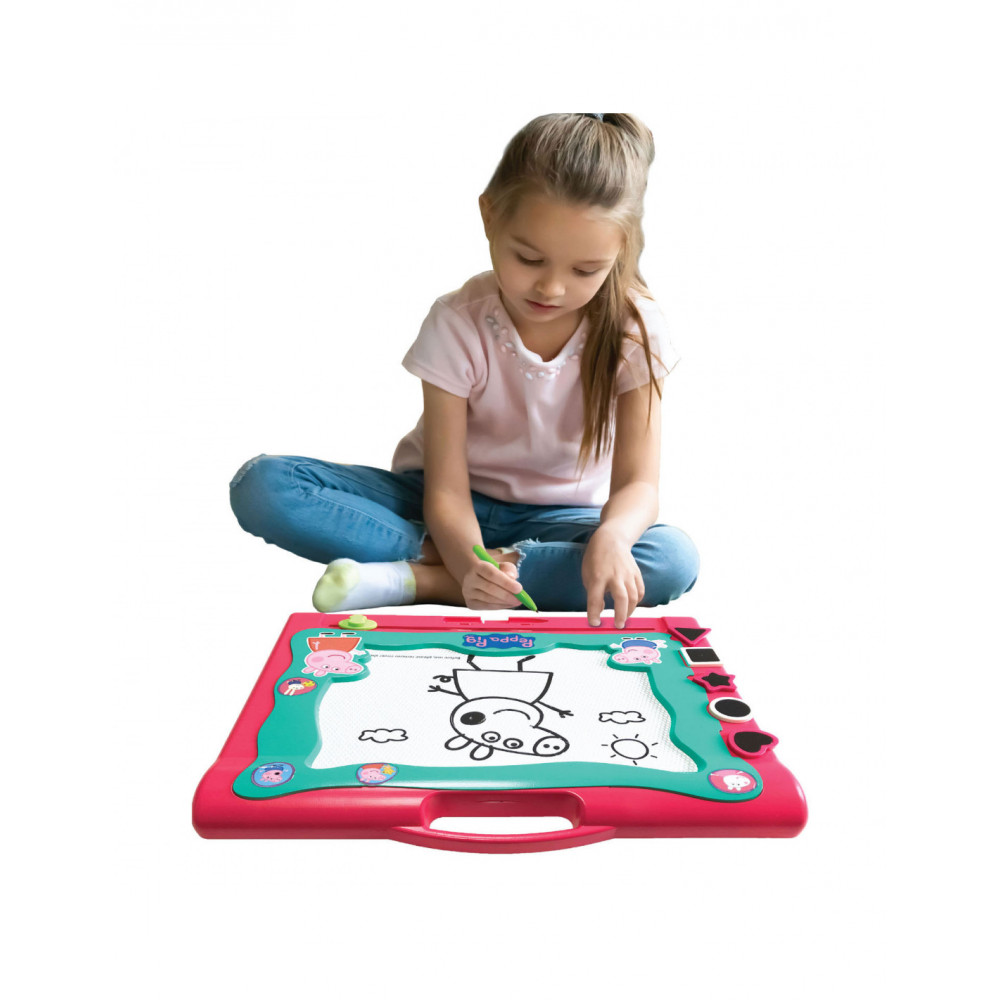 Op dit magnetische bord van Peppa Pig kan je super mooie tekeningen maken. Een groot bord om mee te nemen voor de kinderen. Veeg het bord schoon en gebruik het steeds weer opnieuw. Inclusief stempels en een pen.