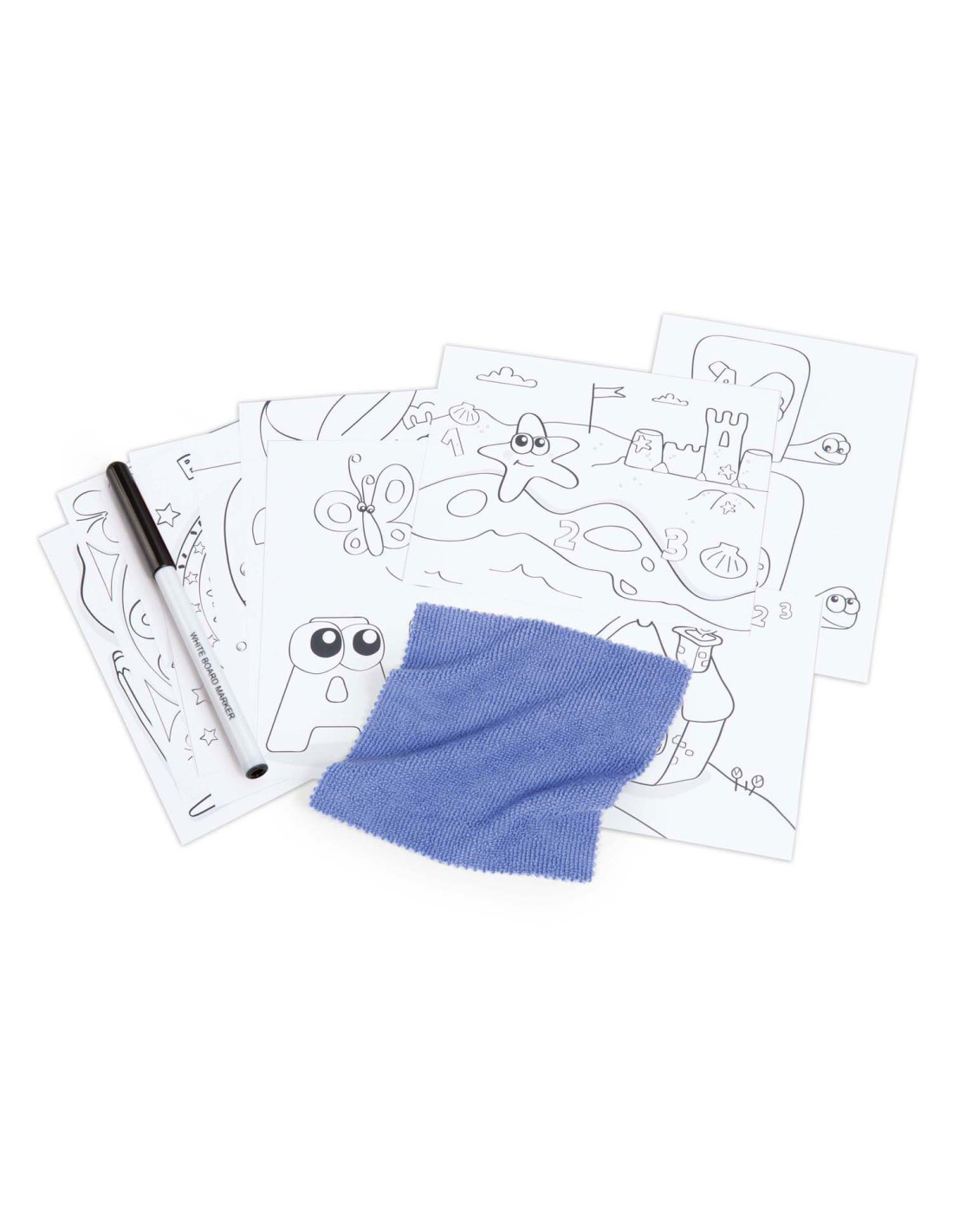Tekenblok met uitwisbare stift en een doekje. Geschikt voor kinderen vanaf 3 jaar. Afmeting: 38x30,5x27 cm.