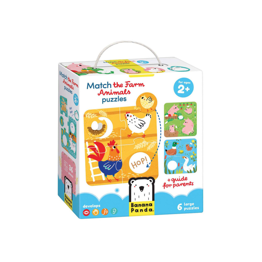 Verrijk de vroege leerontwikkeling van uw kind met de Match the Farm Animals-puzzel van Banana Panda!