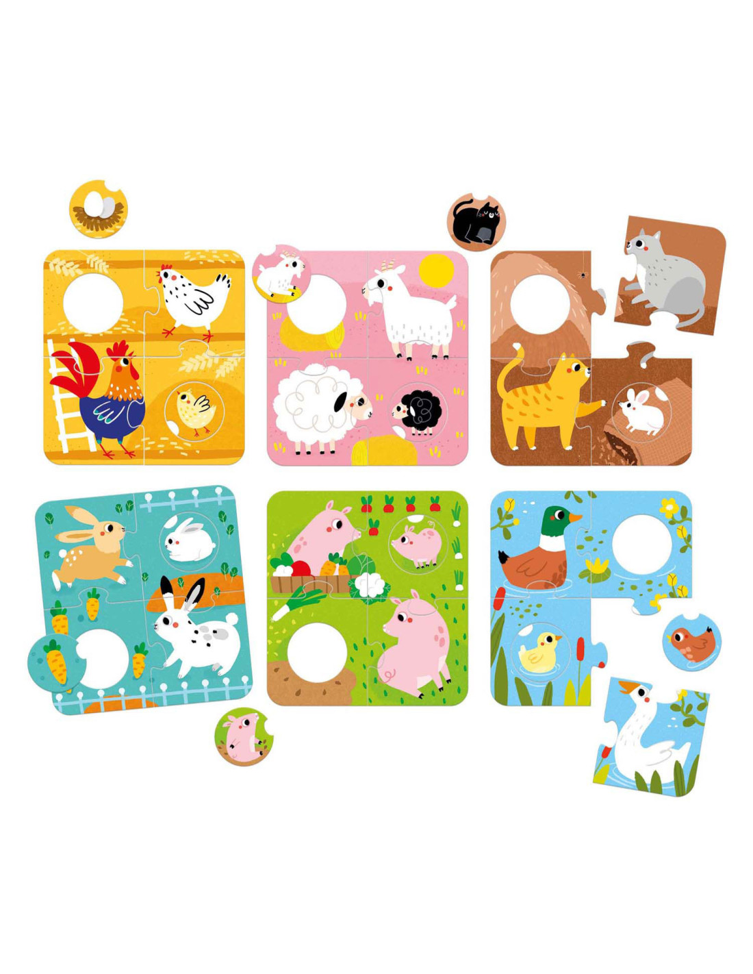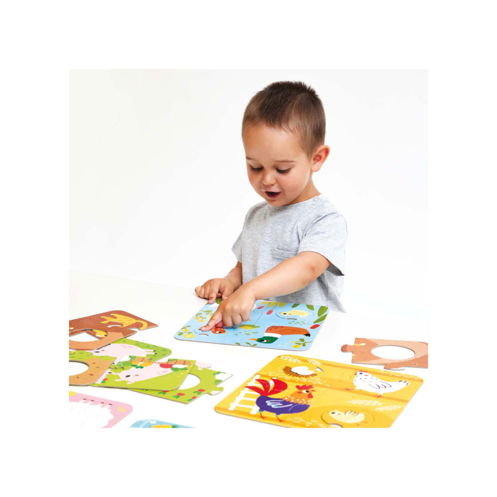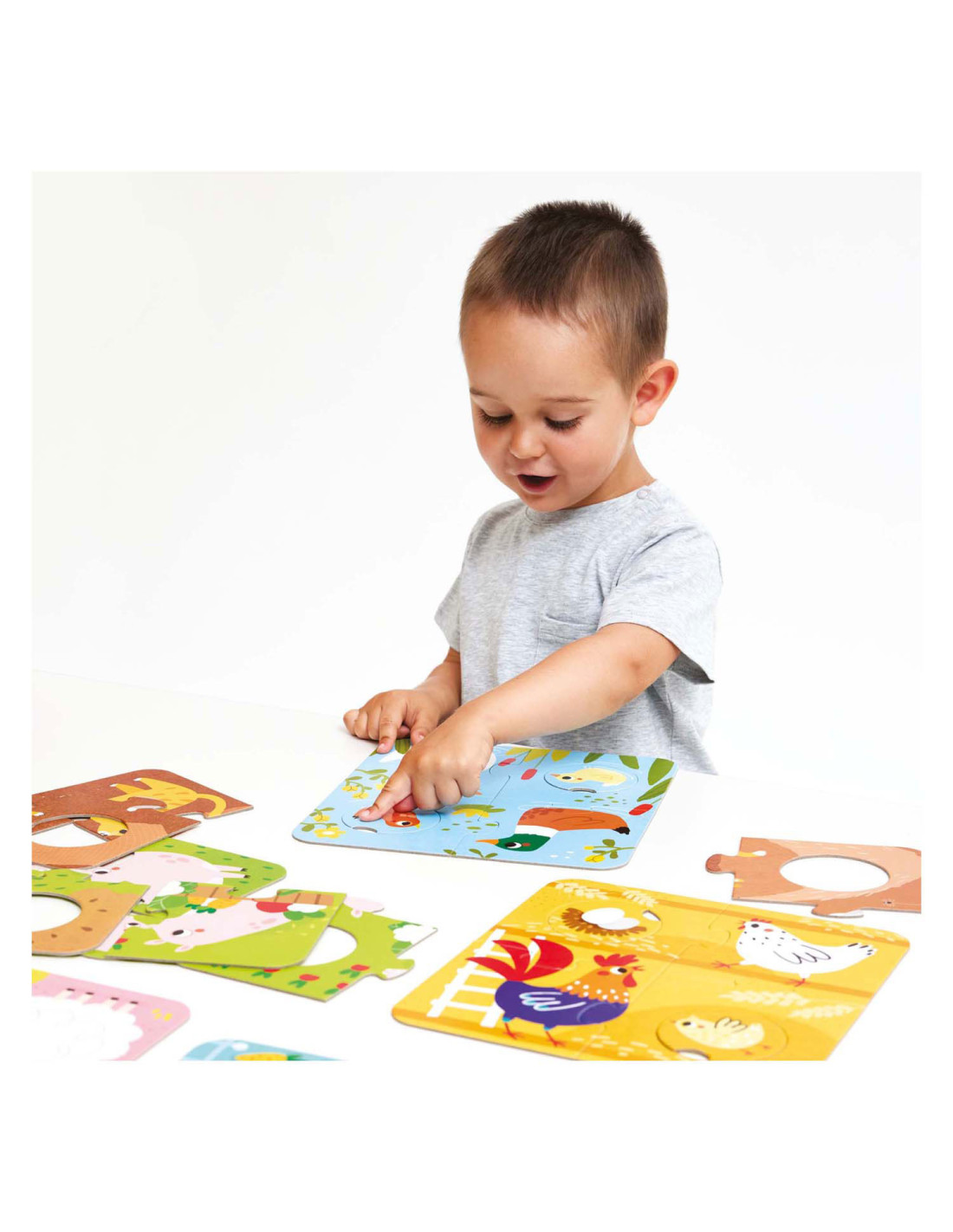 Ga op een leuk boerderijavontuur met de Match the Farm Animals-puzzel van Banana Panda, een leuke set van 6 grote puzzels van 4 stukjes die de aandacht van kleine kinderen zullen trekken en boeien, terwijl ze tegelijkertijd de vroege leerontwikkeling stimuleren.