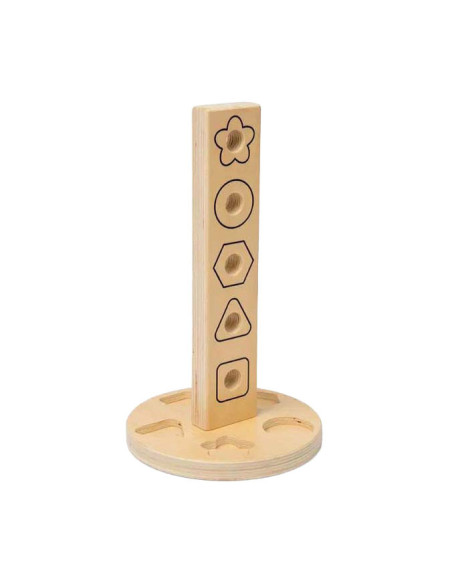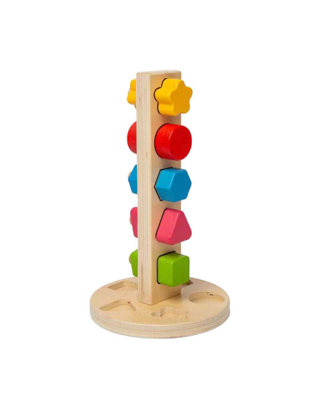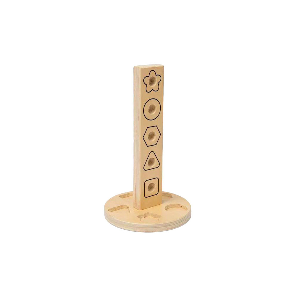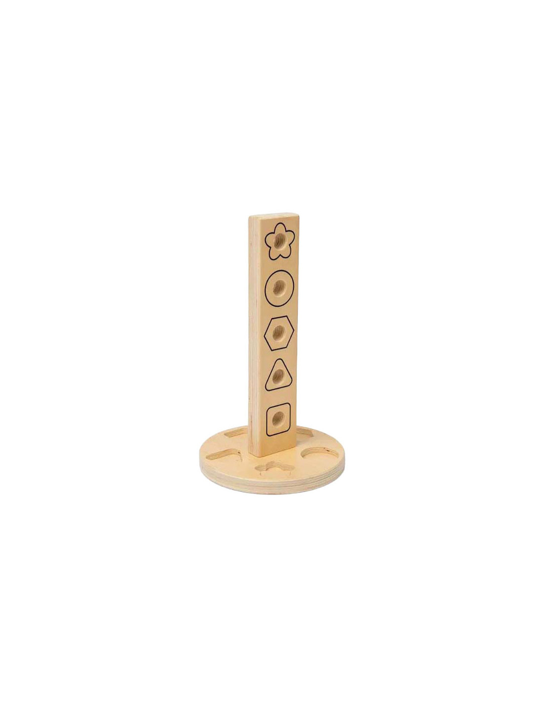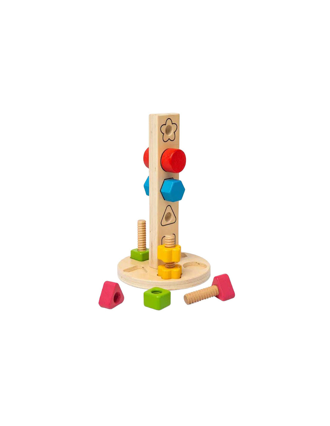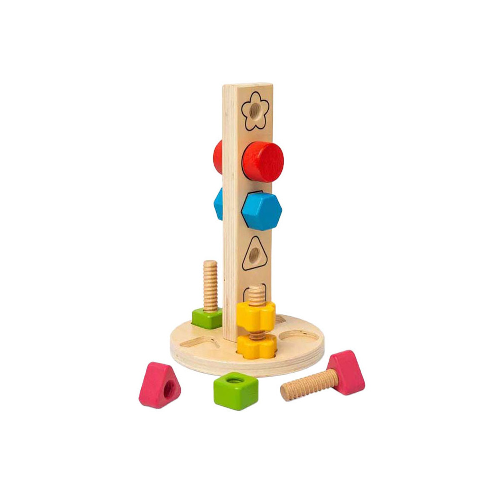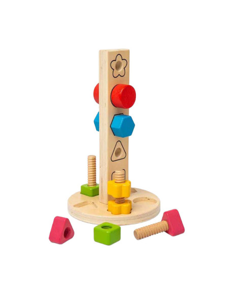 Verbeter de vaardigheden van je kleintje met deze 11-delige Moeren & Bouten-toren, ontworpen om nieuwsgierige jonge geesten te boeien. Dit innovatieve speelgoed bevat een reeks kleurrijke moeren, bouten en vormen die op kleine gegroefde palen worden geschroefd. De houten basis bevat ook vormsorteersleuven, wat de speelwaarde van de toren vergroot.