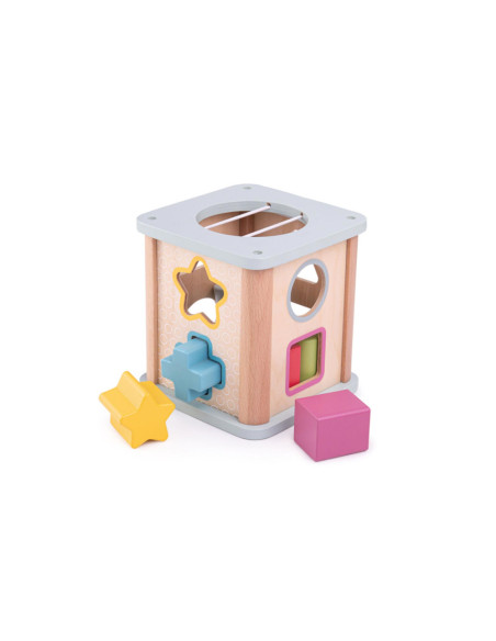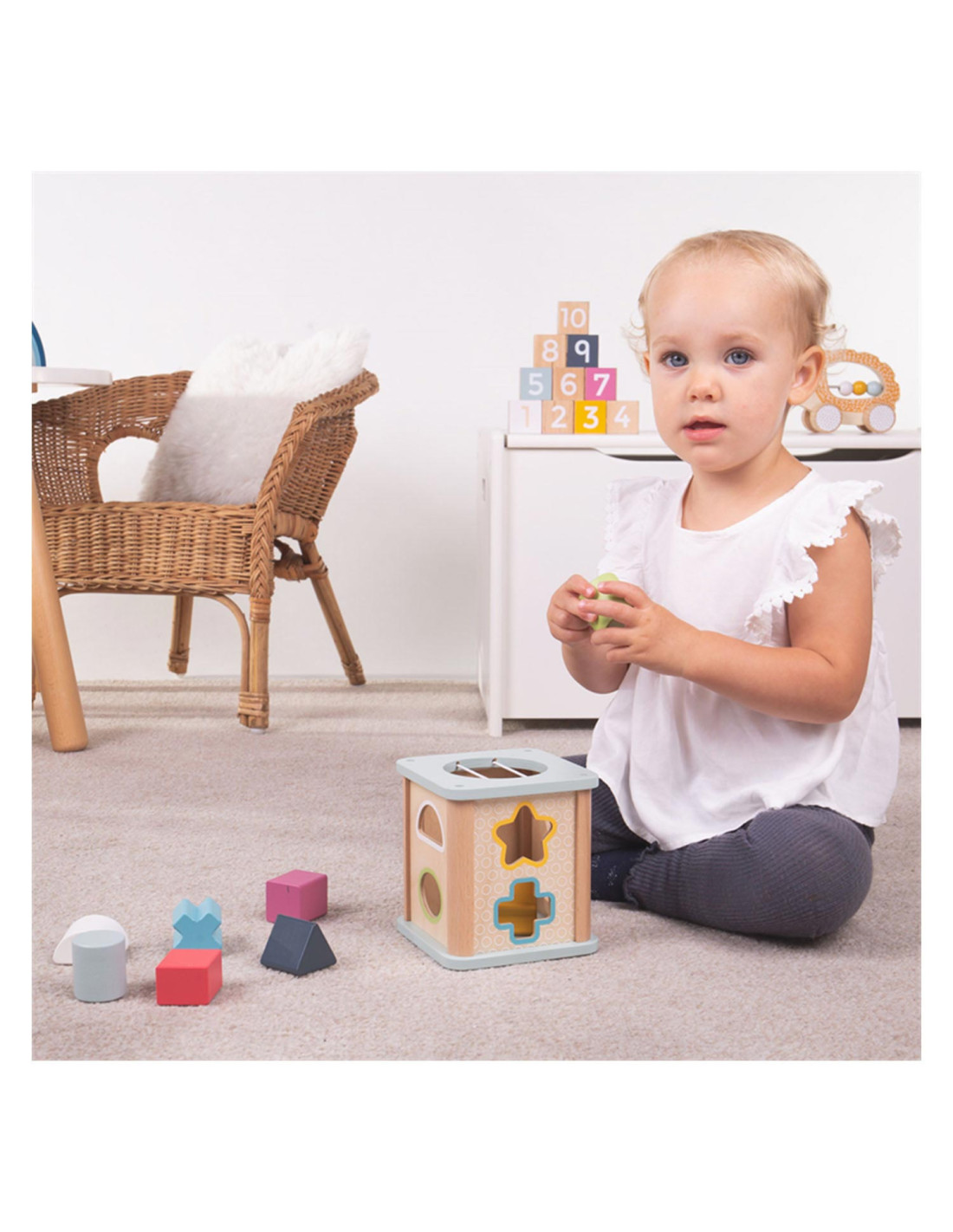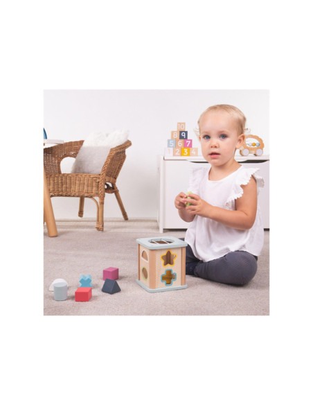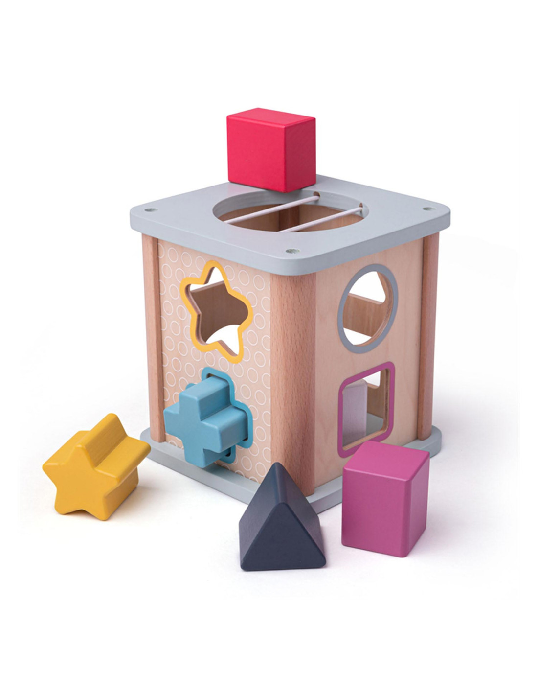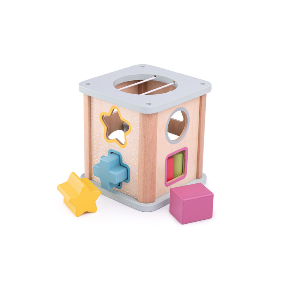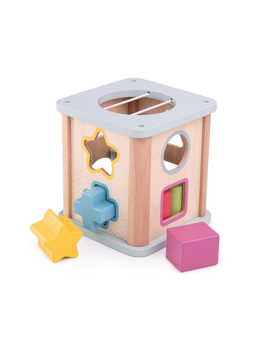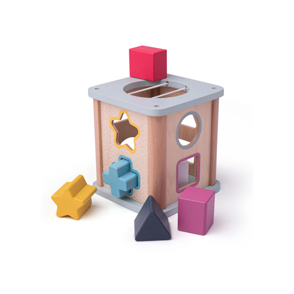 Stevige, houten vormenstoof van Bigjigs met 9 houten speelstukken. De houten vormenstoof is gemaakt van 100% FSC-gecertificeerd hout. Het hout is bewerkt met kindveilige verf en lak. Formaat: 11,8 x 12,6 x 11,8 centimeter. Geschikt voor kinderen vanaf 12 maanden oud.