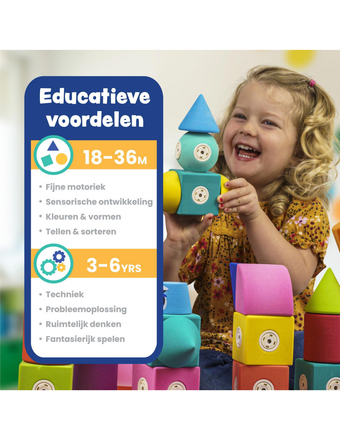 Pedagogisch Leerspeelgoed - Met de Magnetische schuimrubberen bouwstenen kunnen kinderen creatiever bouwen dan ooit tevoren. De grote, zachte schuimblokken zijn ideaal voor peuters en kleuters! Om spelenderwijs te leren!
