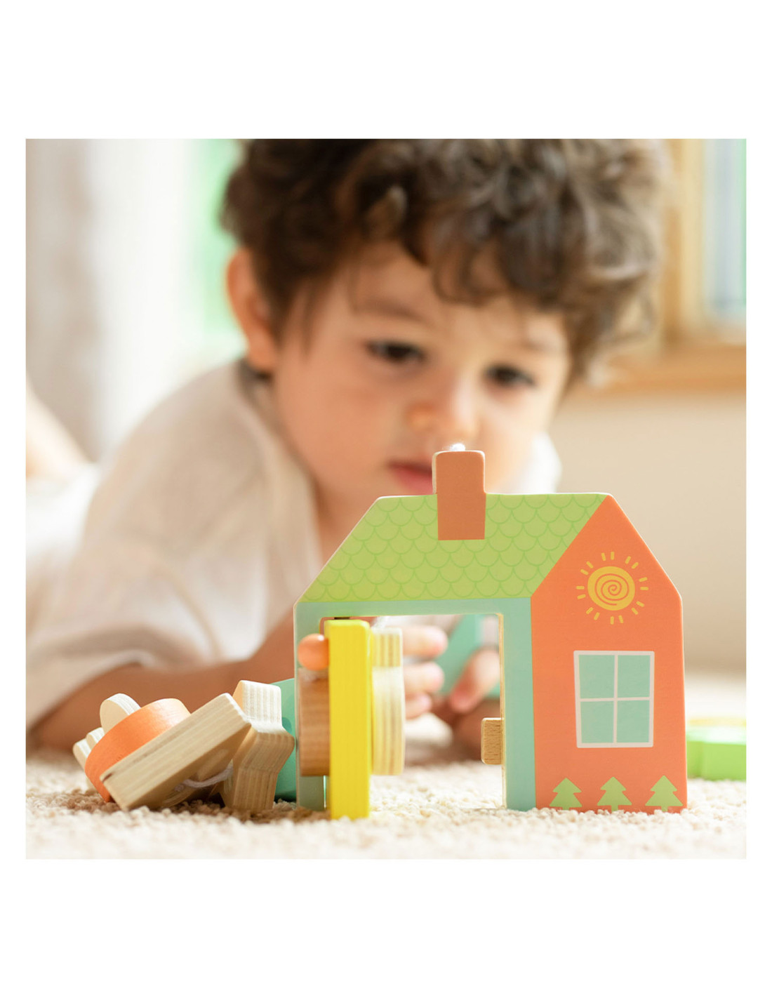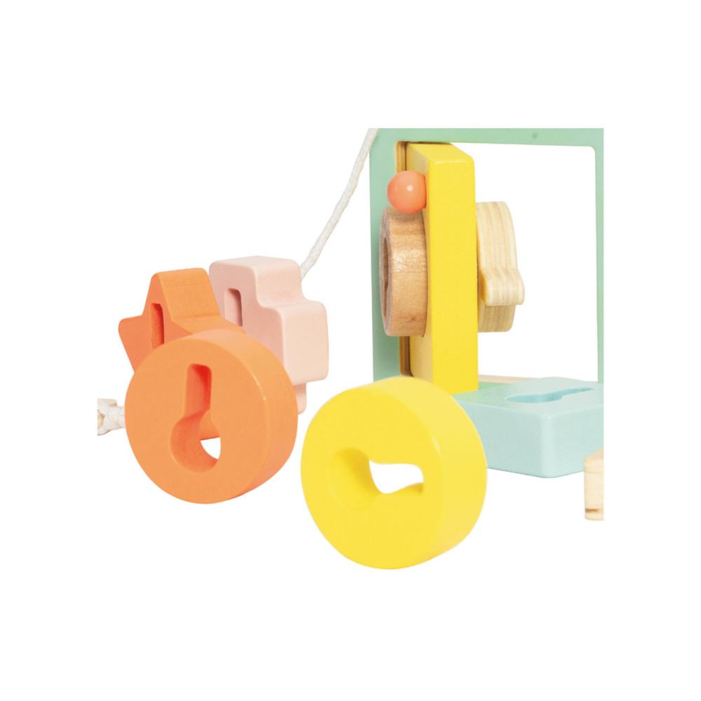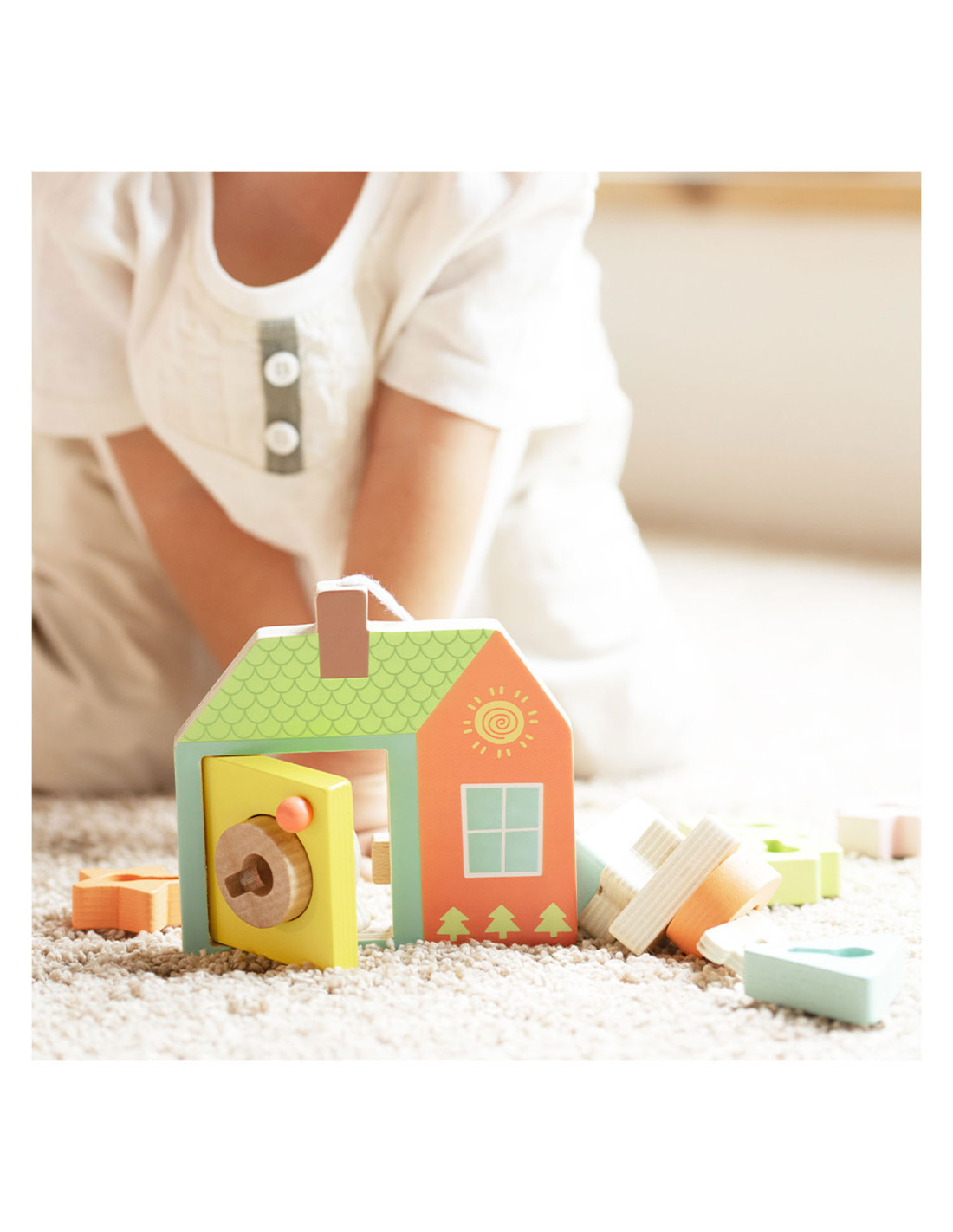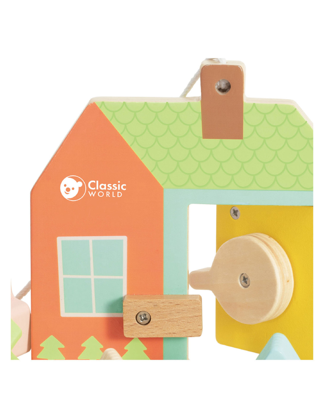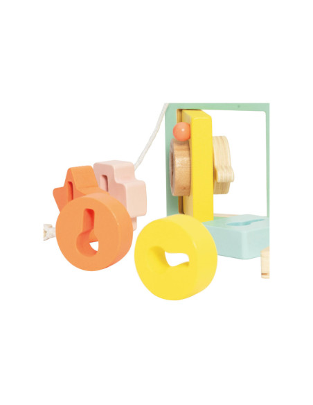 Onze vormenspel van Classic World is de perfecte manier om de ontwikkeling van peuters en dreumesen te stimuleren. Veel kinderen in deze leeftijdsgroep zijn geïnteresseerd in sleutels en sloten, en doen vaak mama of papa na met sleutels bij deuren. Ons spel speelt hier op in, en voegt extra uitdagingen toe. Het bestaat uit een houten huisje met een sleutel en allerlei gekleurde vormpjes. Met de sleutel kun je de deur open- en dichtdraaien en de vormpjes kun je over de sleutel schuiven om een ketting te vormen voor het touw. Dit soort handelingen stimuleren de hand-oogcoördinatie en de fijne motoriek. Dit vormenspel is geschikt voor kinderen vanaf 18 maanden. Bevorder de ontwikkeling van uw kind en koop nu ons vormenspel van Classic World.