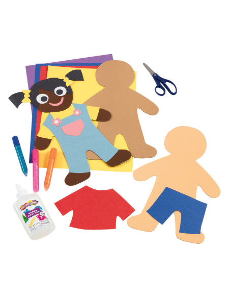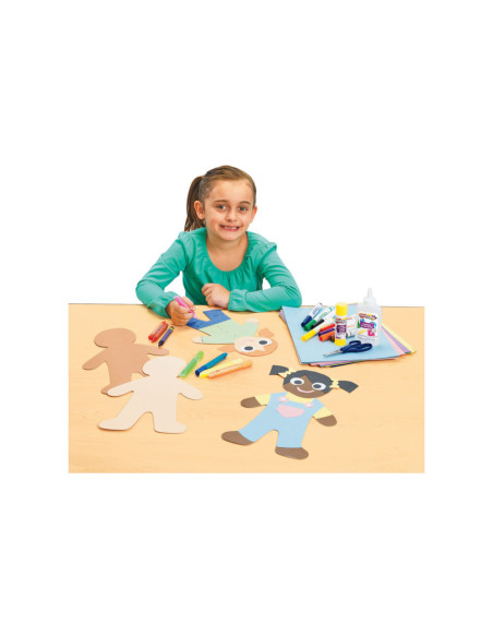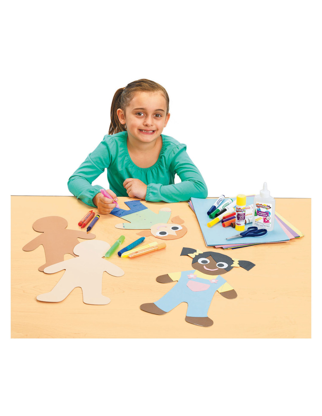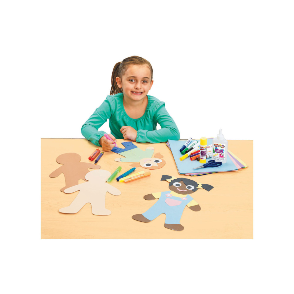 Mensenvormen meten elk 19,5 cm x 30,5 cm en worden geleverd in een set van 24. 6 van elk 4 kleuren. Biedt voldoende ruimte voor kinderen om hun eigen ontwerpen aan te passen.