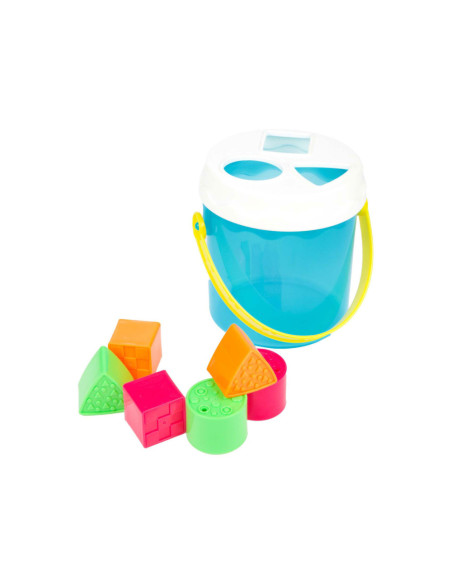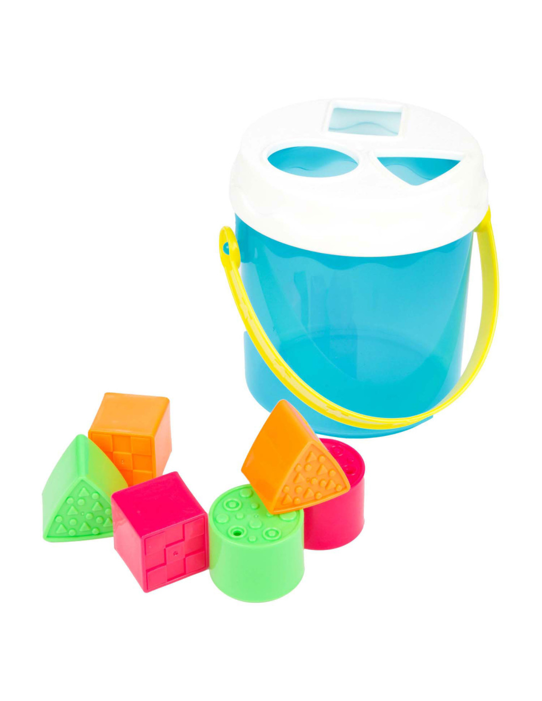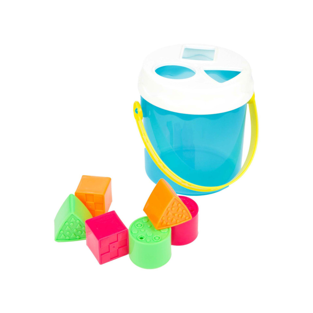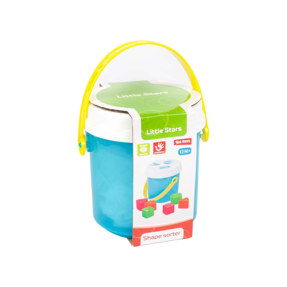 Baby vormenstoof emmer met 6 blokken. Geschikt voor kinderen vanaf 12 maanden.