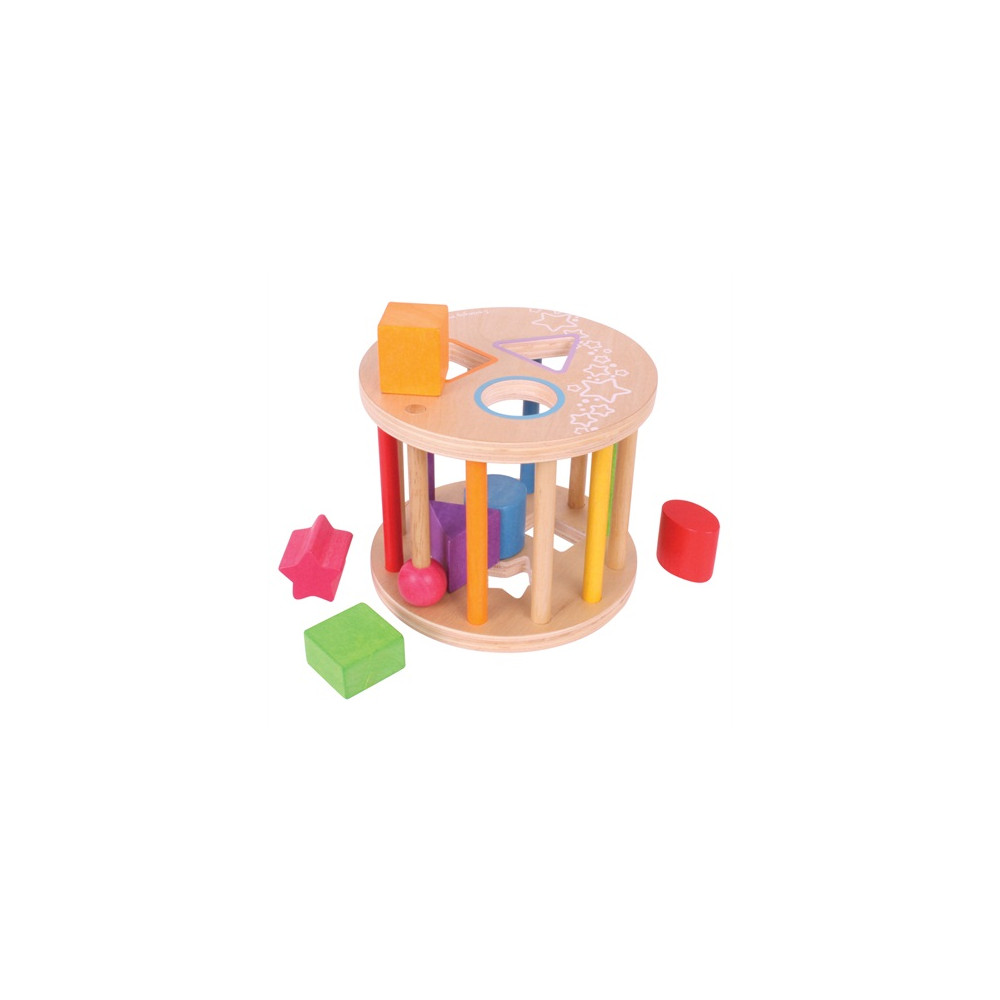 Felgekleurde houten vormenstoof met 6 verschillende vormen. Stop alle vormen in de box en gebruik hem als ratel! Spelen met de vormenstoof bevordert de fijne motoriek en de hand-oog coördinatie.