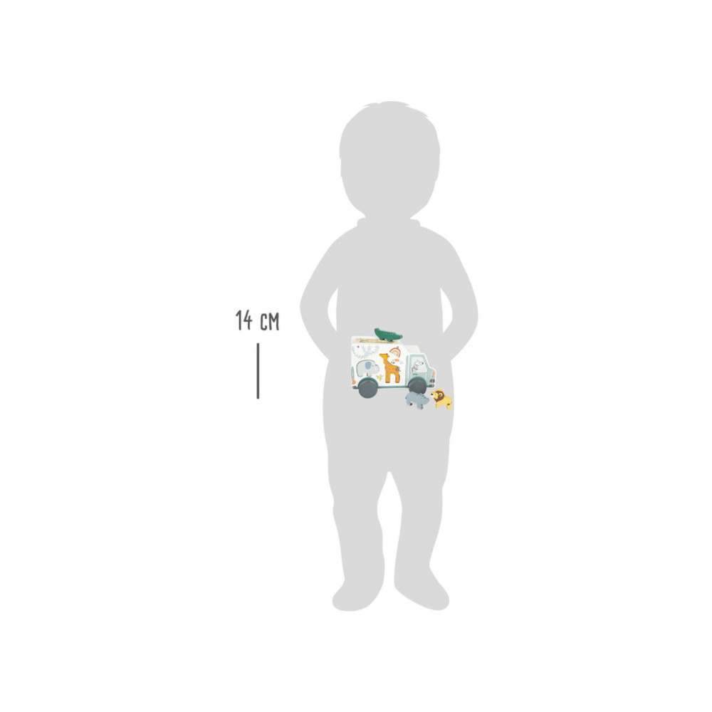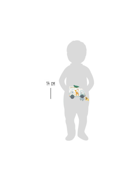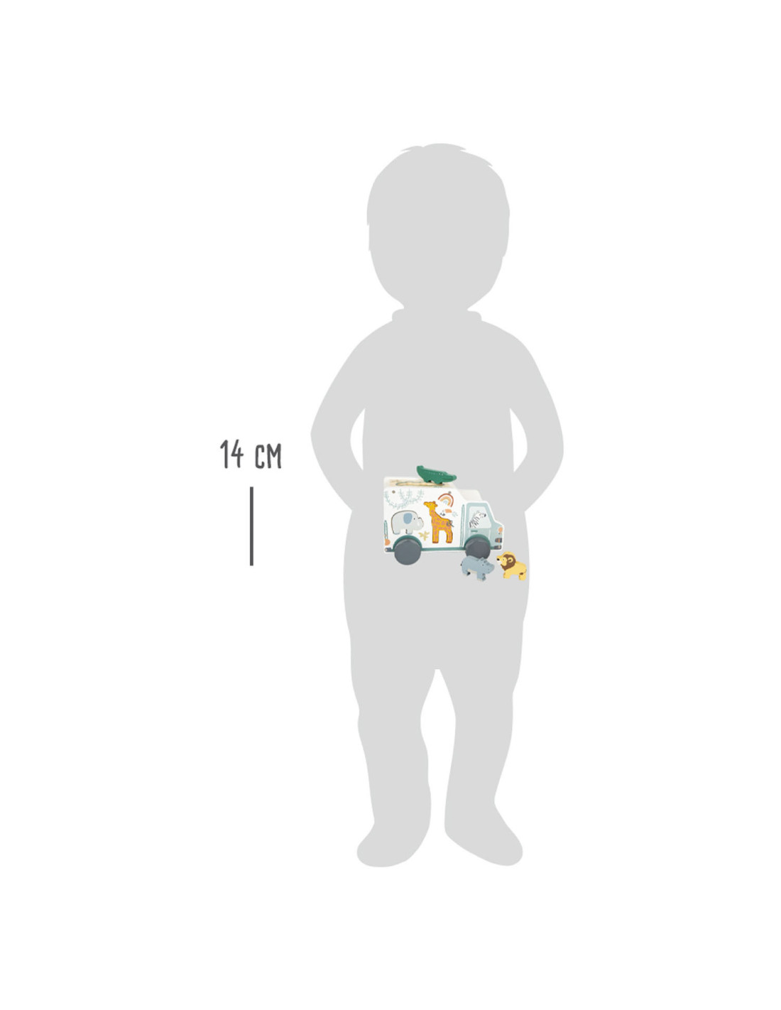 Afmetingen: vrachtwagen ca. 23 x 13 x 14 cm; giraf ca. 5 x 1,5 x 8 cm. Geschikt voor kinderen vanaf 12 maanden oud.