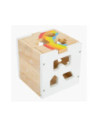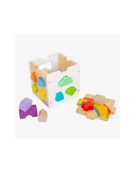 De minimalistische bedrukking op de natuurlijke houten oppervlakken zorgt voor een harmonieuze opwaardering. Het afneembare houten deksel kan naar achteren worden geplaatst en vergrendeld. Welke vorm past in welke opening? Dit is langdurig entertainment met een leerzaam en leuk effect voor de jongste kinderen. Door het deksel te openen, kunnen alle insteekstukken er weer uit worden gehaald.