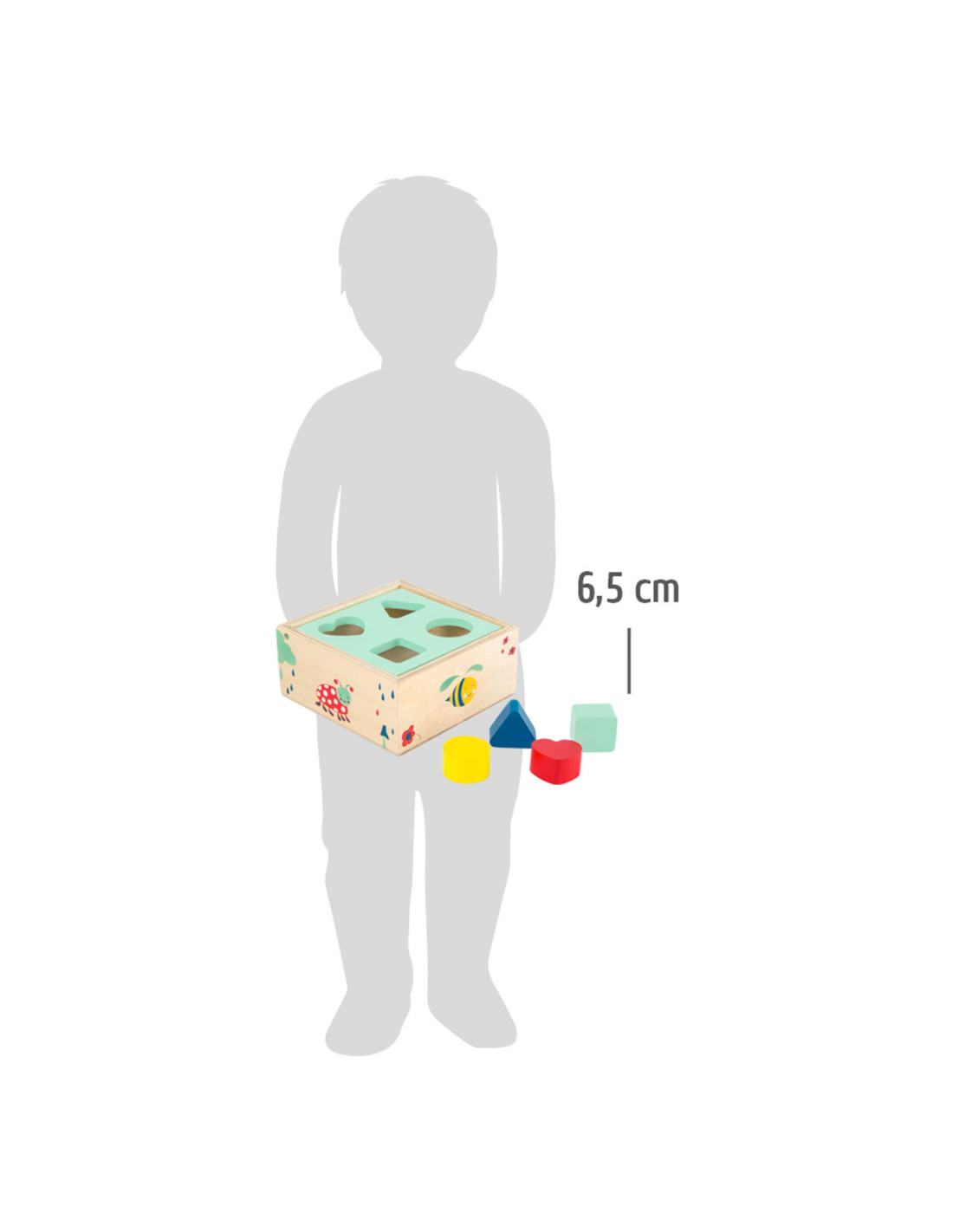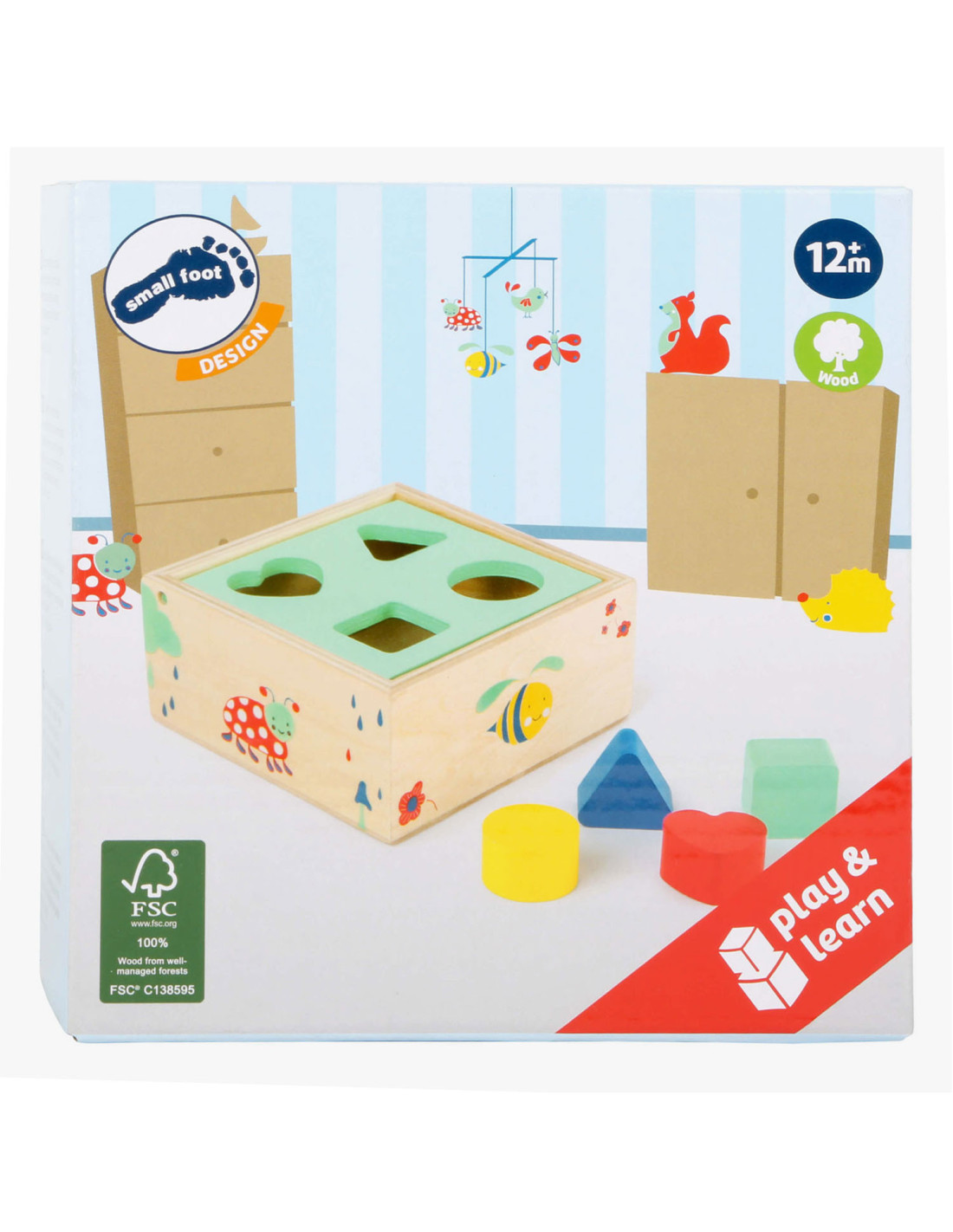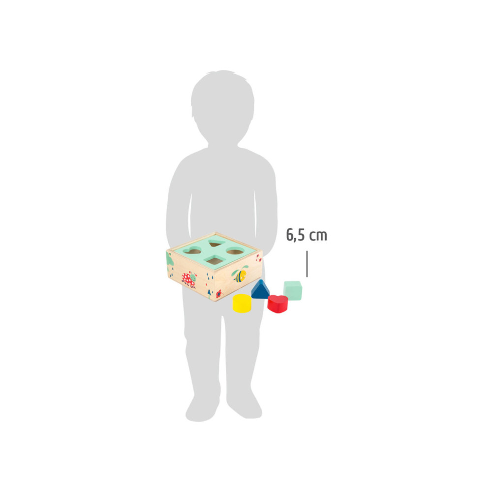 Vormen en kleuren worden spelenderwijs aangeleerd met deze vormsluitende kubus van 100% FSC-gecertificeerd hout. Het deksel is gemakkelijk te openen en te sluiten. De nieuwsgierige dieren van de bossen en velden kijken graag naar het speelplezier! De “Move it!” productlijn heeft een grote aantrekkingskracht door het gebruik van veel hout, de intuïtiviteit en de hoge speelwaarde. Vormen en kleuren worden spelenderwijs aangeleerd met deze houten vormsluitende kubus. Het deksel is gemakkelijk te openen en te sluiten. De nieuwsgierige dieren van de bossen en velden kijken graag naar het speelplezier!