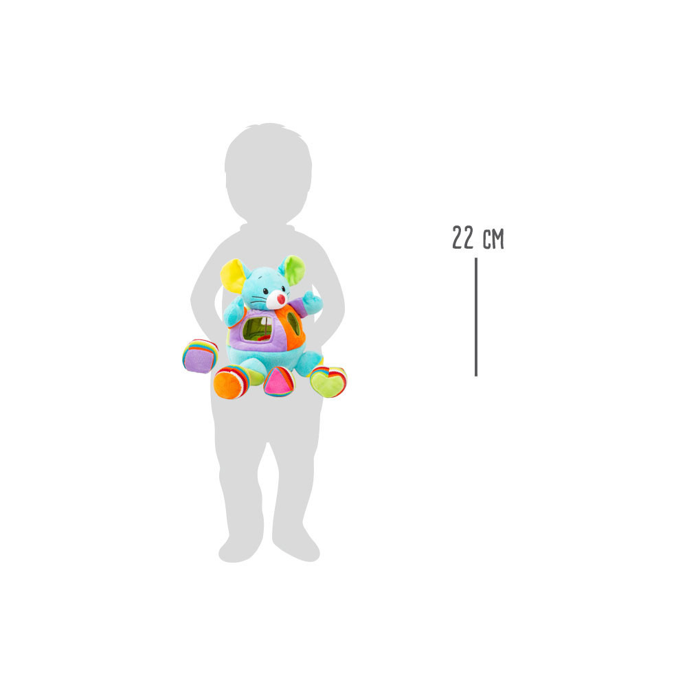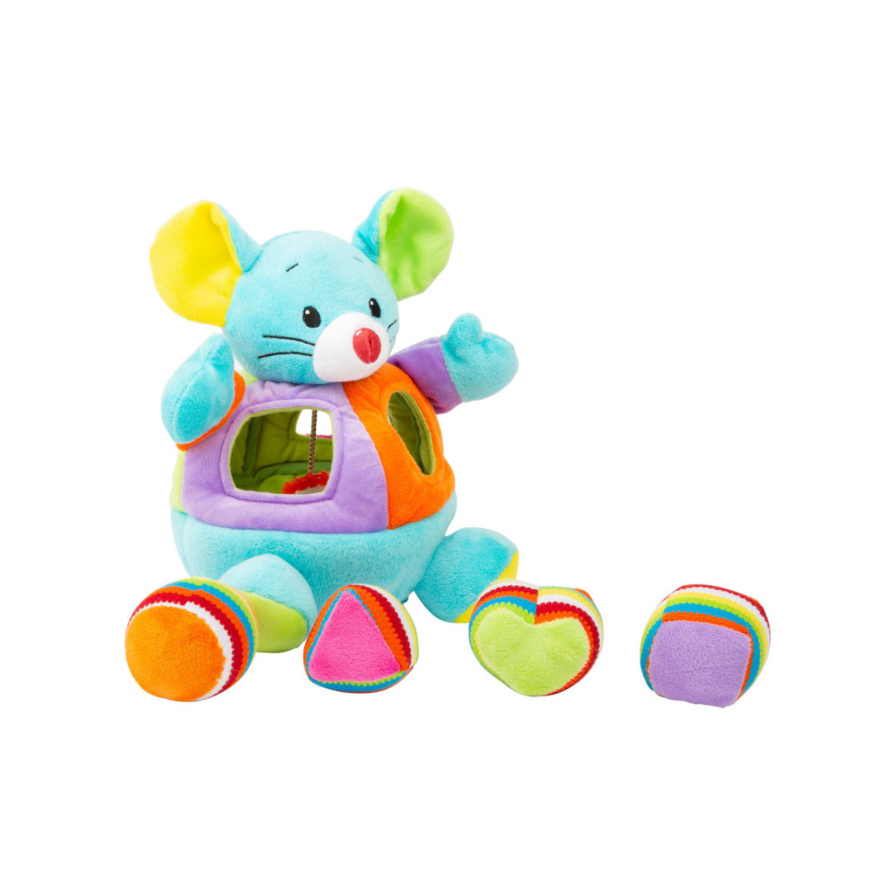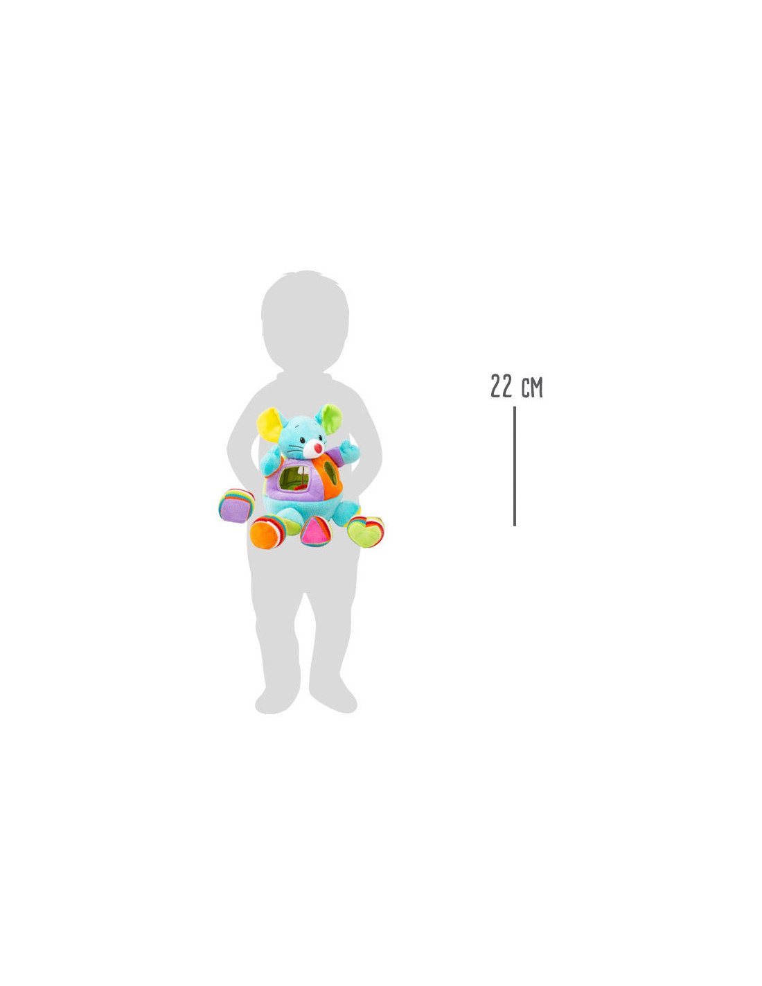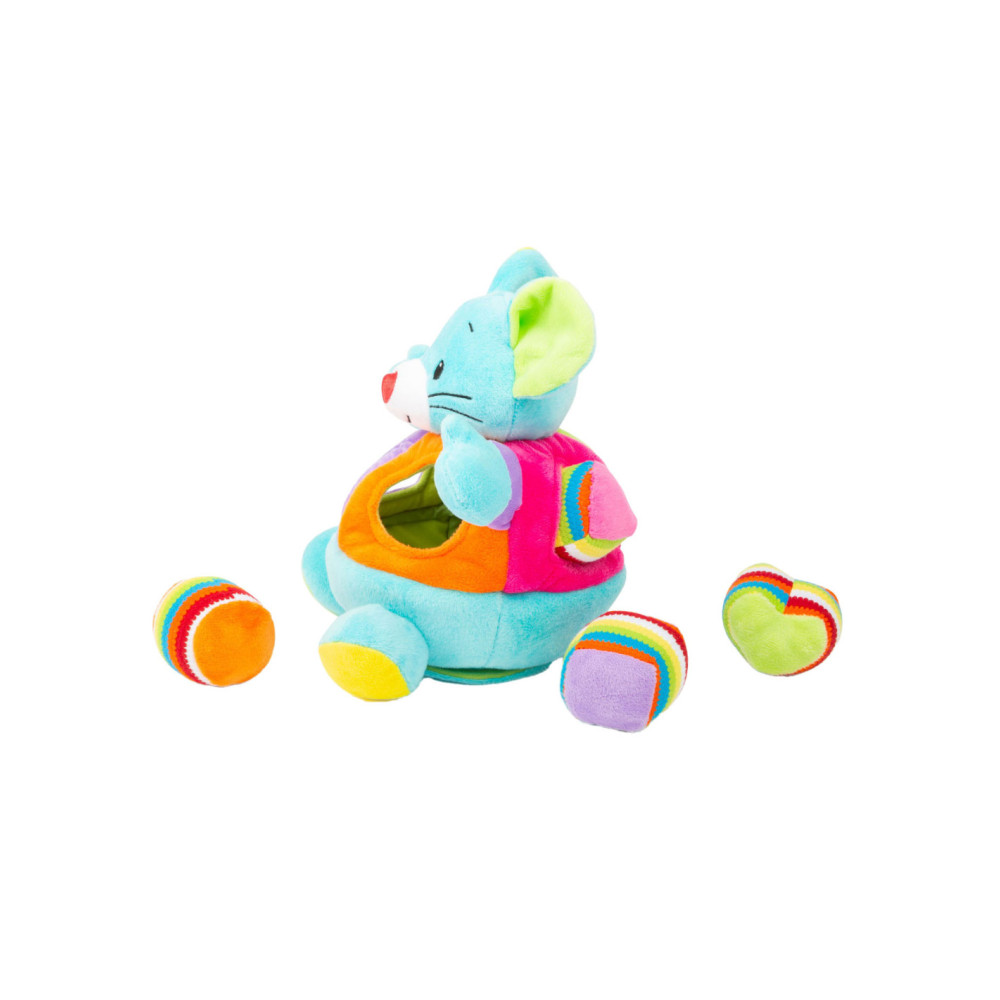 Een muis nodigt je uit voor een ontdekkingstocht! Met deze kleurrijke pluche muis trainen jonge kinderen hun motoriek en hun ruimtelijk denken. De verschillende pluche vormen moeten niet alleen in de juiste uitsparingen worden gestopt - ze fascineren ook de kleintjes met hun piepende, ratelende en knetterende functies. Als baby's de muis omdraaien, kijken ze naar zichzelf in de spiegel. Een rammelaar, bevestigd via een rubberen band met twee ringen, biedt nog meer speelplezier. Nadat de speeltijd voorbij is, kunnen alle onderdelen in de muis worden opgeborgen. Een prachtig stuk motorisch speelgoed!