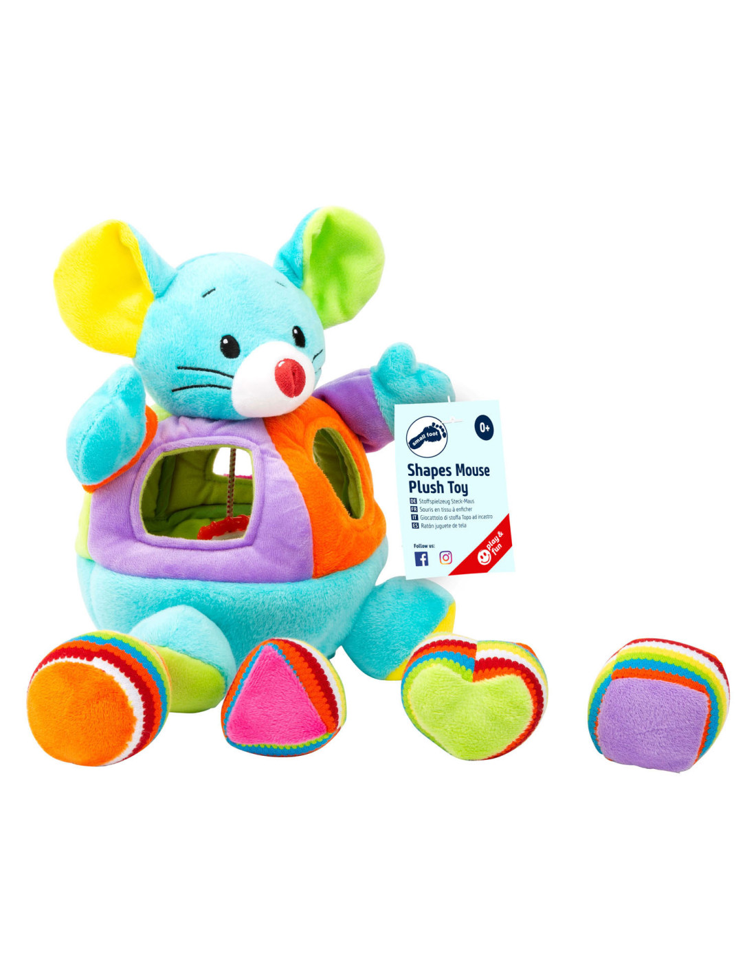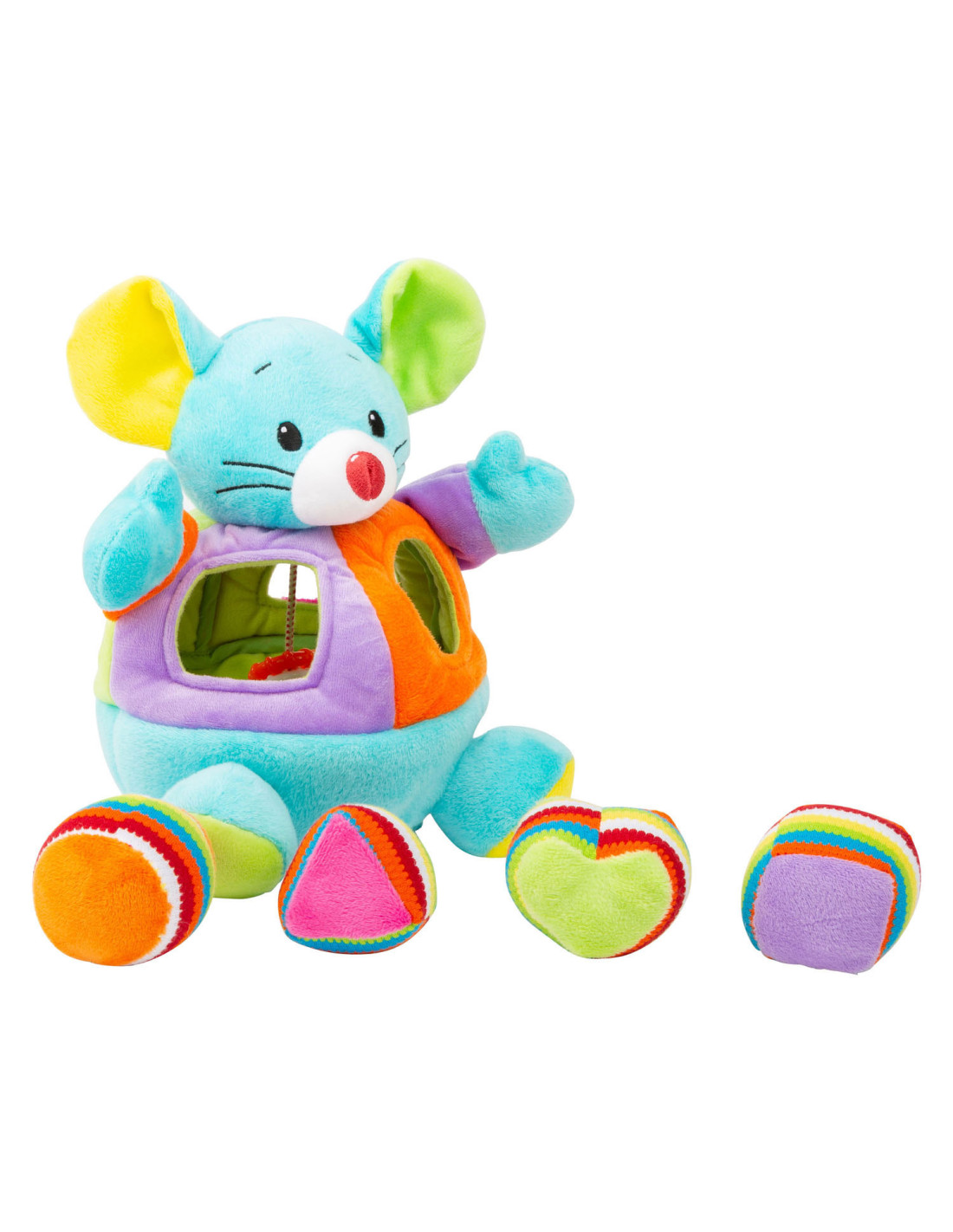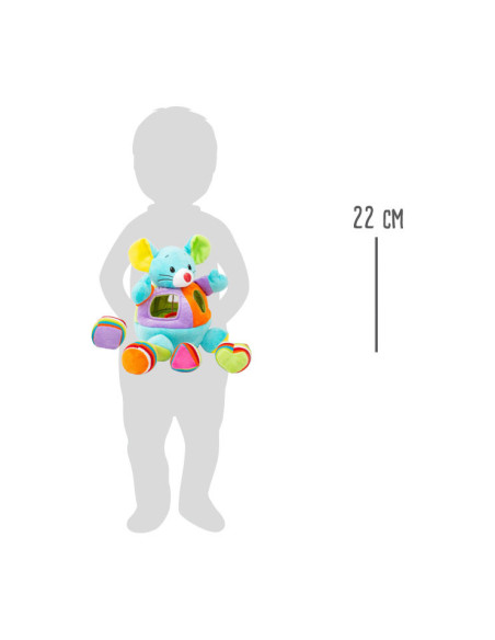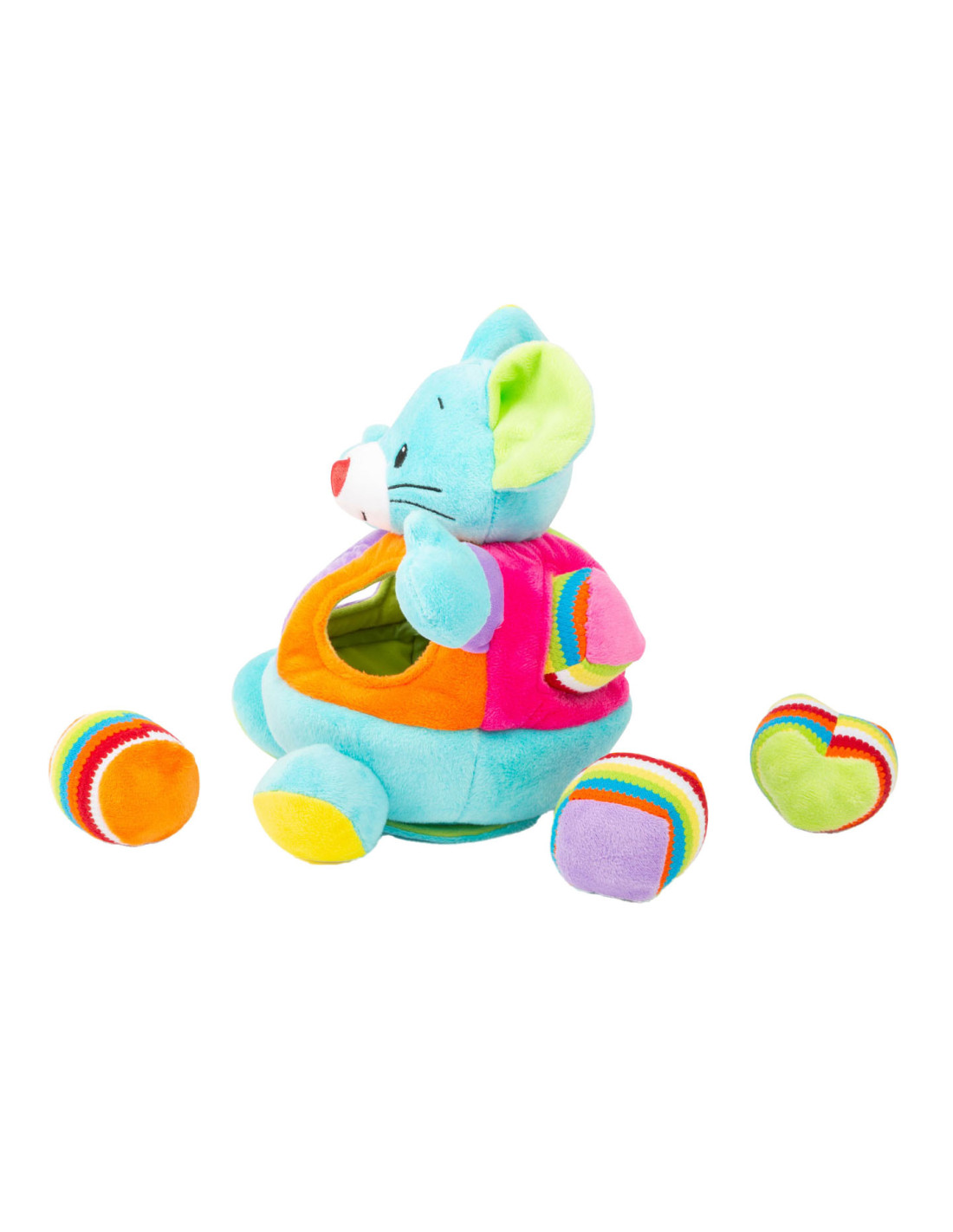 Een muis nodigt je uit voor een ontdekkingstocht! Met deze kleurrijke pluche muis trainen jonge kinderen hun motoriek en hun ruimtelijk denken. De verschillende pluche vormen moeten niet alleen in de juiste uitsparingen worden gestopt - ze fascineren ook de kleintjes met hun piepende, ratelende en knetterende functies. Als baby's de muis omdraaien, kijken ze naar zichzelf in de spiegel. Een rammelaar, bevestigd via een rubberen band met twee ringen, biedt nog meer speelplezier. Nadat de speeltijd voorbij is, kunnen alle onderdelen in de muis worden opgeborgen. Een prachtig stuk motorisch speelgoed!