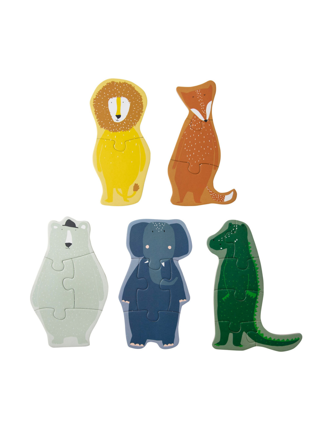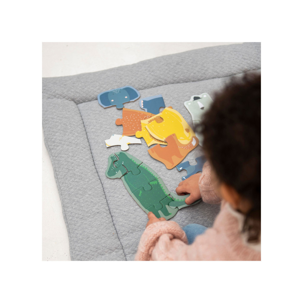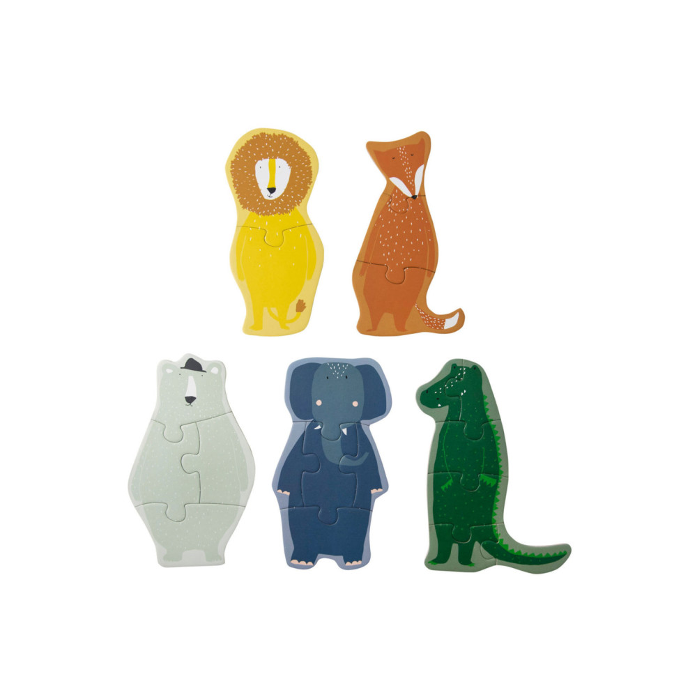 Vijf dierenvrienden om mee te spelen! Verzamel alle juiste puzzelstukken om de 5 verschillende dierenpuzzels te maken. Elke puzzel heeft een andere moeilijkheidsgraad, variërend van een 2-delige tot een 6-delige puzzel. Dit is de ideale set voor alle kleintjes die net puzzels beginnen te ontdekken! Dit spel is gemaakt van sterk FSC© karton en is bedrukt met soya inkt.