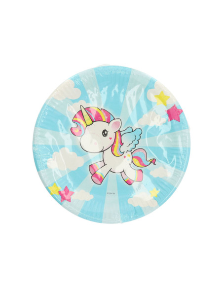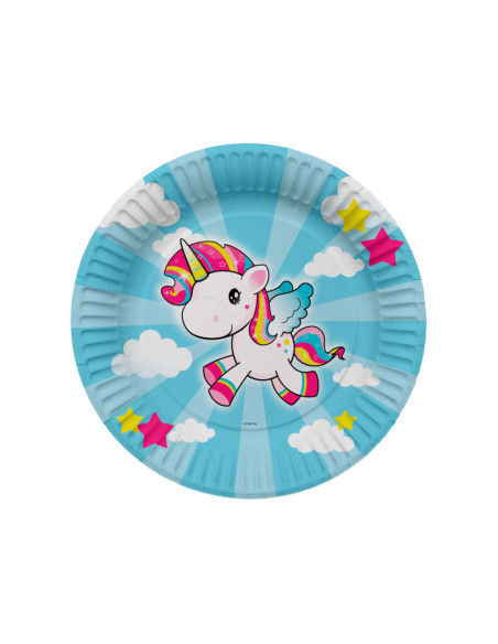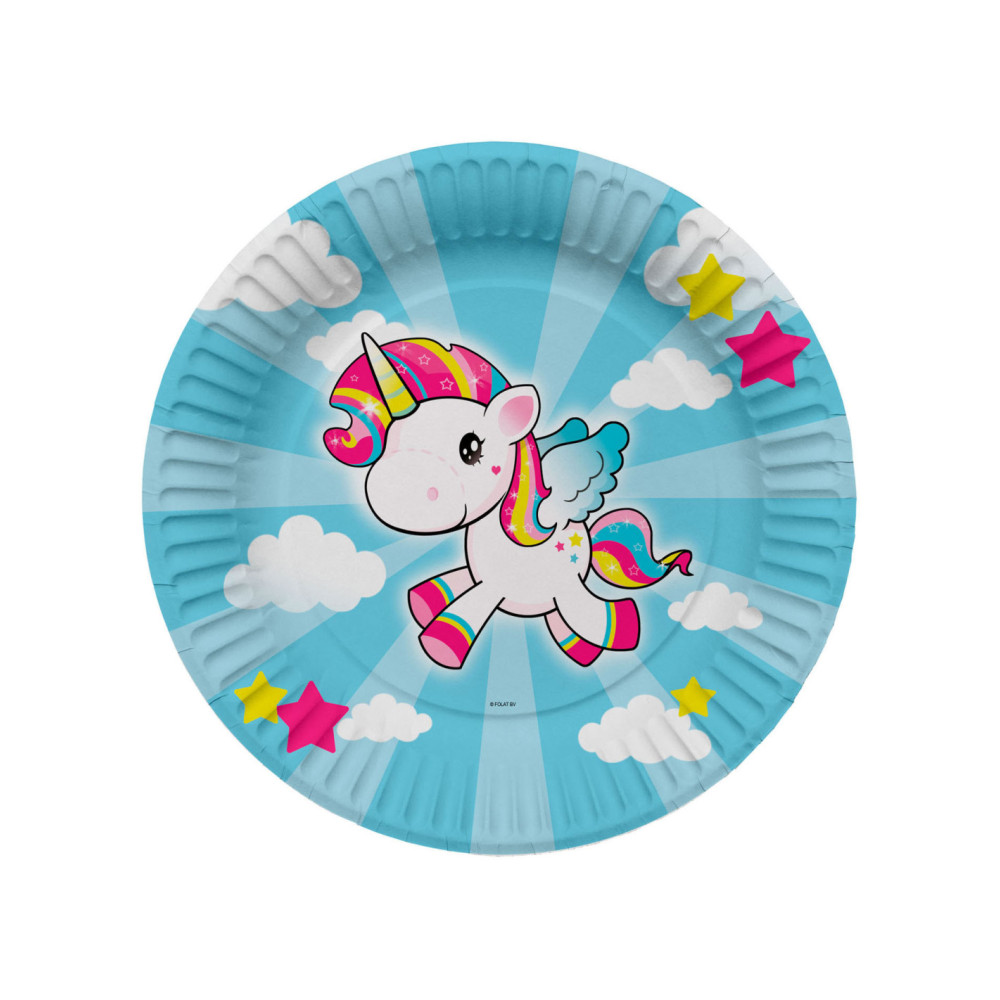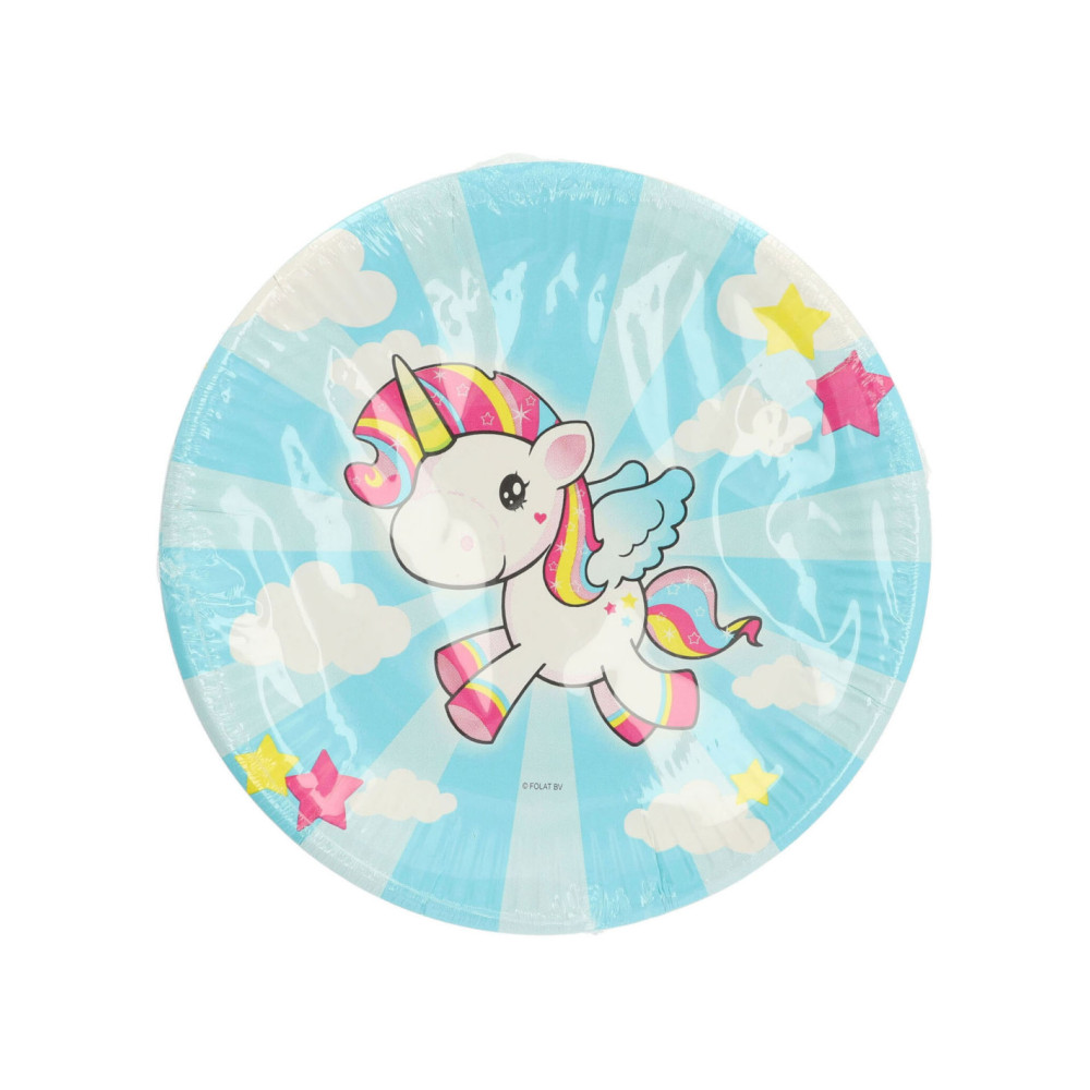 Borden Eenhoorn 23cm - 8 stuks. Inhoud: 8 borden. Kleur: Meerkleurig. Bijvoorbeeld te gebruiken tijdens de volgende feestgelegenheid/feestgelegenheden: Verjaardag en Kinderfeestje. Een bord heeft een diameter van 23 cm. Het artikel is gemaakt van FSC®-gecertificeerd papier.