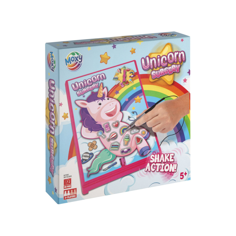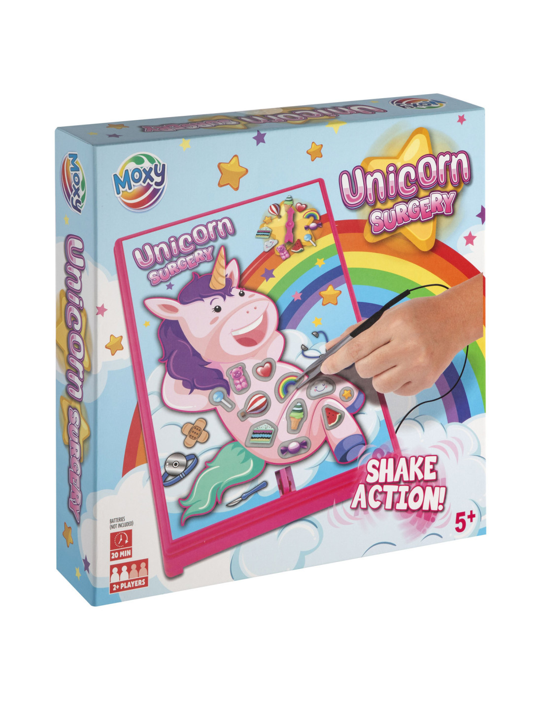 Eenhoorn Operatie spel waarbij voorwerpen uit de eenhoorn verwijdert moeten worden, zonder de randjes aan te raken. Geschikt voor kinderen vanaf 5 jaar. Voor 2 spelers. Een rondje duurt ongeveer 20 minuten.