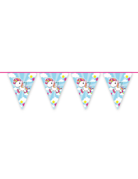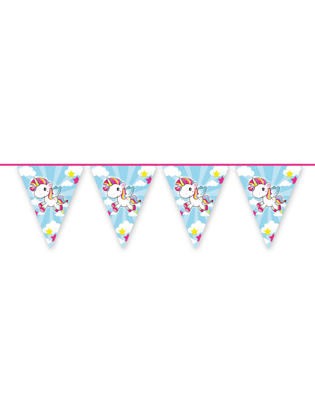 Je tovert elke ruimte om tot een feestelijke plek met deze vrolijke eenhoorn vlaggenlijn. De vlaggenlijn slinger is 10 meter lang en heeft 15 kunststof wimpels van 27 cm groot.
