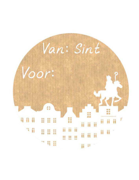 Set van 1000 kraftkleurige etiketten met de opdruk 'Van Sint voor …'. Gemaakt van papier, afmetingen ca. 5 x 3 cm. Ideaal voor het personaliseren van Sinterklaascadeaus.