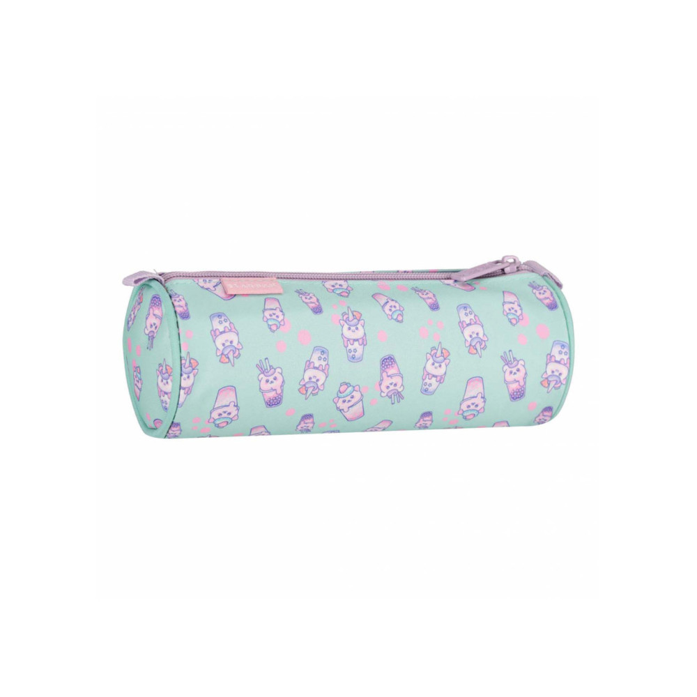 Kokervormig etui in mintgroen met schattig bubble tea design. Afmetingen: 22 x 8 centimeter.