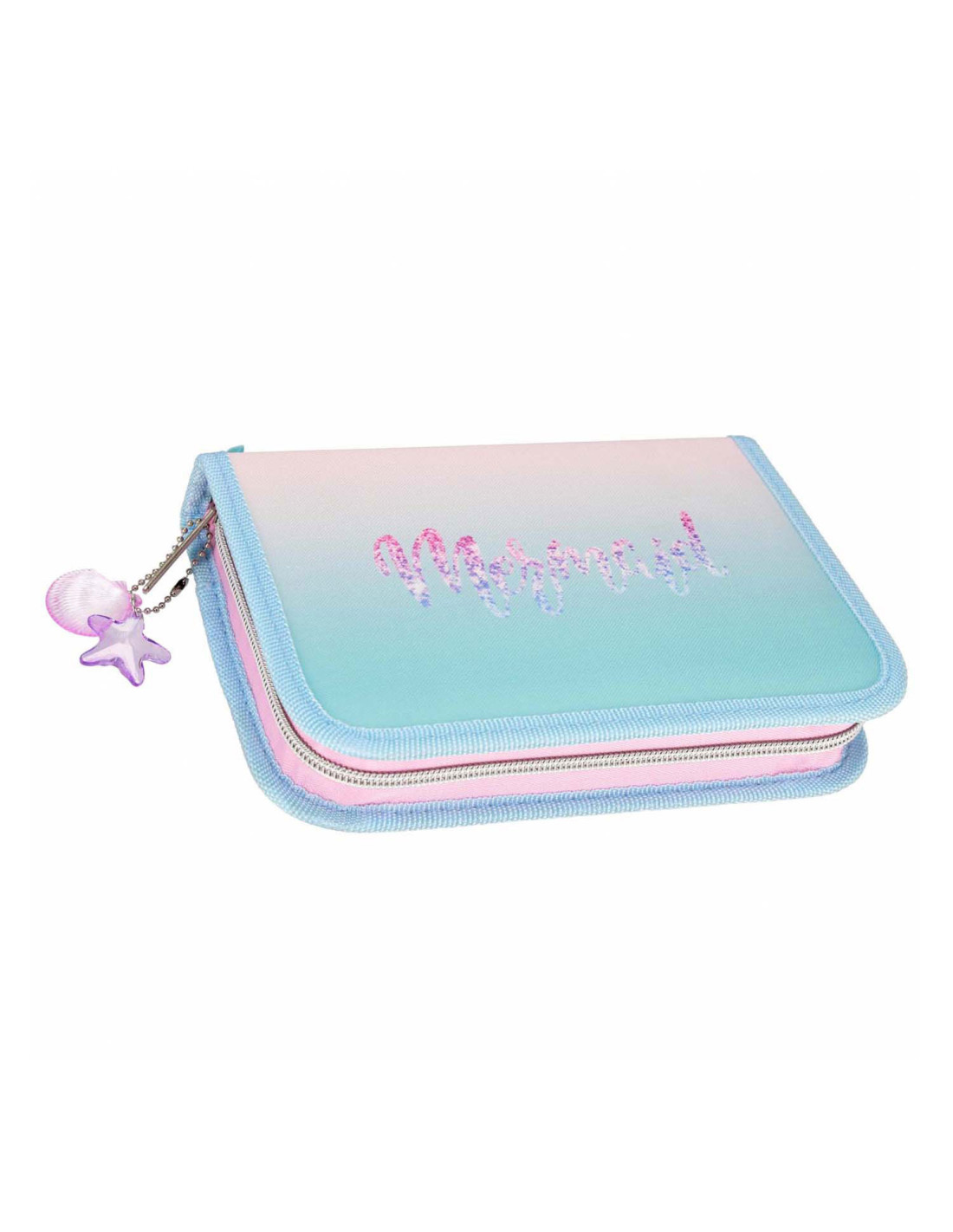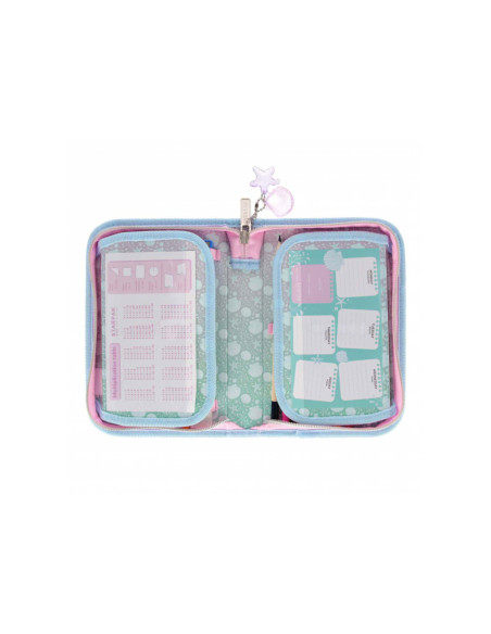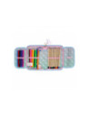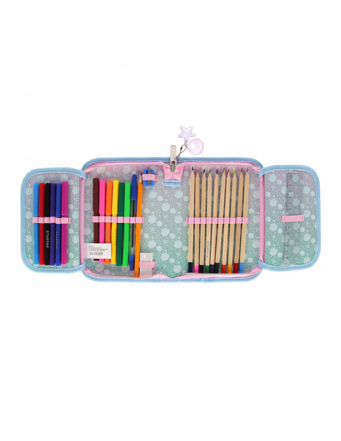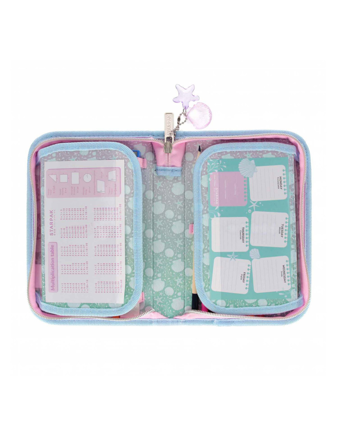 Etui met Accessoires Schelp, 25dlg. Met o.a. stiften, kleurpotloden en diverse schrijfwaren. Afmetingen: 14 x 12 x 4 centimeter.