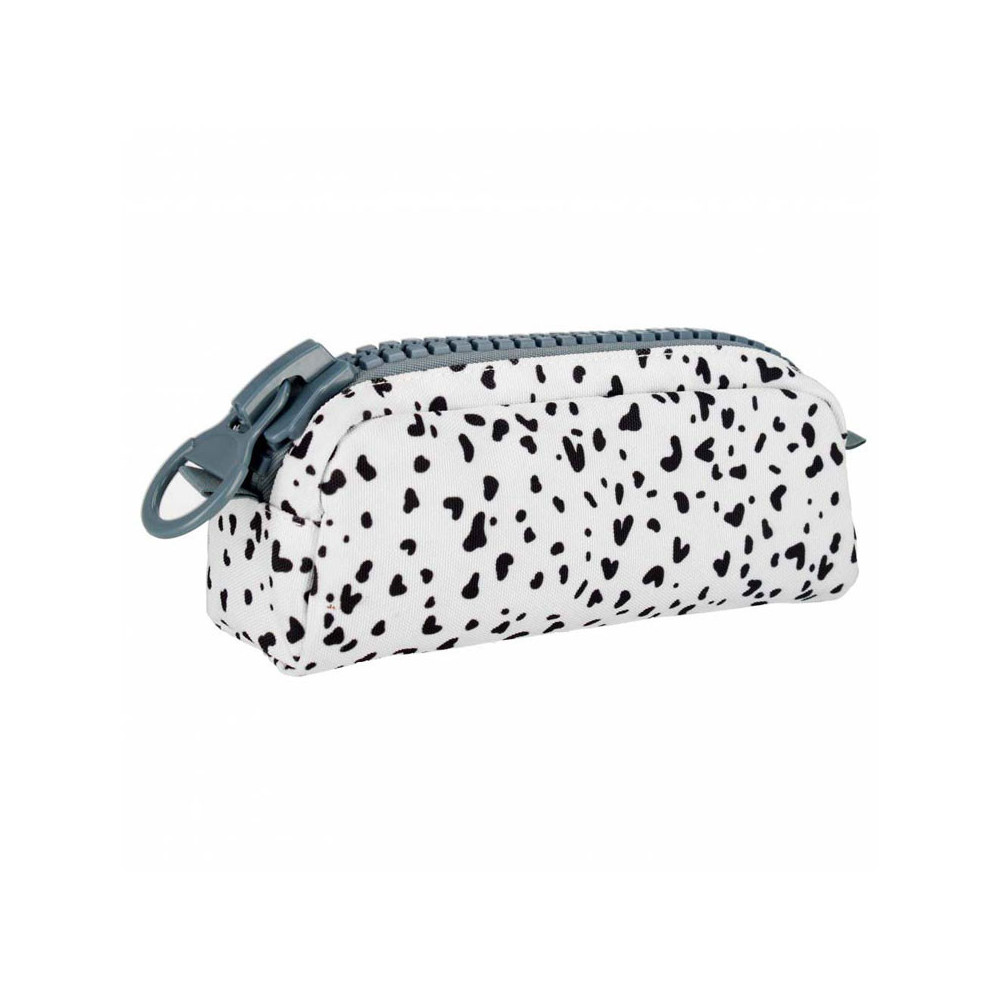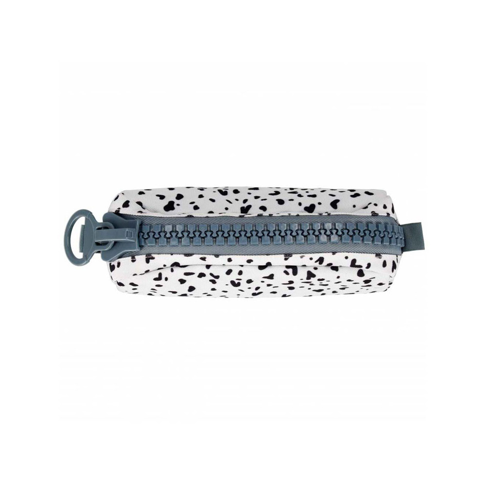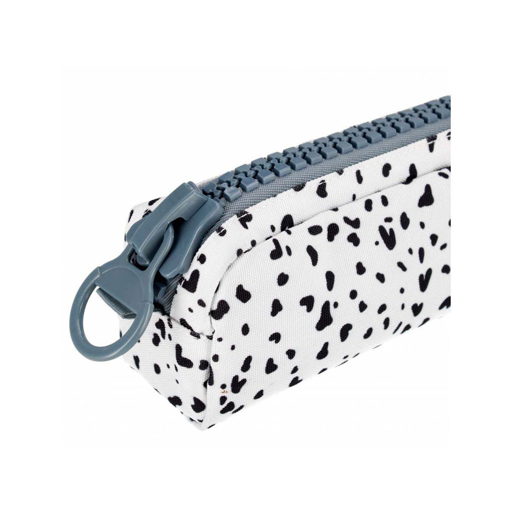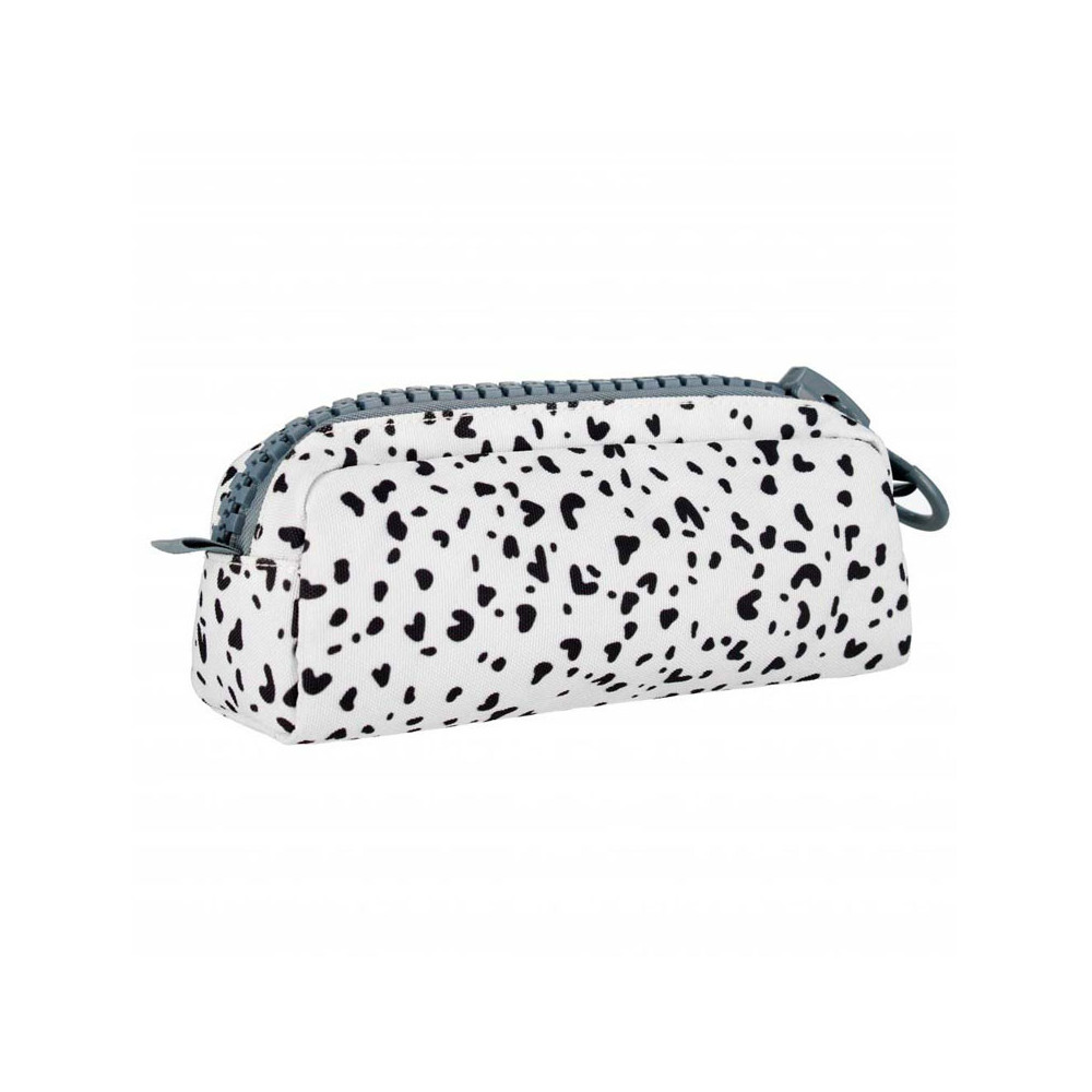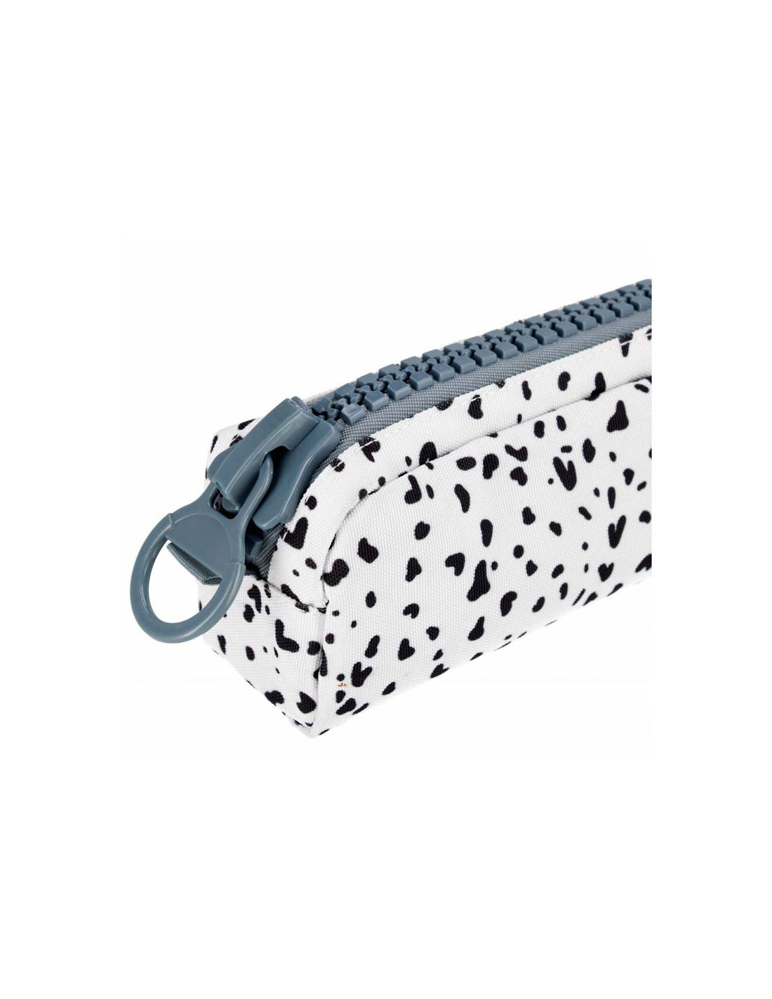 Wit etui met zwarte print en blauwe rits. Kenmerken • Geschikt voor kinderen vanaf 3 jaar • Afmeting: 7 x 22 x 7 cm