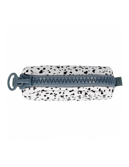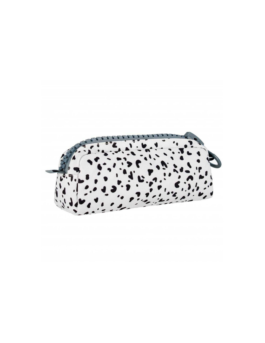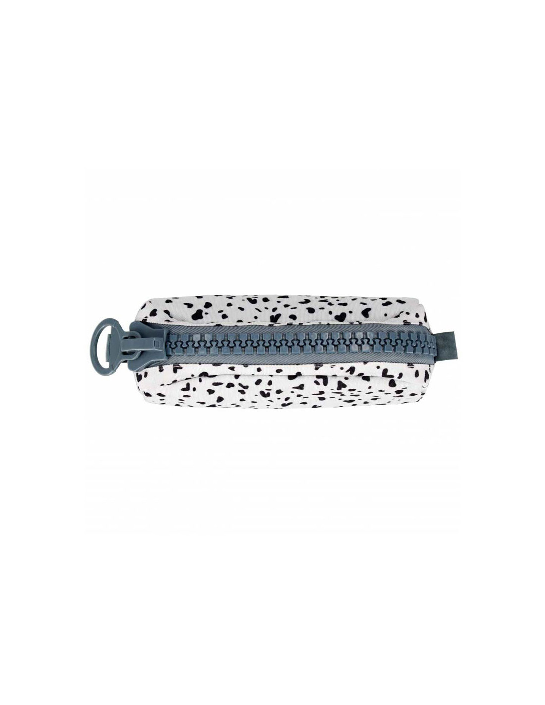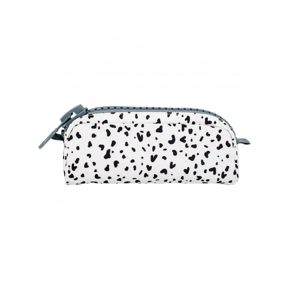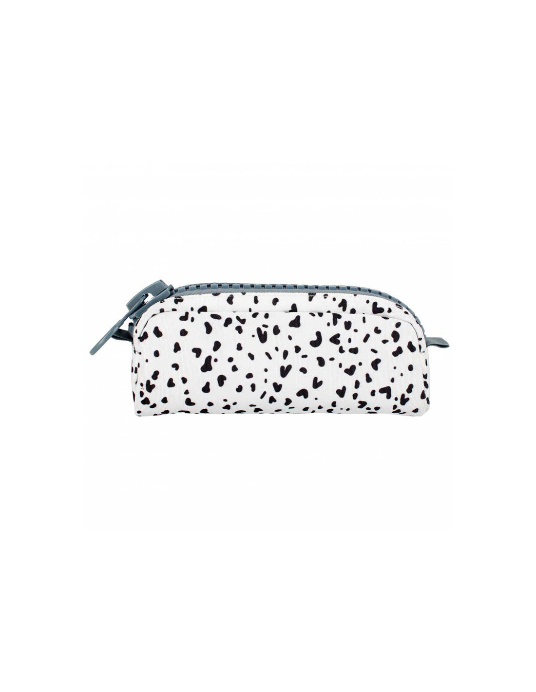 Wit etui met zwarte print en blauwe rits. Kenmerken • Geschikt voor kinderen vanaf 3 jaar • Afmeting: 7 x 22 x 7 cm