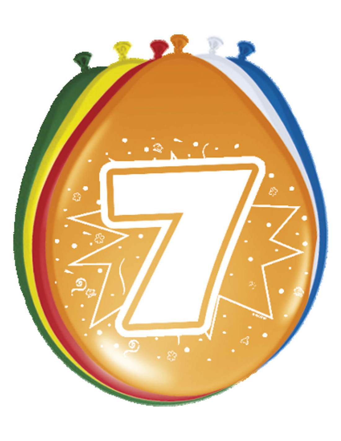 Maak je verjaardag extra feestelijk met deze set van acht ballonnen in verschillende kleuren, elk met het cijfer 7 erop gedrukt. Deze ballonnen zijn de perfecte manier om te laten zien hoe oud je bent geworden en om je verjaardag in stijl te vieren.