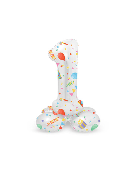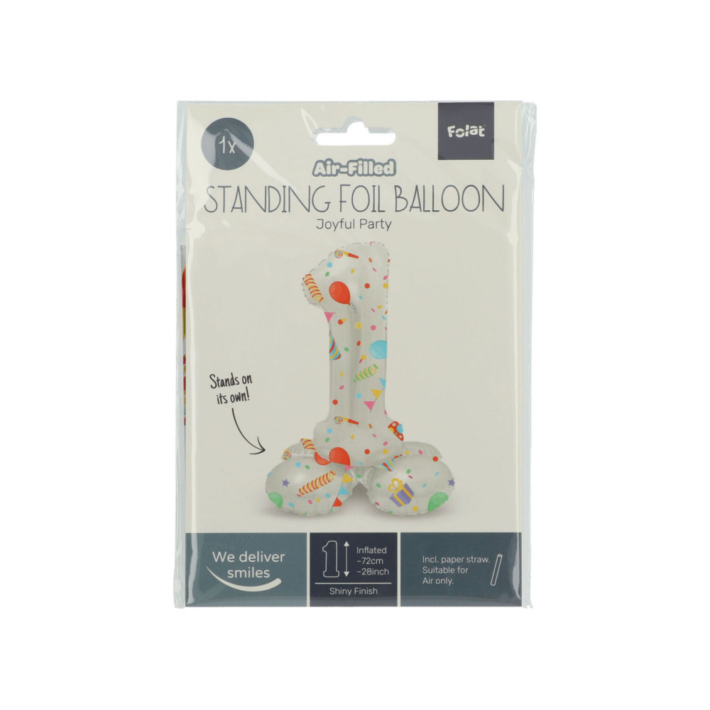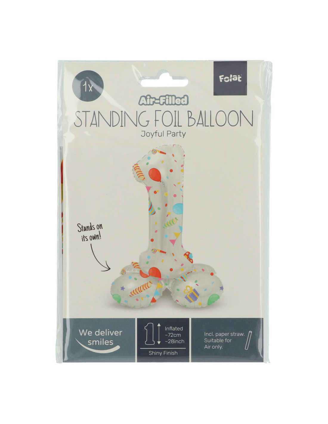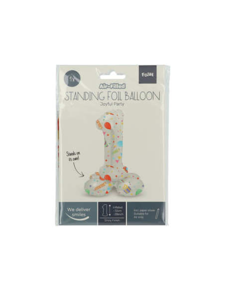 Staande Folieballon Cijfer 1 Joyful Party - 72 cm. Inhoud: 1 folieballon. Kleur: meerkleurig. Bijvoorbeeld te gebruiken tijdens de volgende feestgelegenheid/feestgelegenheden: Verjaardag, Kinderfeestje en Themafeest. Deze folieballon is 72 cm en kan gevuld worden met lucht (geen helium nodig). Het artikel is gemaakt van folie.