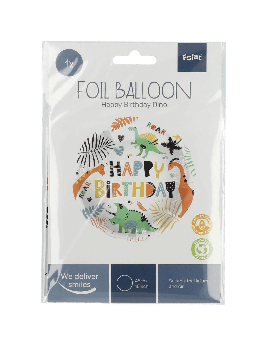 Folieballon van een dinosaurus, 45 centimeter groot. Buiten bereik houden van kinderen onder de 3 jaar oud.