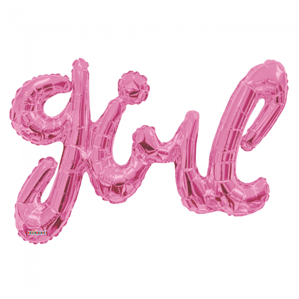 Super grote folieballon met de tekst GIRL. De ballon is gemakkelijk zelf op te blazen door het meegeleverde rietje.