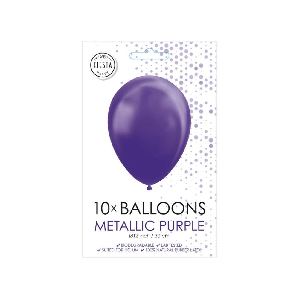 10 stuks metallic paarskleurige ballonnen van 30 cm groot.