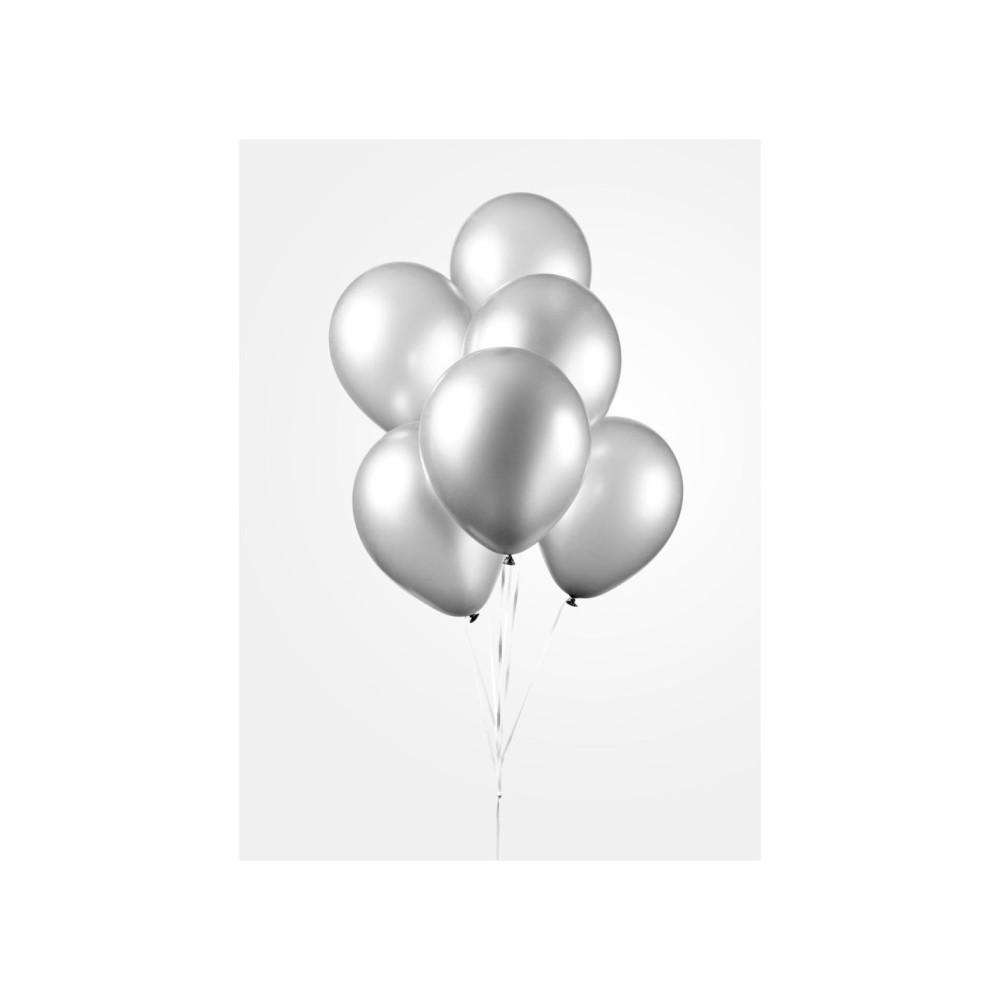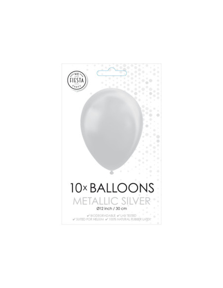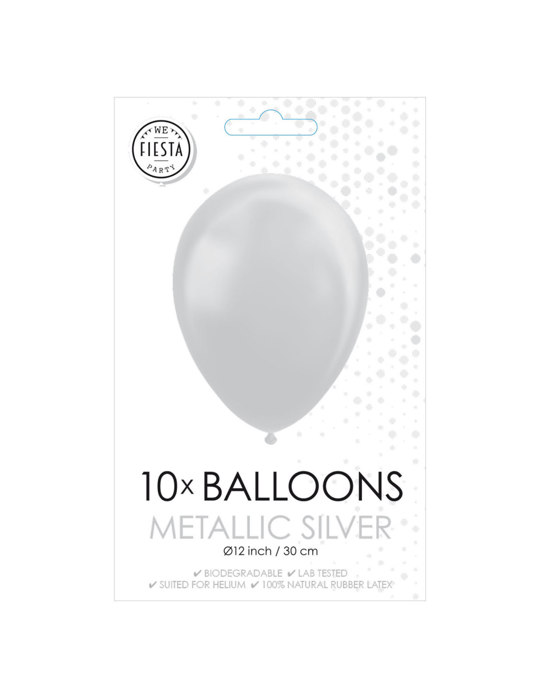 10 stuks metallic zilverkleurige ballonnen van 30 cm groot.