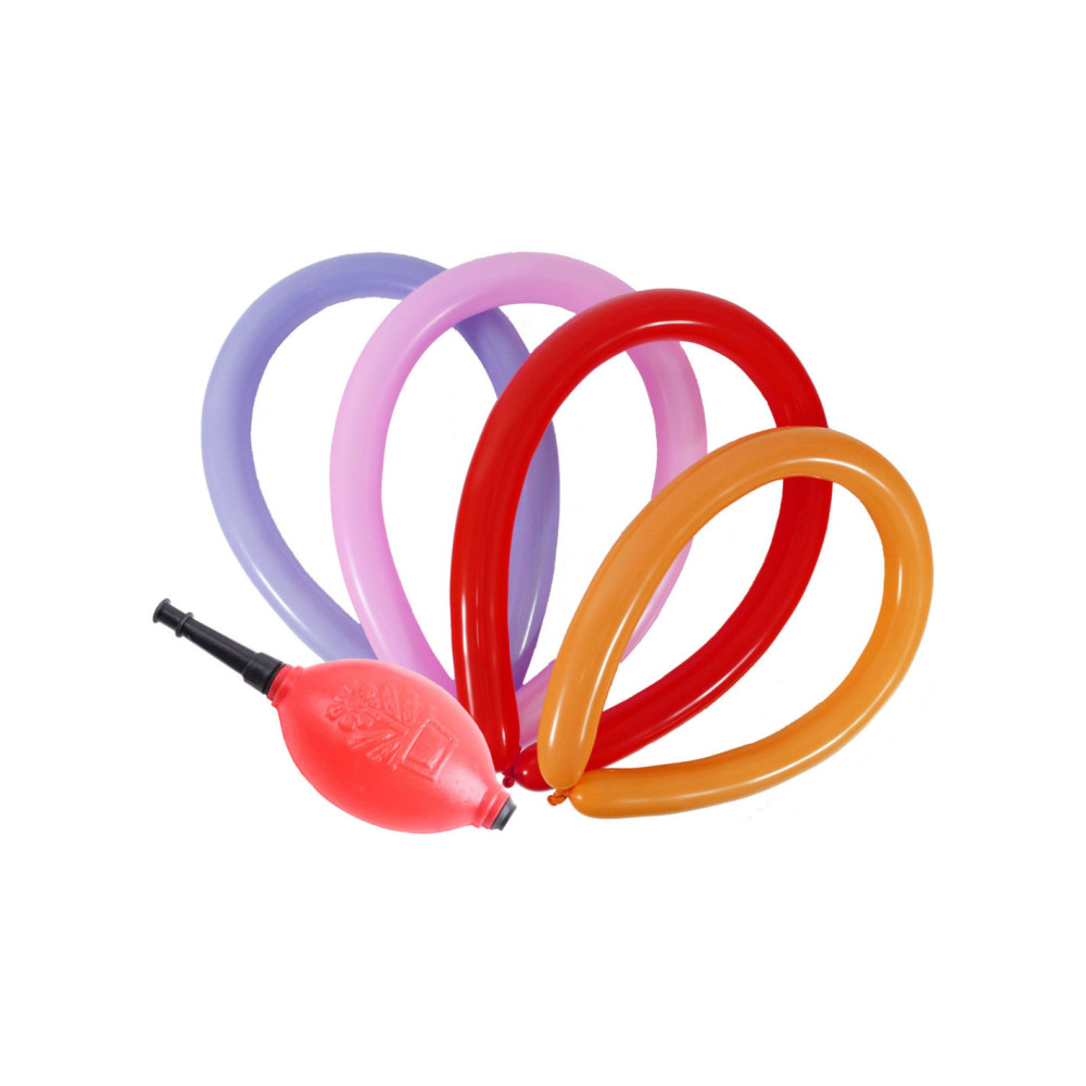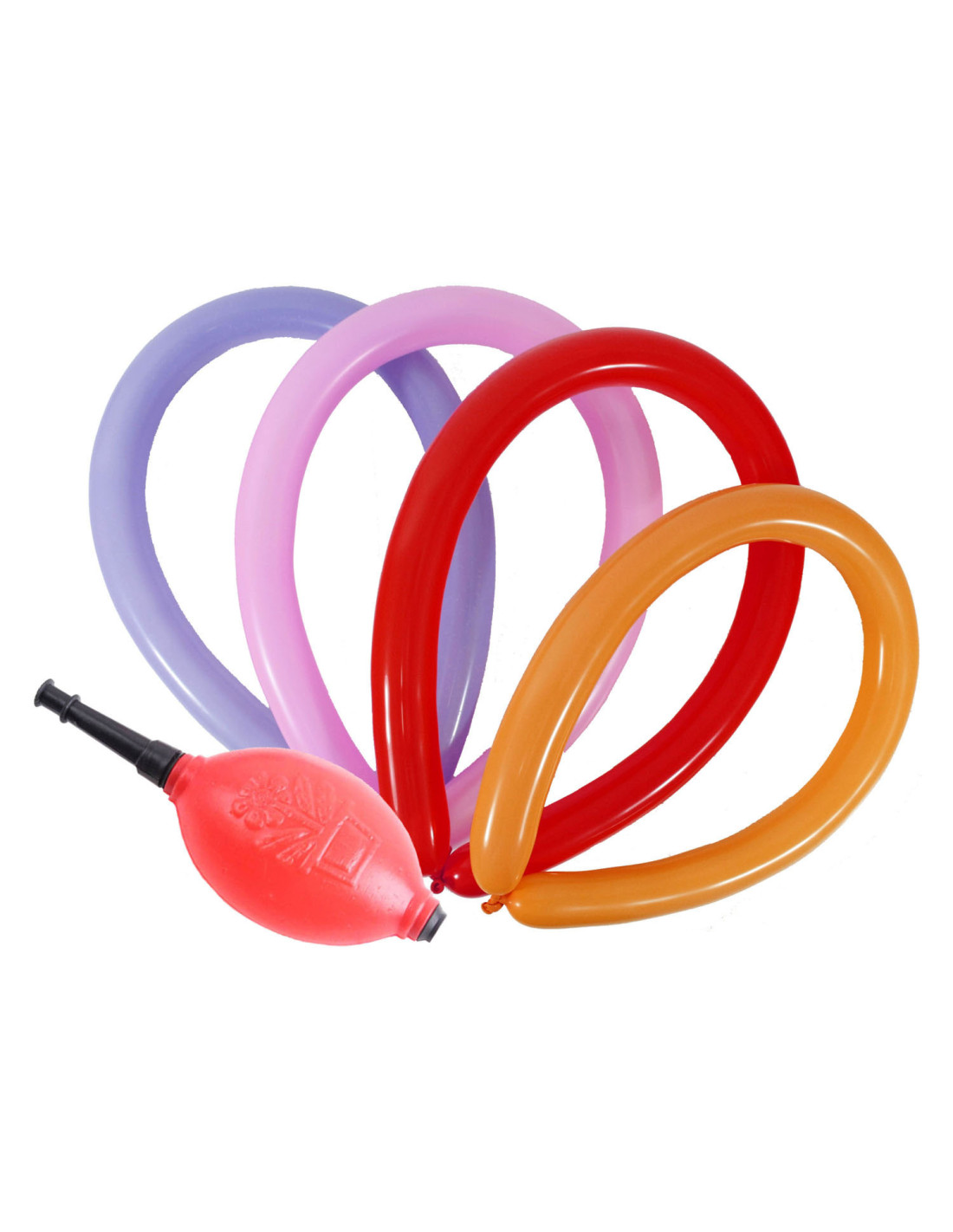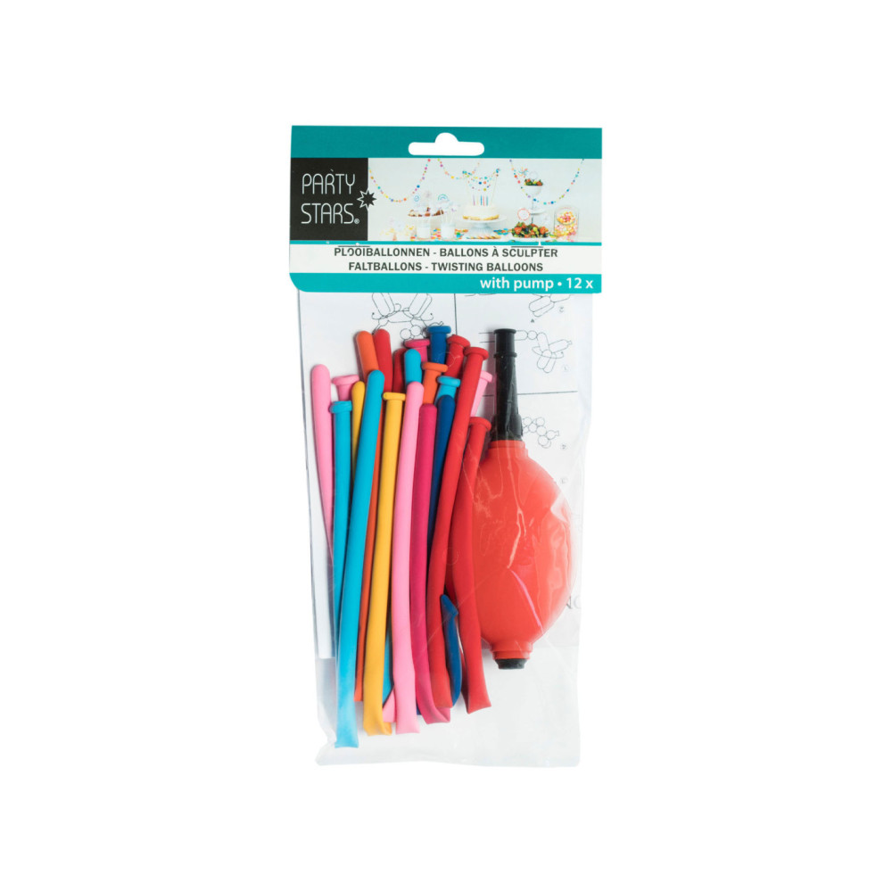 Set van 12 gekleurde modelleerballonnen en een ballonnenpompje. Draai, vouw en maak je eigen ballonnenkunst!
