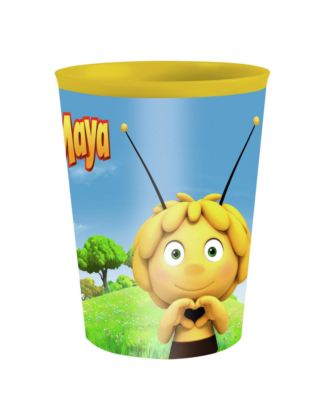 Gele beker met een opdruk van Maya de bij. Gemaakt van kunststof, afwasmachinebestendig.