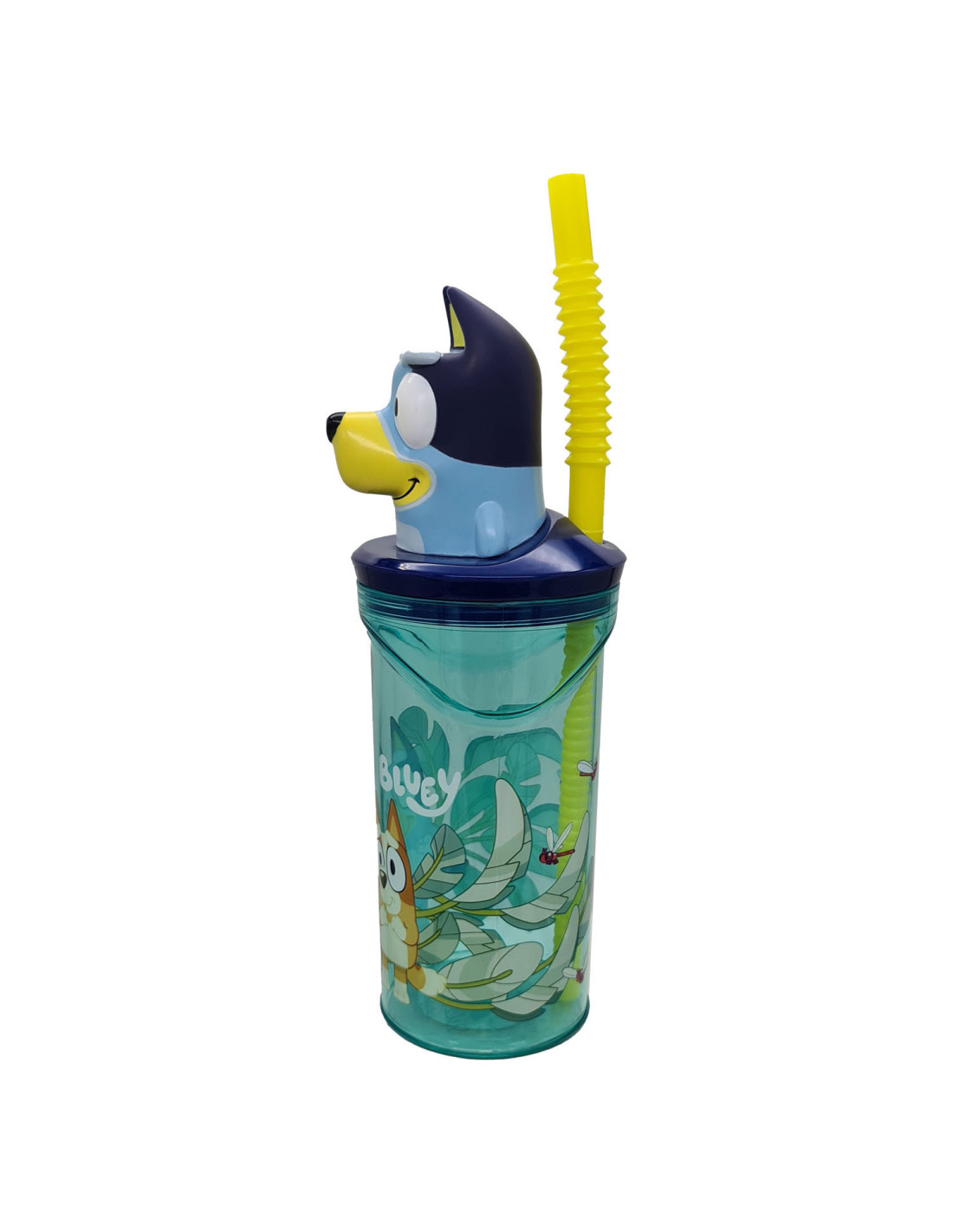 Drinken wordt een feestje met deze leuke drinkbeker van Bluey! De kunststof beker heeft een geïntegreerd, groot rietje en een grote 3D-figuur van Bluey op de dop. Afmetingen: 18 x 6 centimeter. Inhoud: 360 ml.